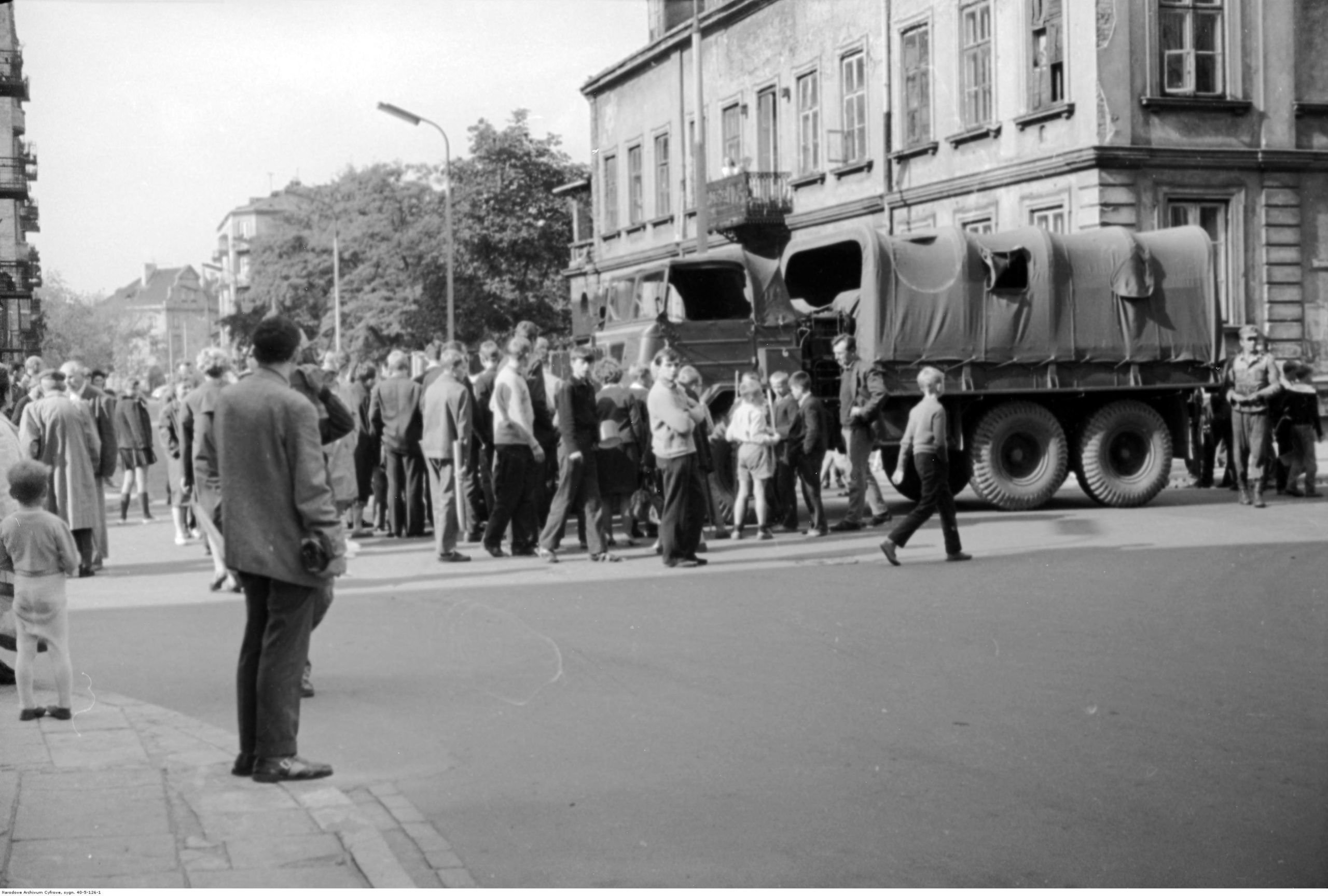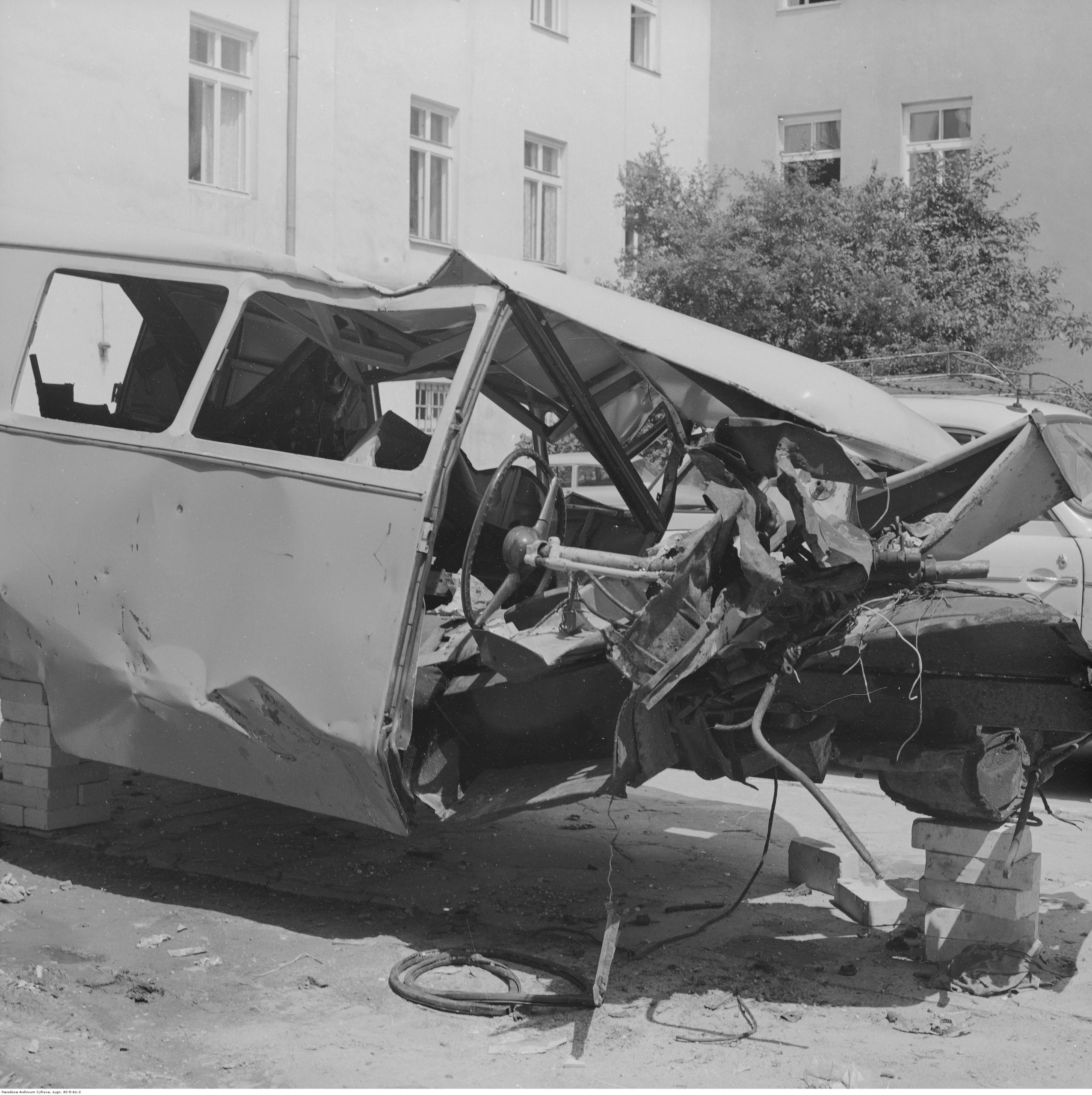 Wypadek sfotografował Zbyszko Siemaszko. prawdopodobnie między 1956, a 1958 rokiem.