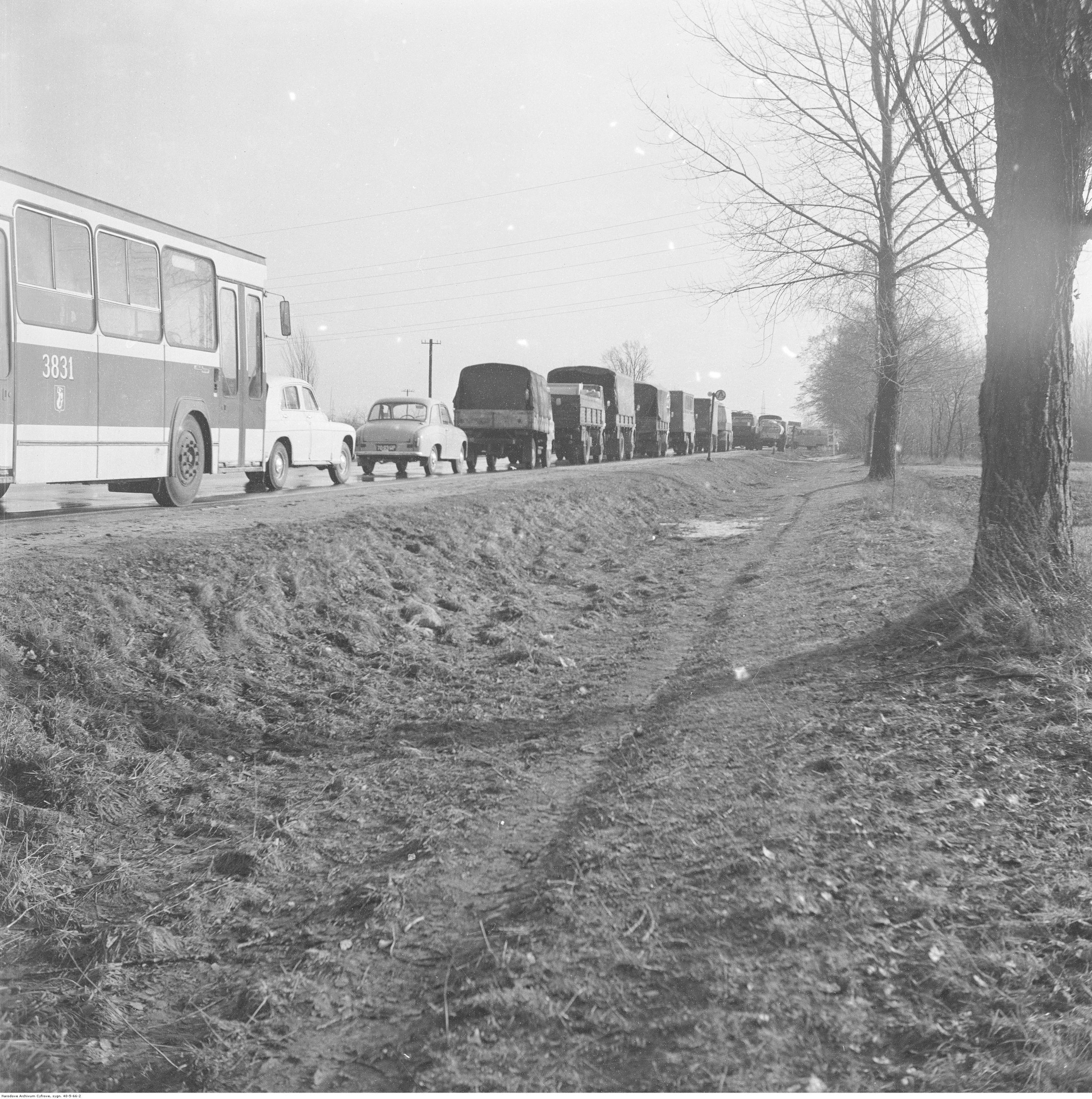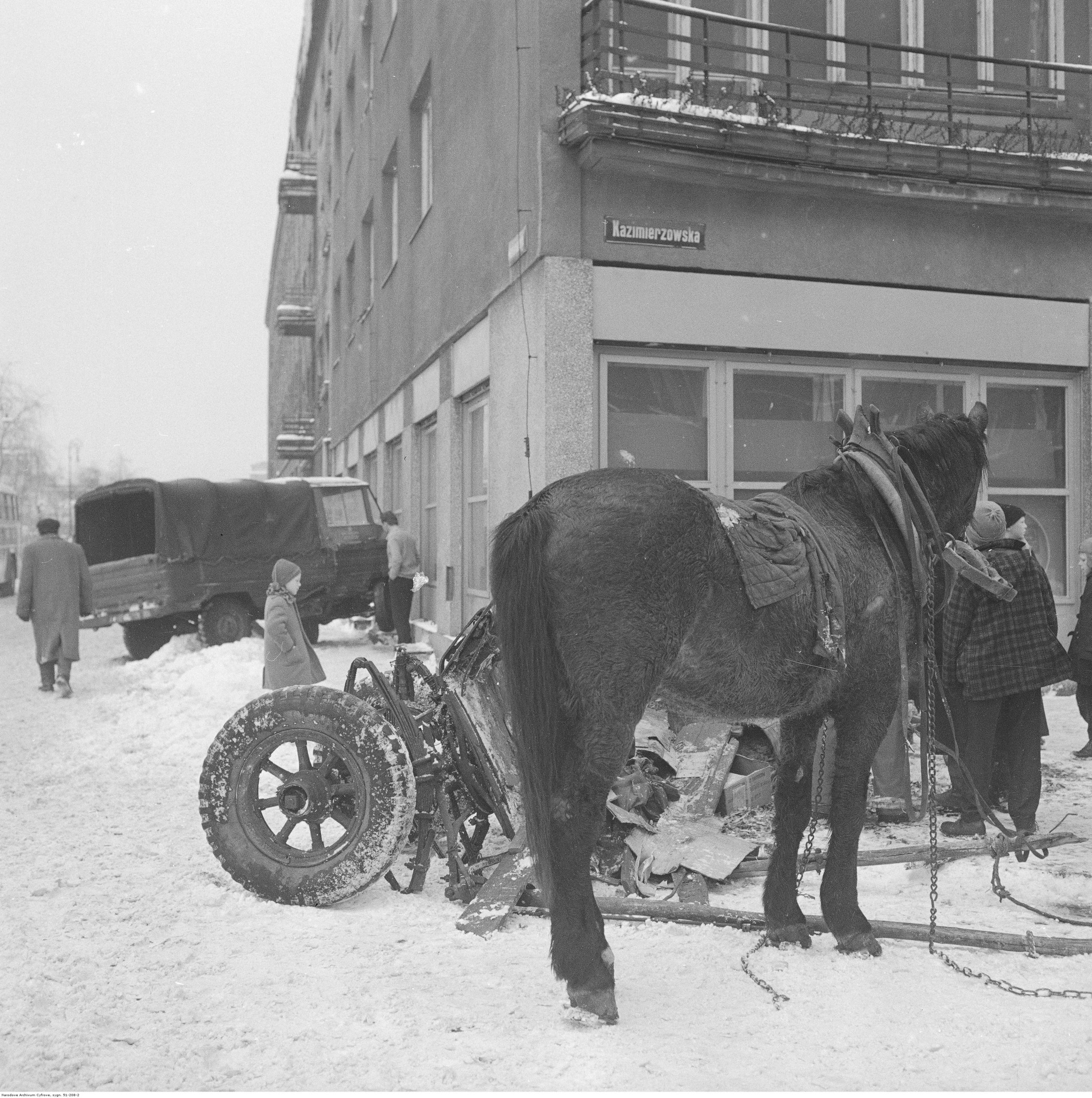 „Mleko ma najszybszy transport, inaczej się zsiada”. Tym razem było chyba za szybko, gdyż Żuk z Zakładu Mleczarskiego Mokotów miał kolizję z wozem konnym na rogu ul. Madalińskiego i Kazimierzowskiej w Warszawie. Koń jak widać nie ucierpiał.
