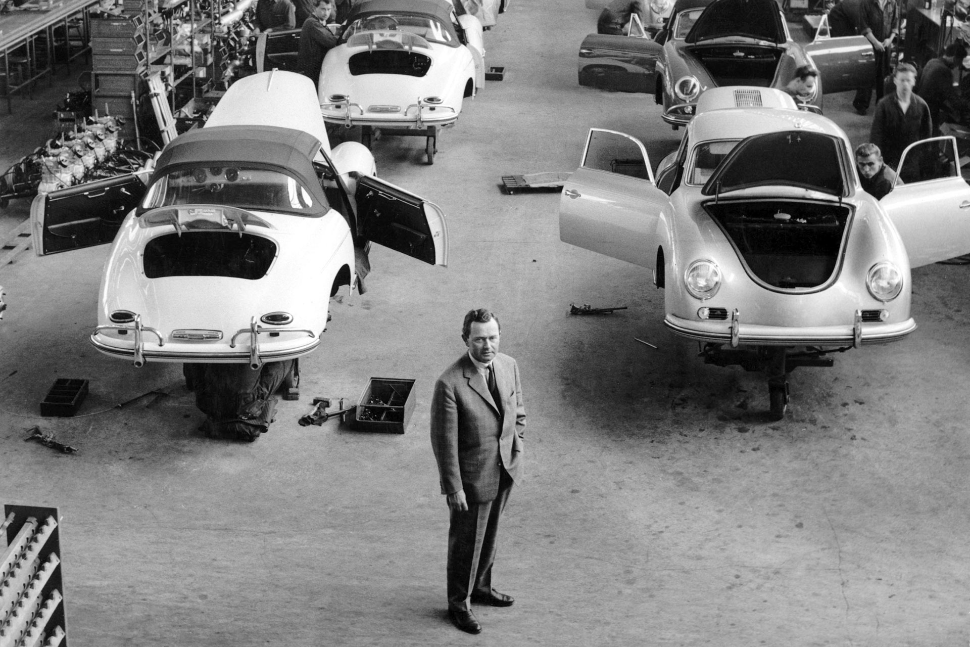 Herbert Linge wspominał, że w późniejszych latach, Ferdynand Porsche często zapraszał ważnych klientów na zwiedzenie linii produkcyjnej. Witał się wtedy z pracownikami i wspólnie wyjaśniali klientom poszczególne etapy produkcji.
