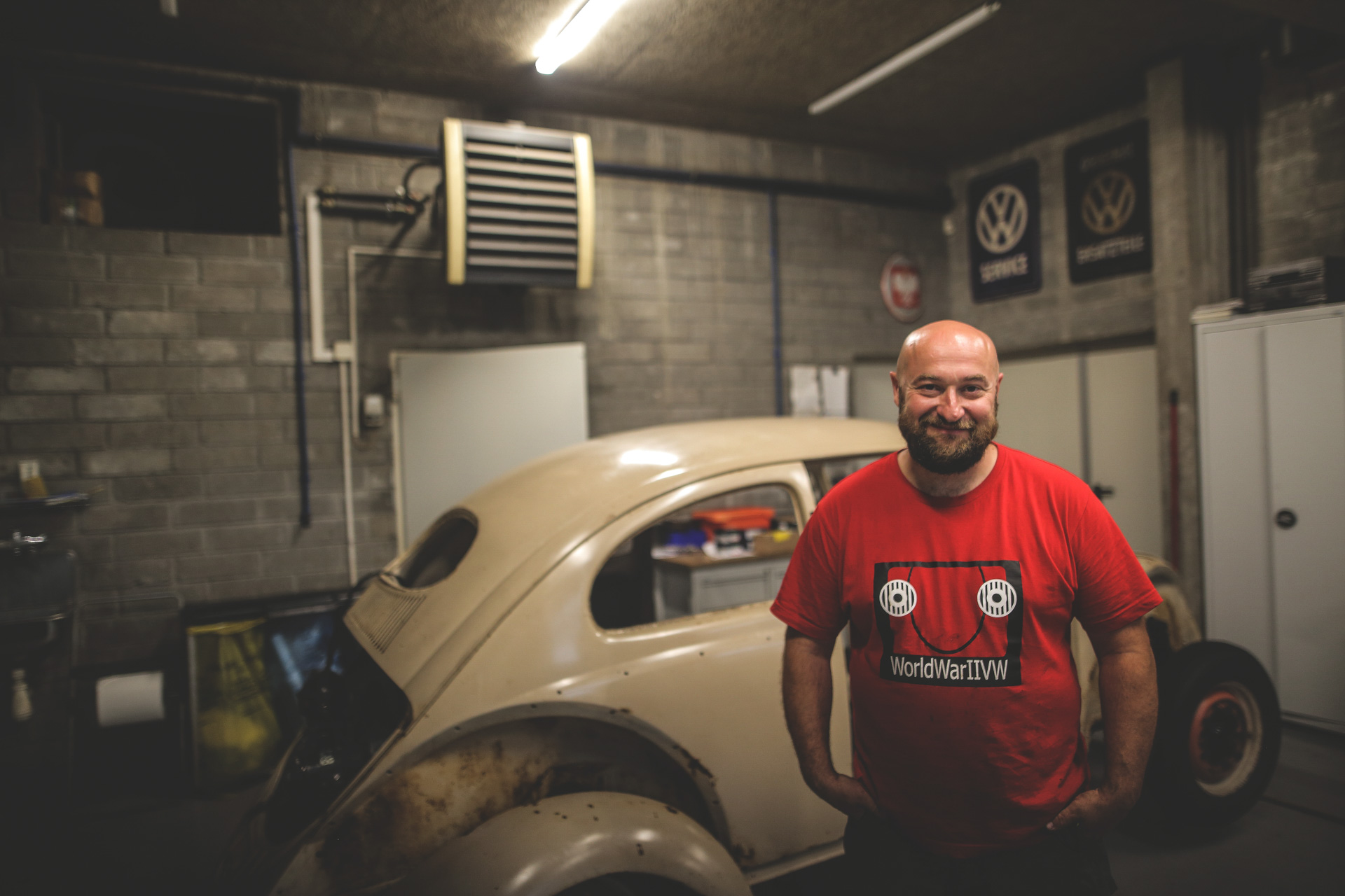 Zaczęło się jednak od garbusa meksyka, którym Jacek jeździł na co dzień. Pojechał na jeden, drugi zlot. Na którejś imprezie garbusiarskiej zobaczył ovala i zapragnął takiego auta. Szukając ovala, przypadkowo trafił na wojennego garbusa. Miał to być oval, okazało się, że to KdF przerobiony na ovala. Auto kupił, pochodziło z 1943 i o dziwo nie zostało mocno zmodyfikowane przez dodanie nowszych części. Tak zaczęła się przygoda z wojennymi Volkswagenami.