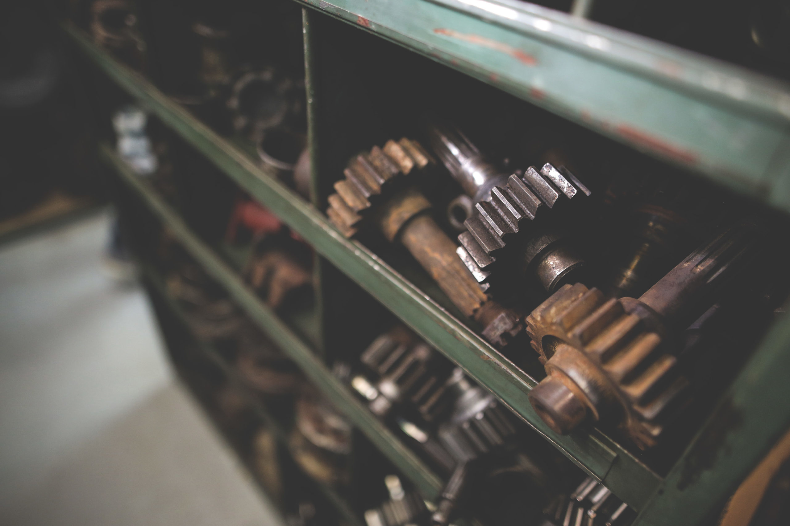 Nie byłoby to możliwe bez oryginałów. Znajdują się w magazynie, na metalowych regałach pochodzących z fabryki Volkswagena. Nie są tak stare jak części, które na nich leżą, ale tworzą idealny klimat.