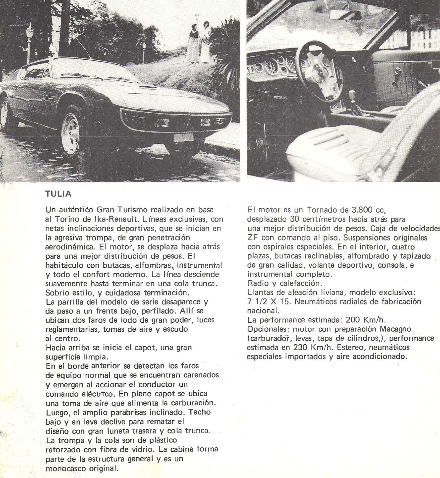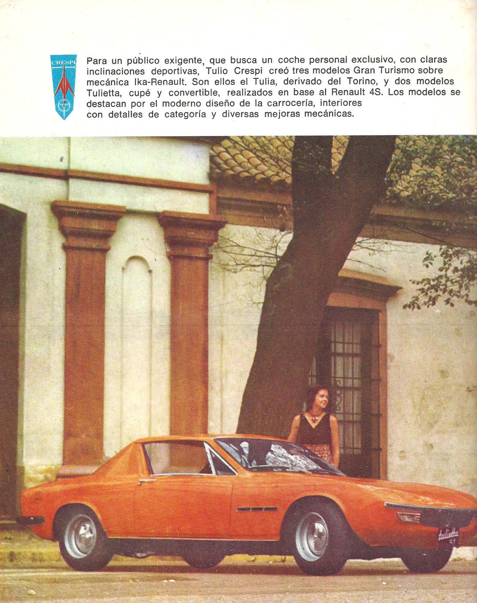 Jeśli chodzi o Ikę Torino jako samochód narodowy, to nic nie mogło się zmarnować. Na taki pomysł wpadł w połowie lat 70. Tulio Crespi, były kierowca rajdowy. Rozbity wóz też można było wykorzystać. Tak powstał Crespi Petiso, całkiem niezły fastbacj, który został zbudowany z pozostałości Torino rozbitego w czasie wyścigu Turismo Carretera. Petiso wyszedł całkiem nieźle, więc Tulio poszedł za ciosem i wykorzystując płytę podłogową, silnik, drzwi oraz przednią szybę zbudował z włókna szklanego kolejny wóz sportowy o nazwie Tulia Crespi GT. Konstruktor niemal wszystkie swoje auta nazywał Tulia, co było żeńską odmianą jego imienia.