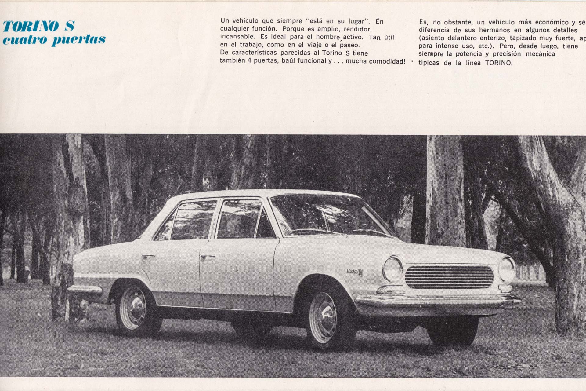 Oczom rozemocjonowanych obywateli ukazały się trzy modele: trzylitrowy sedan, budzące niekończący się zachwyt pozbawione środkowych słupków coupé z silnikiem 3,7 l, gaźnikiem Holleya 2300C i czterobiegową skrzynią ZF oraz wspomniany już wyczynowy Torino 380W w najmocniejszej specyfikacji. Podczas prezentacji nie powiedziano tylko jednego: „samochód narodowy” to puzzle złożone z części pochodzących z całego świata.