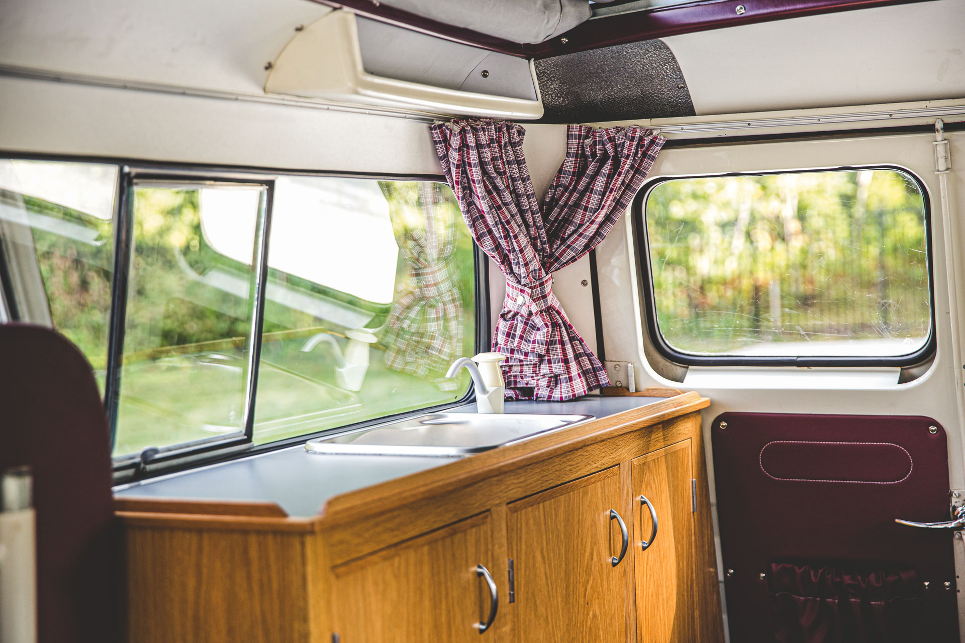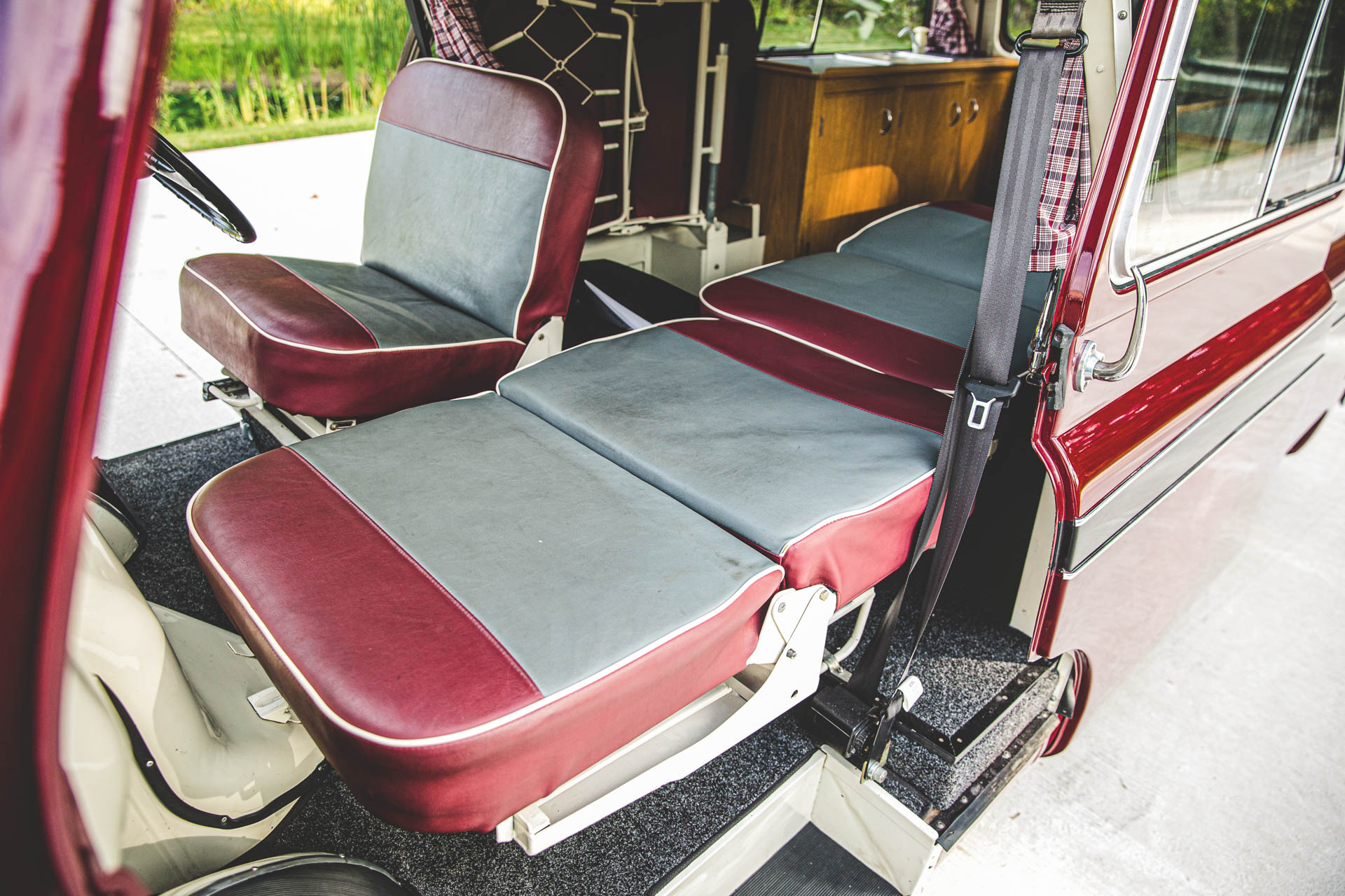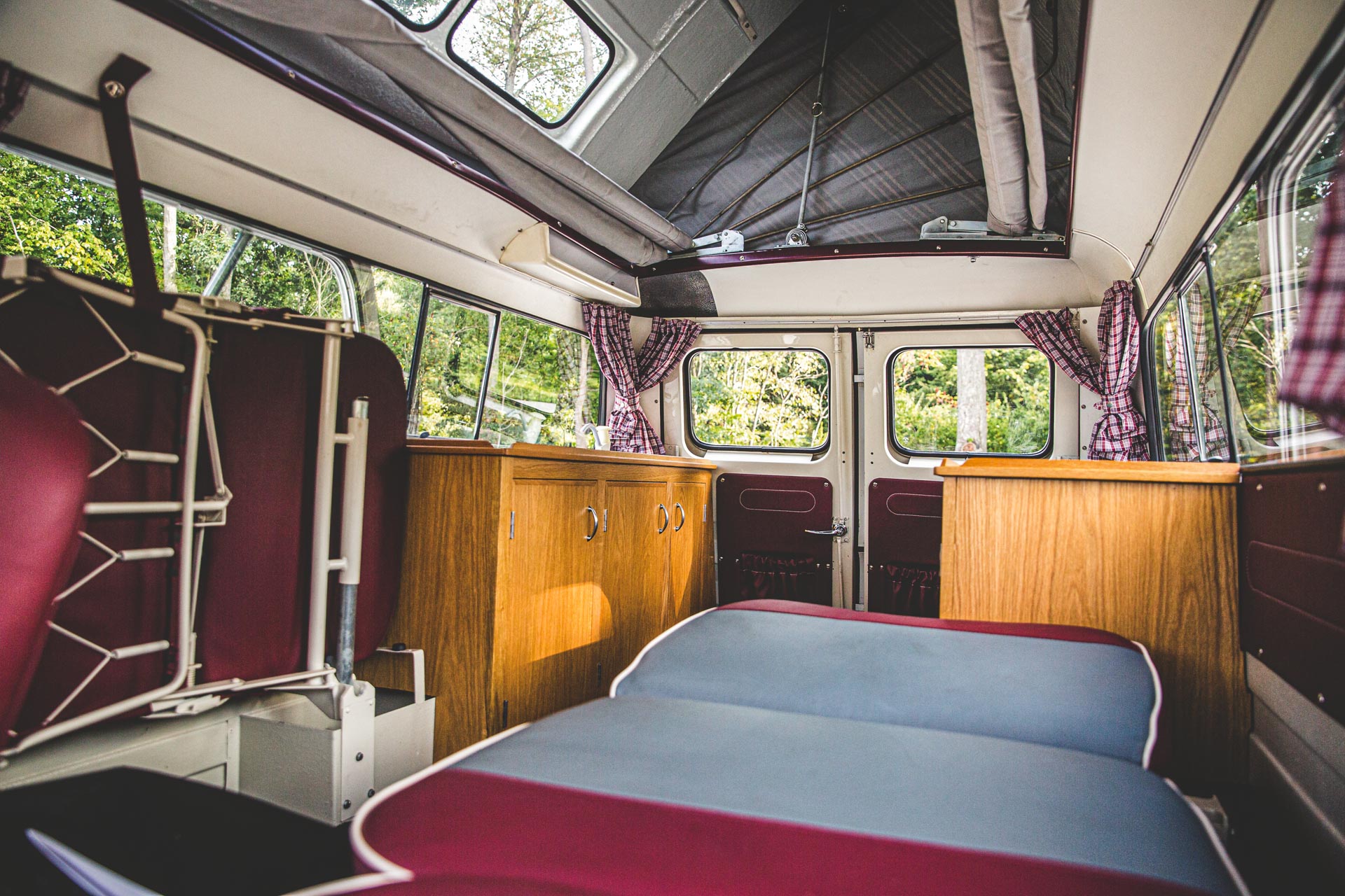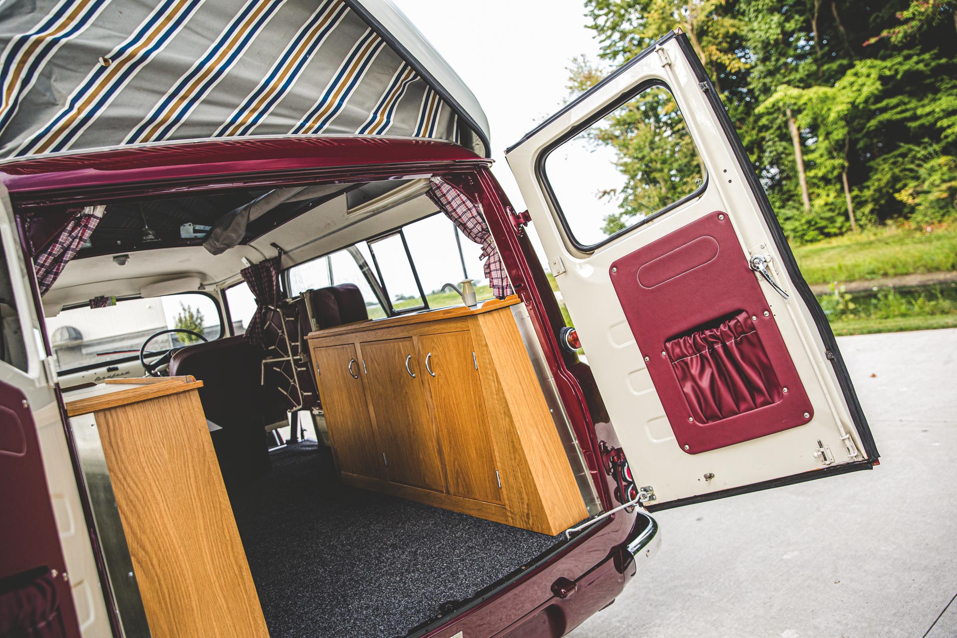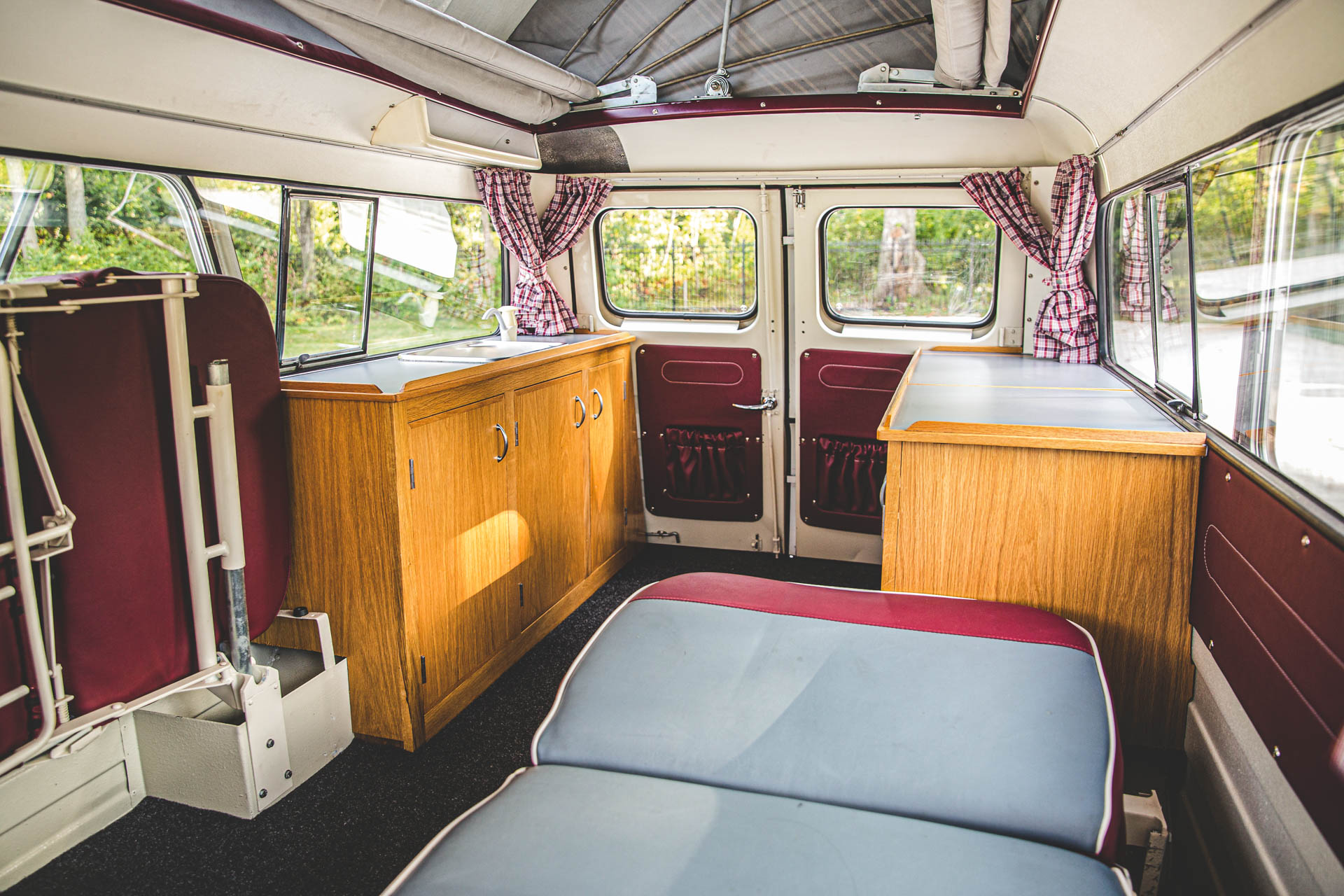 Samochód trafił na Zachodnie Wybrzeże USA z Nowej Zelandii. Został wyposażony w wiele współczesnych urządzeń ułatwiających życie w drodze. Zabudowa, oprócz drewnianych szafek, składa się z fikuśnego zlewu oraz rozkładanych leżanek. Teoretycznie mogą tam pomieścić się cztery osoby, ale może chodzi o wyjątkowo szczupłą młodzież, a nie brzuchatych czterdziestolatków. Wóz został wyposażony rzecz jasna w podnoszony dach nieznacznie ułatwiający poruszanie się we wnętrzu.