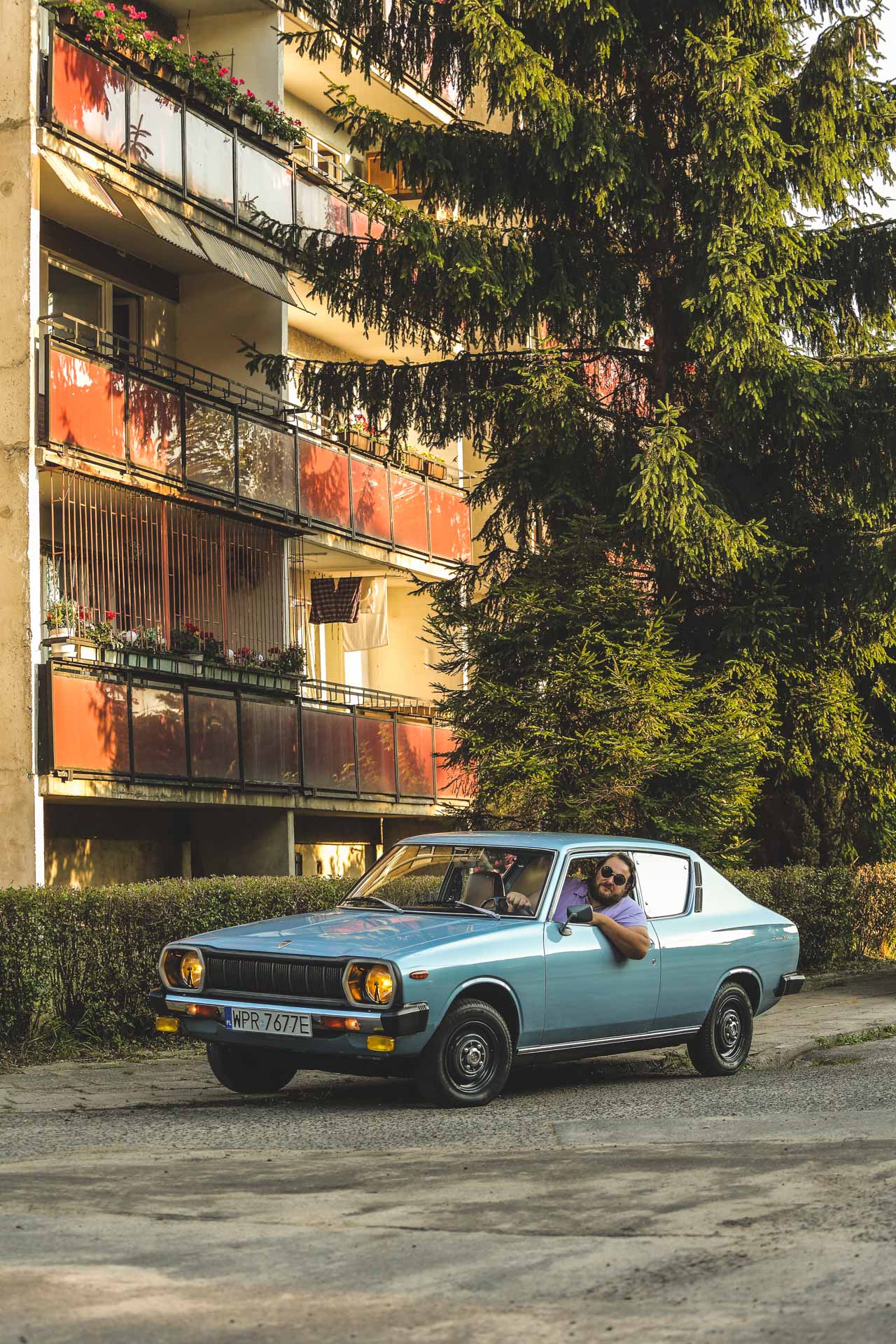 Datsun nie jest częstym gościem na naszych ulicach. W latach 70. i 80. jeździło ich całkiem sporo, głównie sprowadzonych indywidualnie z zagranicy. Większość już dawno zgniła. Niebieski wóz ze zdjęć cudem uchował się w Finlandii i został sprowadzony do Polski kilka lat temu. Japońskie auta w latach 70. były dość popularne w krajach Skandynawii, Beneluksu i w Wielkiej Brytanii. Wówczas były tam traktowane jako ciekawa, tania egzotyka i dobra alternatywa dla najtańszych pojazdów ze wschodniej Europy i małych wozów z zachodu. Dlatego też widoczny na zdjęciach instruktor aerobiku, zarabiający mniej niż najniższa krajowa, musiał zdecydować się na nieprestiżowy w latach 70. produkt z Japonii. Albo Datsun, albo Łada. Co byście wybrali?