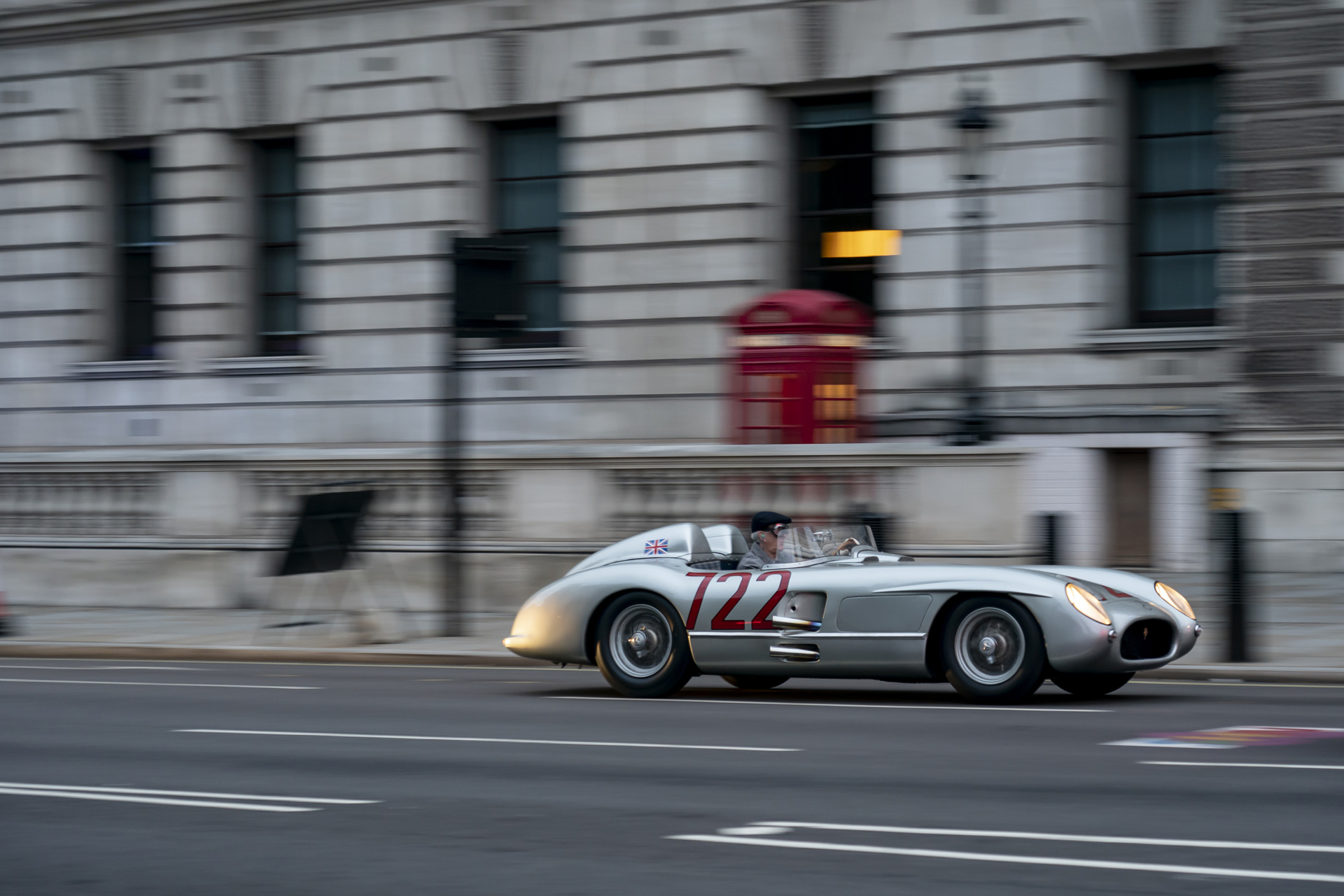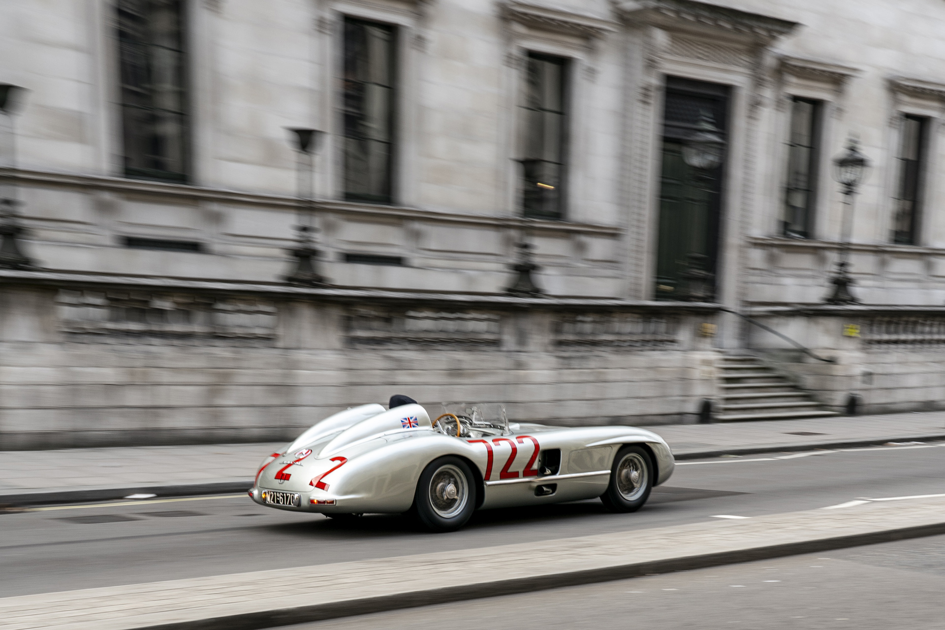 Mercedes 300 SLR ze słynnym numerem 722 wyruszy niedzielnego poranka z dzielnicy The Temple, przejedzie przed gmachem parlamentu, przez Trafalgar Square, minie siedzibę Królewskiego Automobilklubu i hotel Ritz.
