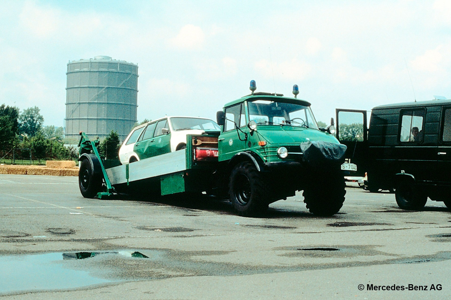 Od 1951 roku Unimog jest produkowany przez Mercedesa, a wykorzystywany przez wszystkich: rolników, wojsko, leśników, służby miejskie, strażackie i wiejskie, a także tramwajarzy, lotniska, kanalarzy. Listę możecie sobie uzupełnić później w domu. Był też stosowany w sporcie, wystarczy przypomnieć wysokie miejsca zajmowane w klasyfikacji ciężarówek w Rajdzie Paryż-Dakar (na przykład w 1982 i 1985 roku).