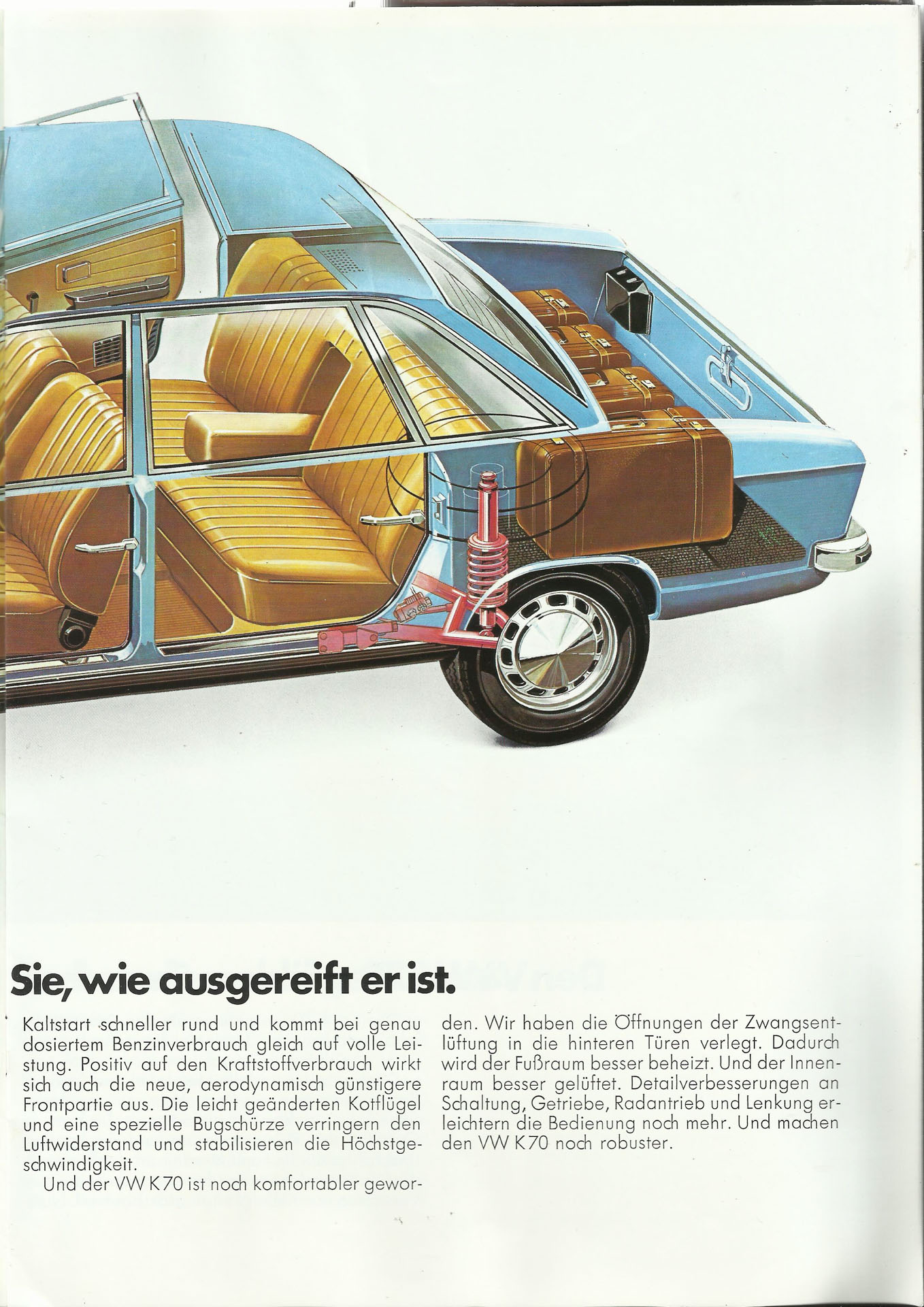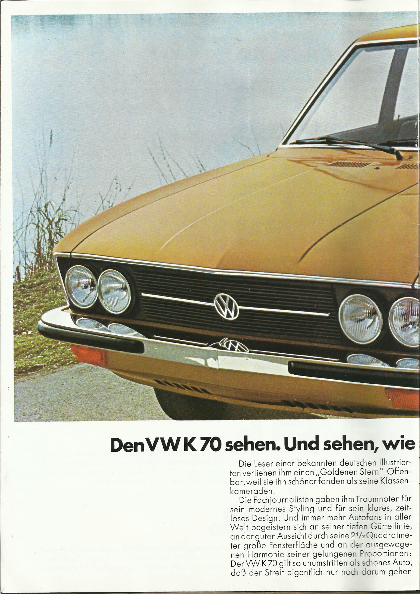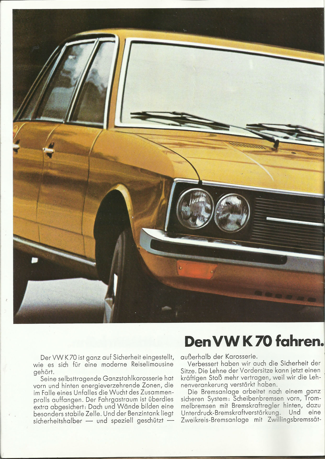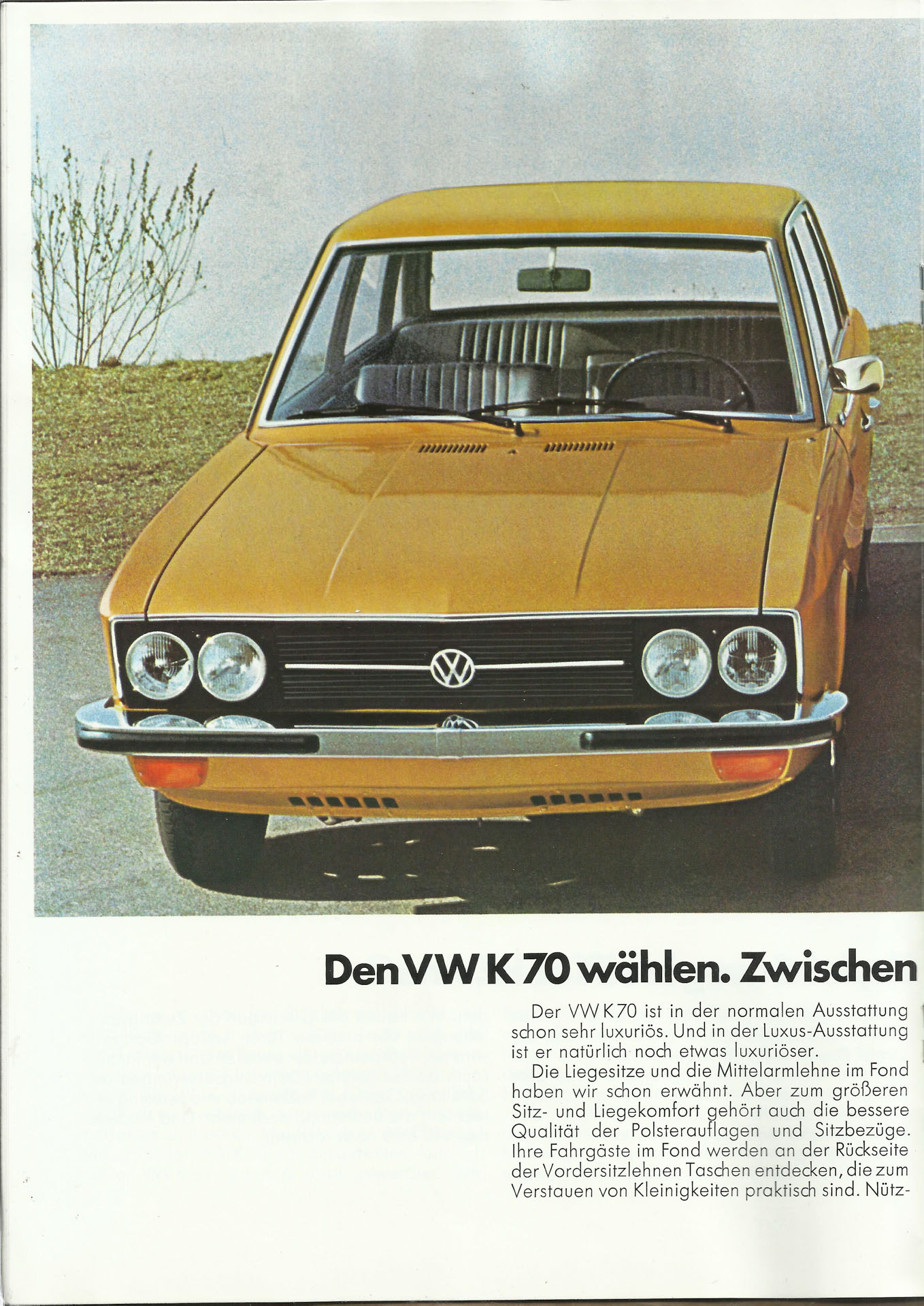 Szkoda było wyrzucać tak dobry projekt do kosza. Skoro K70 nie mogło zostać NSU ze względu na wewnętrzną konkurencję z Audi to zostało Volkswagenem. Niby ta sama klasa co VW 411/412, a dwa kompletnie różne samochody.