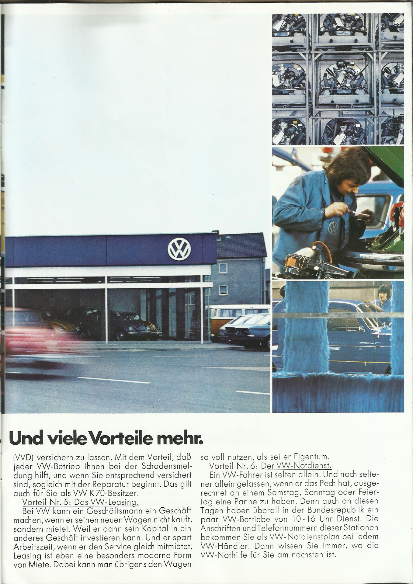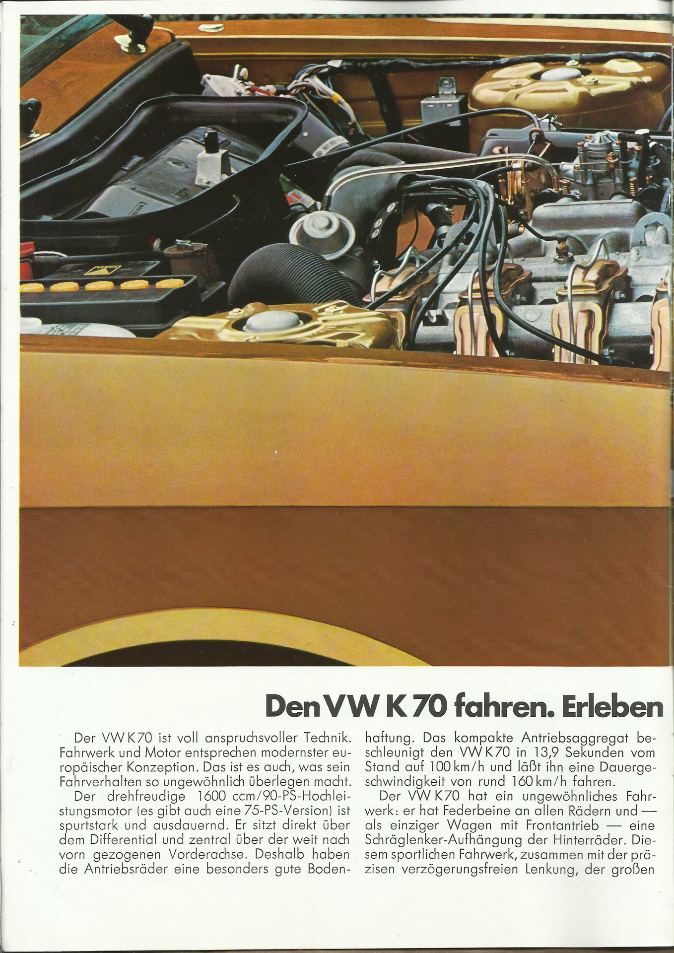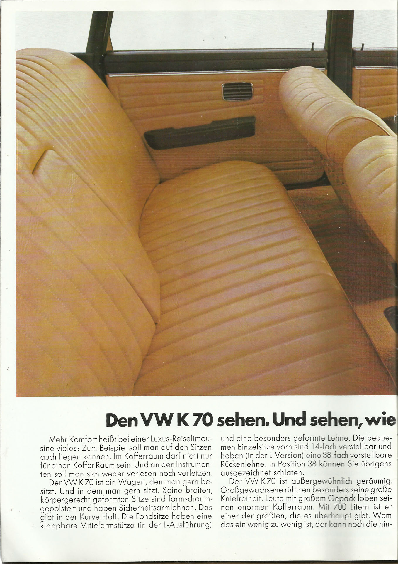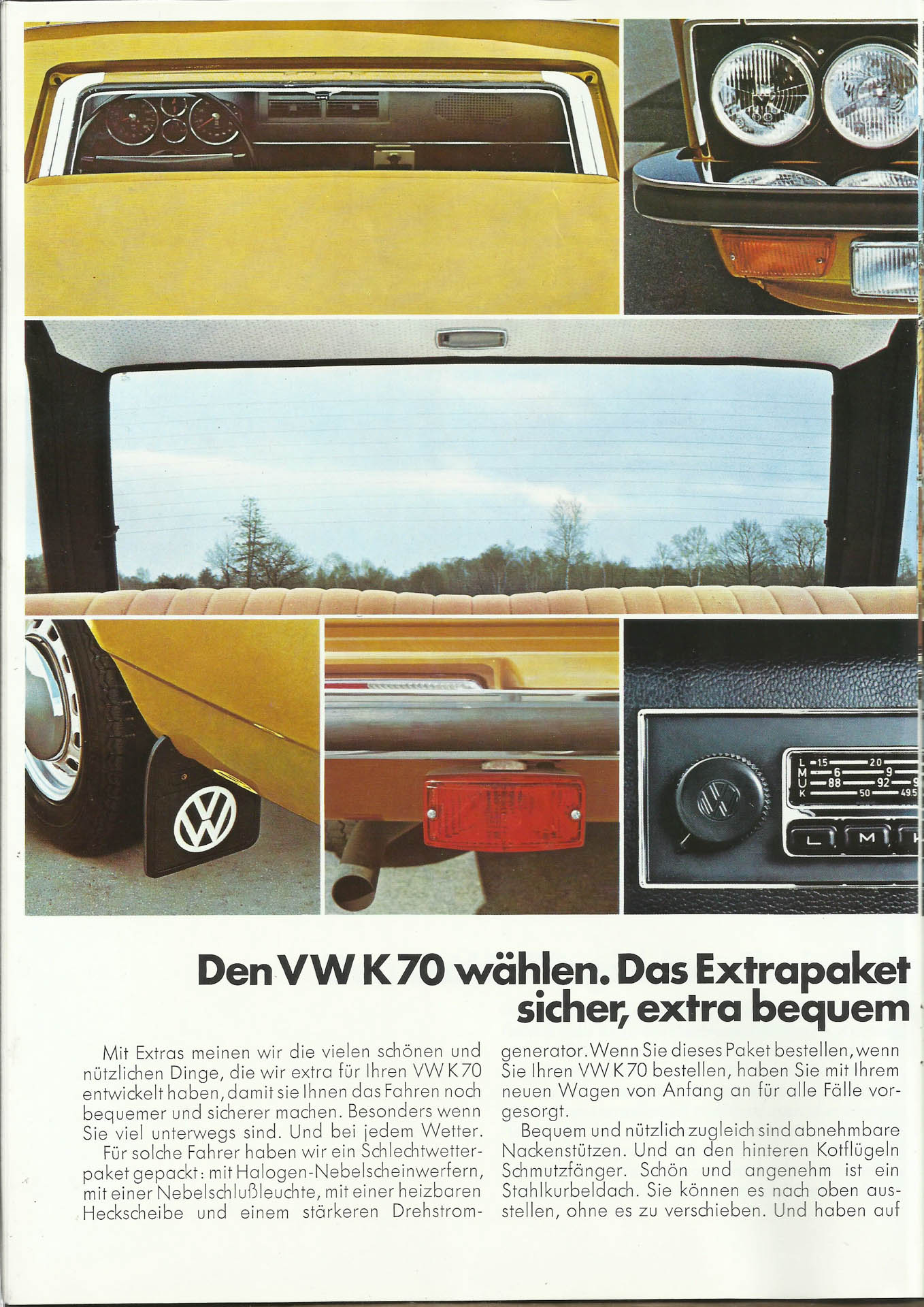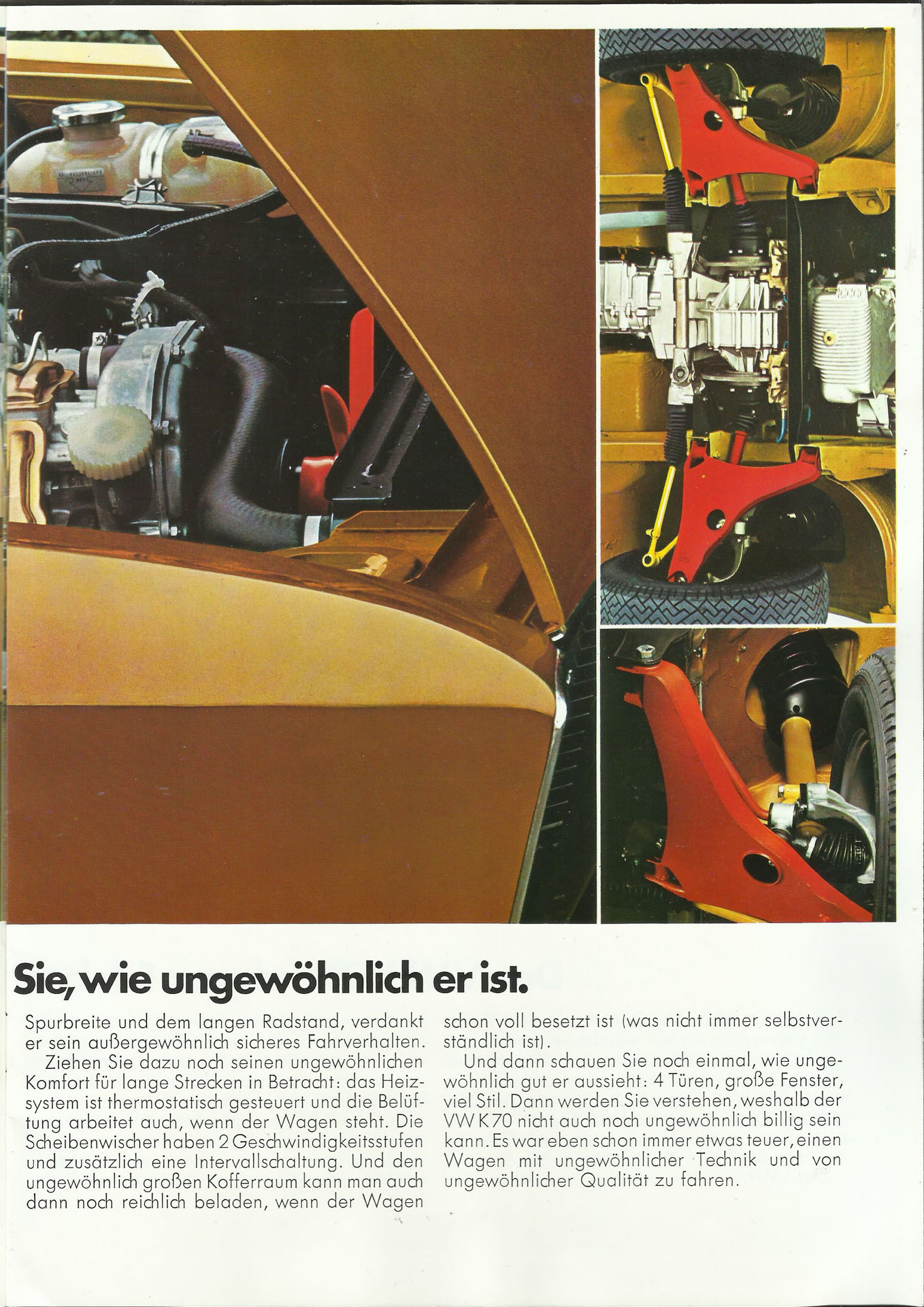 Szkoda było wyrzucać tak dobry projekt do kosza. Skoro K70 nie mogło zostać NSU ze względu na wewnętrzną konkurencję z Audi to zostało Volkswagenem. Niby ta sama klasa co VW 411/412, a dwa kompletnie różne samochody.