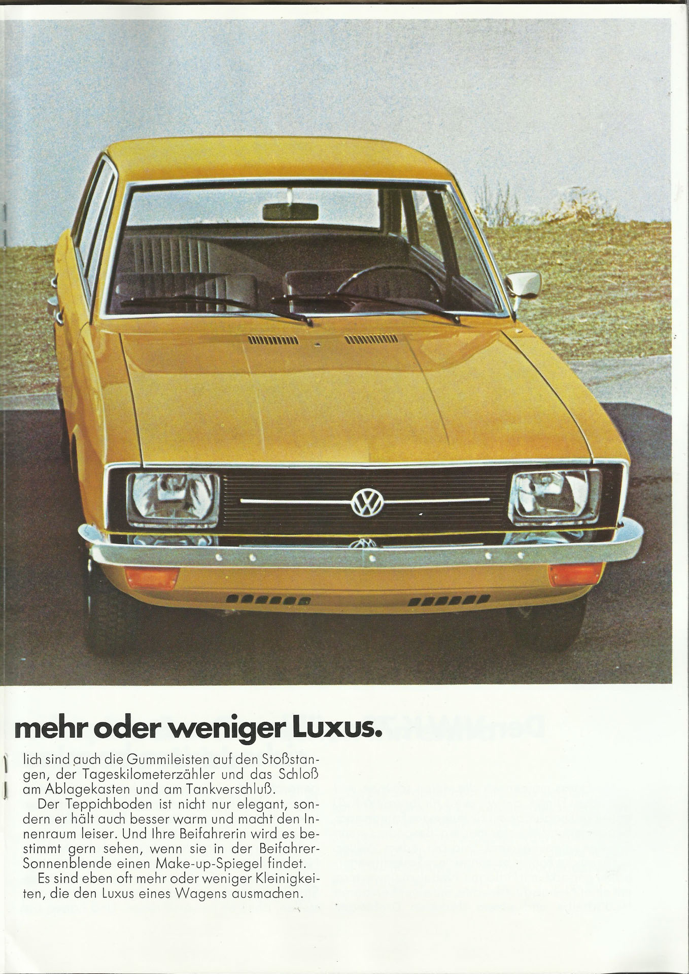 Proste w formie nadwozie narysowane przez Luthego odpowiadało ówczesnej modzie. Trochę przypominało serię Rootes Arrow (m. in. Hillman Hunter, późniejszy Paykan), a lekkością projektu nie odbiegało od Lancii 2000, Fiata 125 czy Datsuna 510. Tego w Wolfsburgu jeszcze nie widziano.