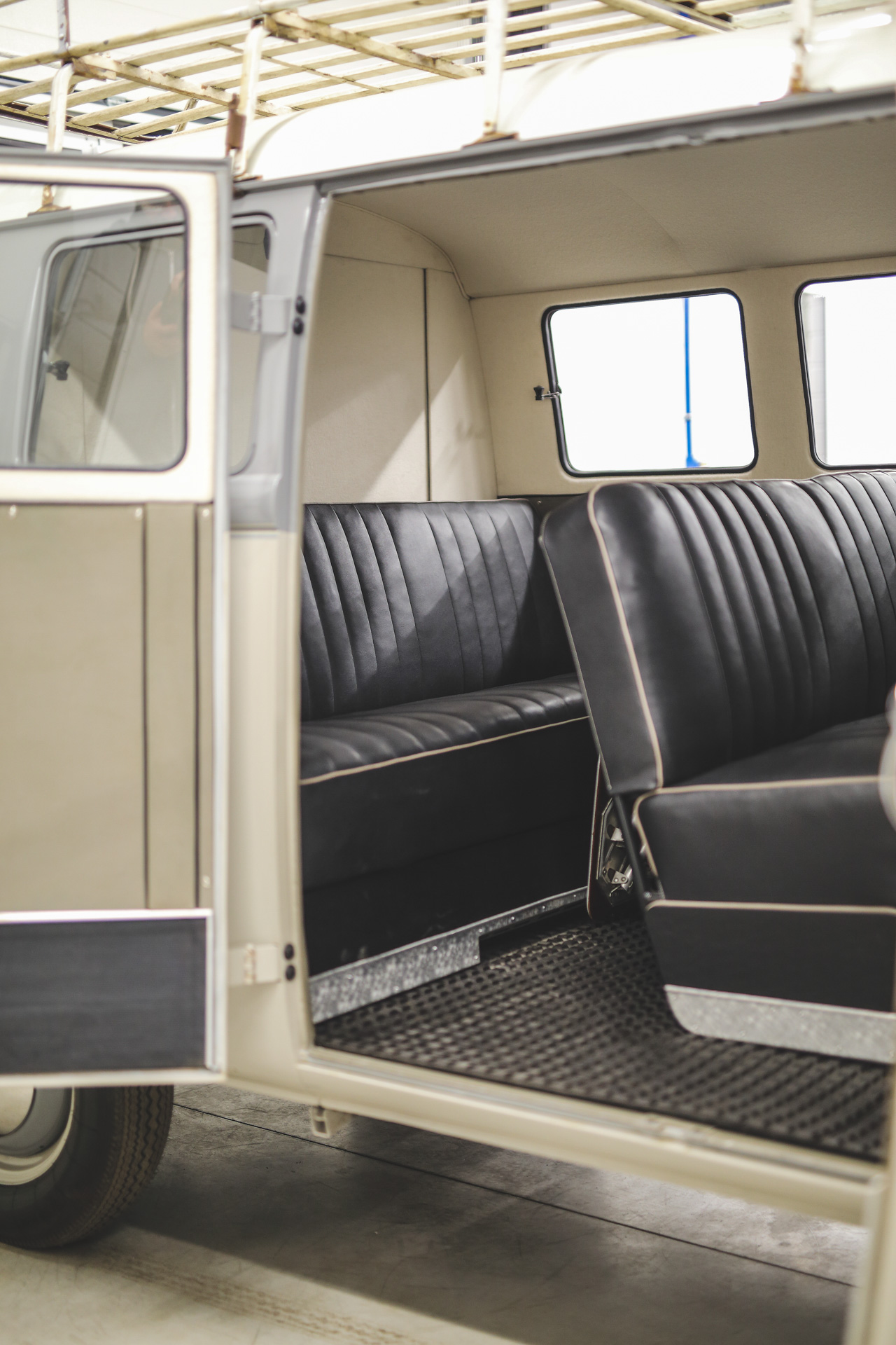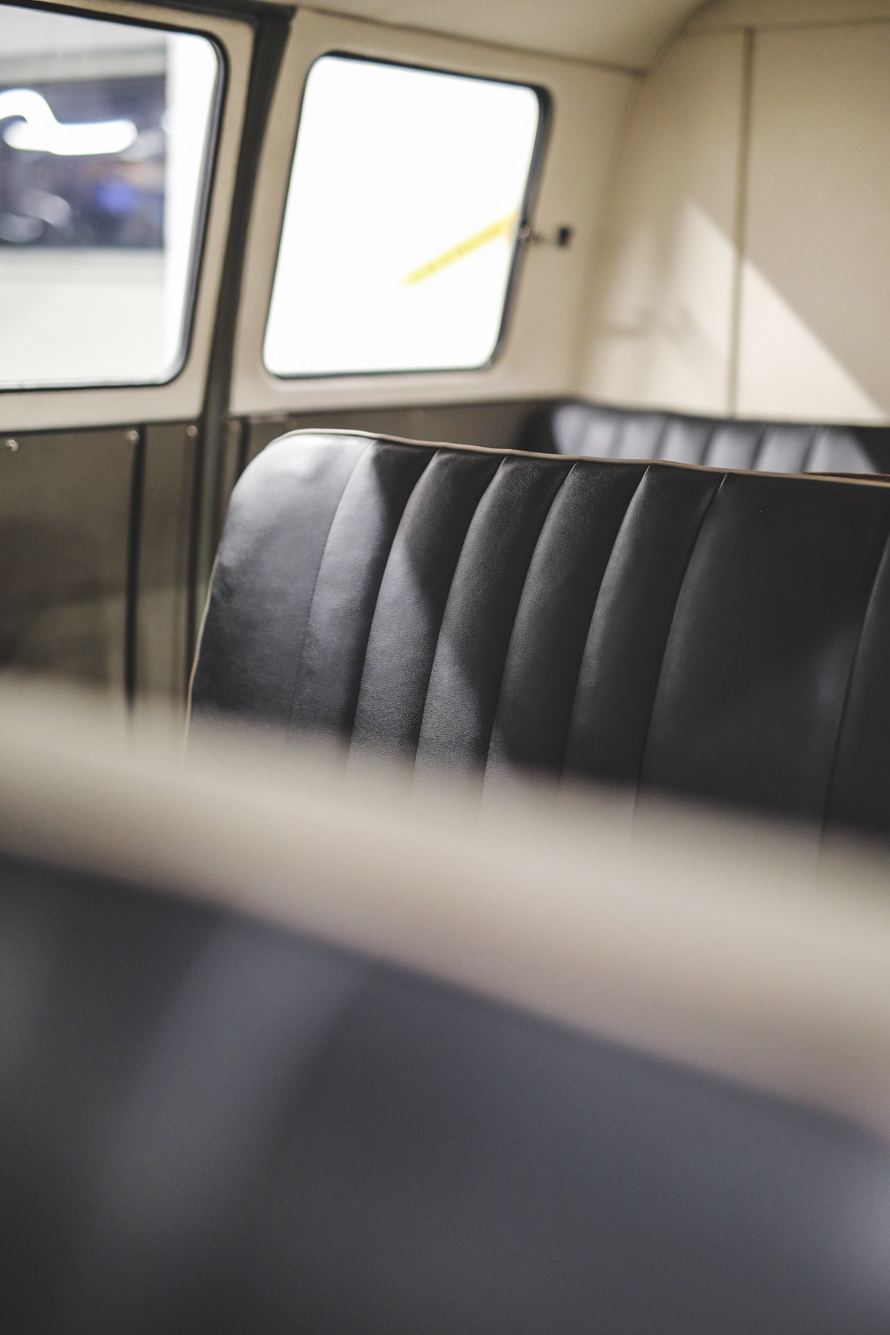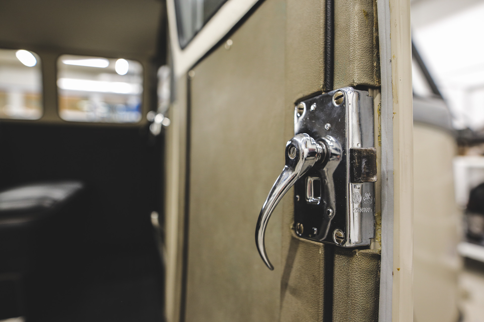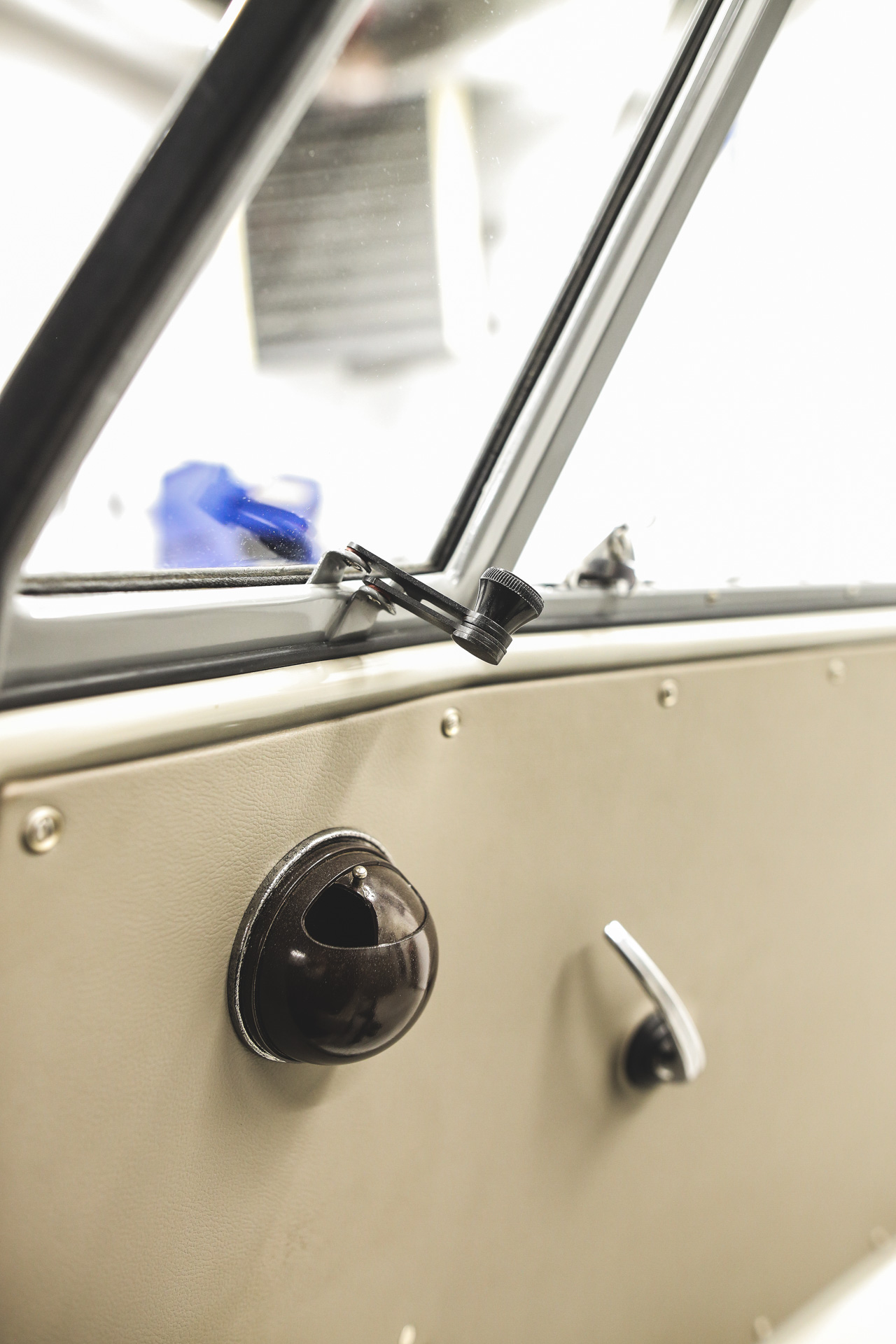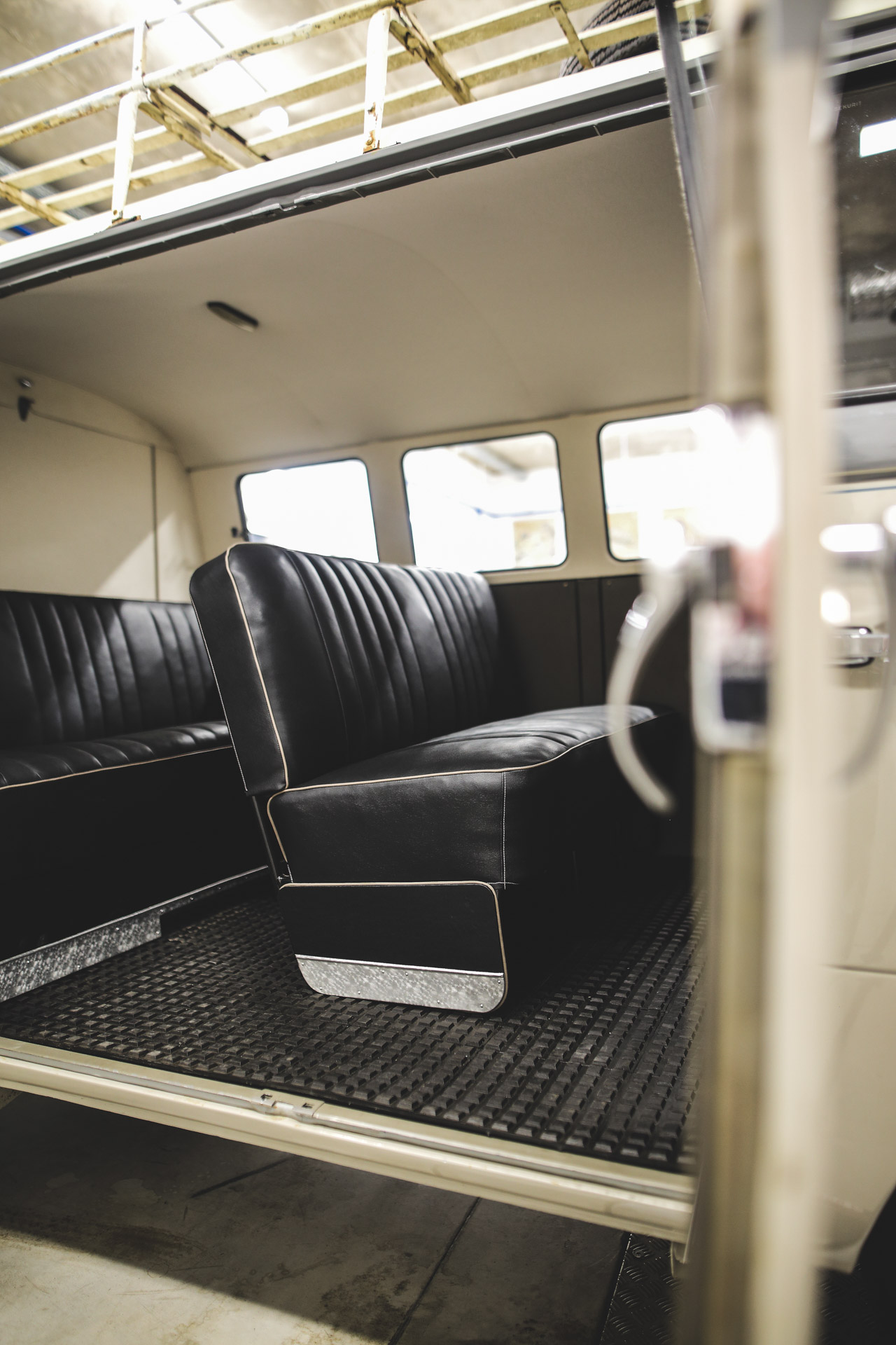 Volkswagen Transporter trafił do warsztatu Marka Spicera, któremu udało się odzyskać wewnętrzne panele z zachowaniem oryginalnego materiału. Wymagało to nie lada umiejętności i precyzji, bo były pokryte kilkoma warstwami farby i pogniłe tu i ówdzie. Teraz oczy cieszy perfekcyjnie odrestaurowany wóz. Niezwykłe jest to co zachwyca w tym T1 – asceza. Charakterystyczne dla wczesnych Transporterów olbrzymie logo VW z tyłu i brak przeszklenia tylnej części. Auto wygląda trochę jak z komiksu, a raczej ze snów Ferdynanda Porsche i Hansa Ledwinki o dostawczaku przyszłości.