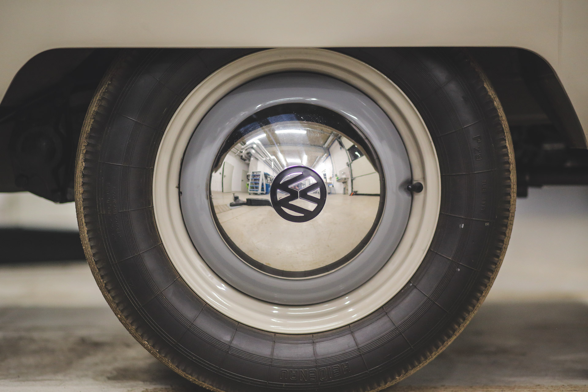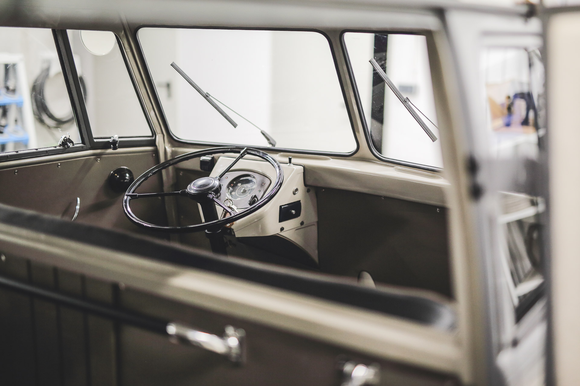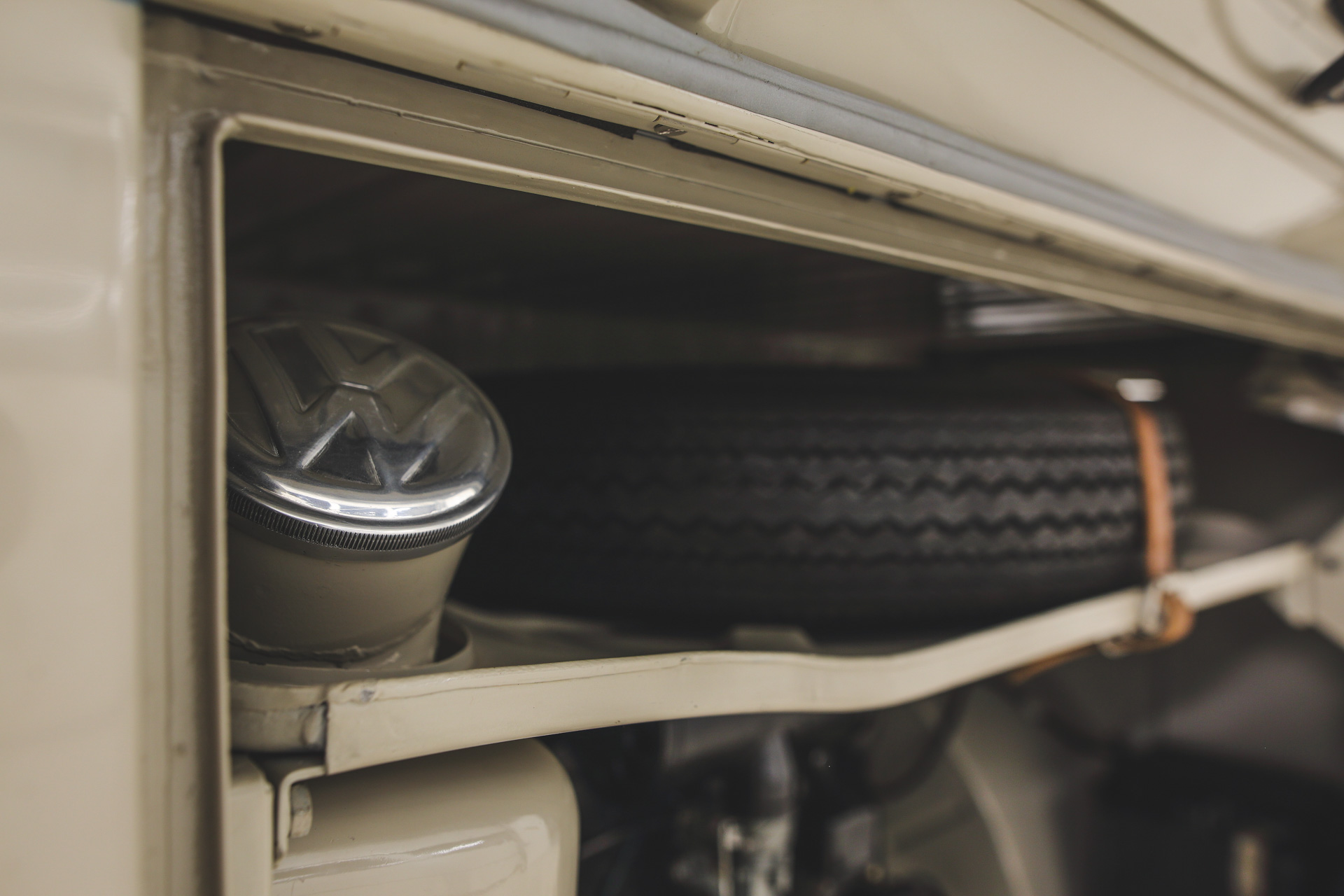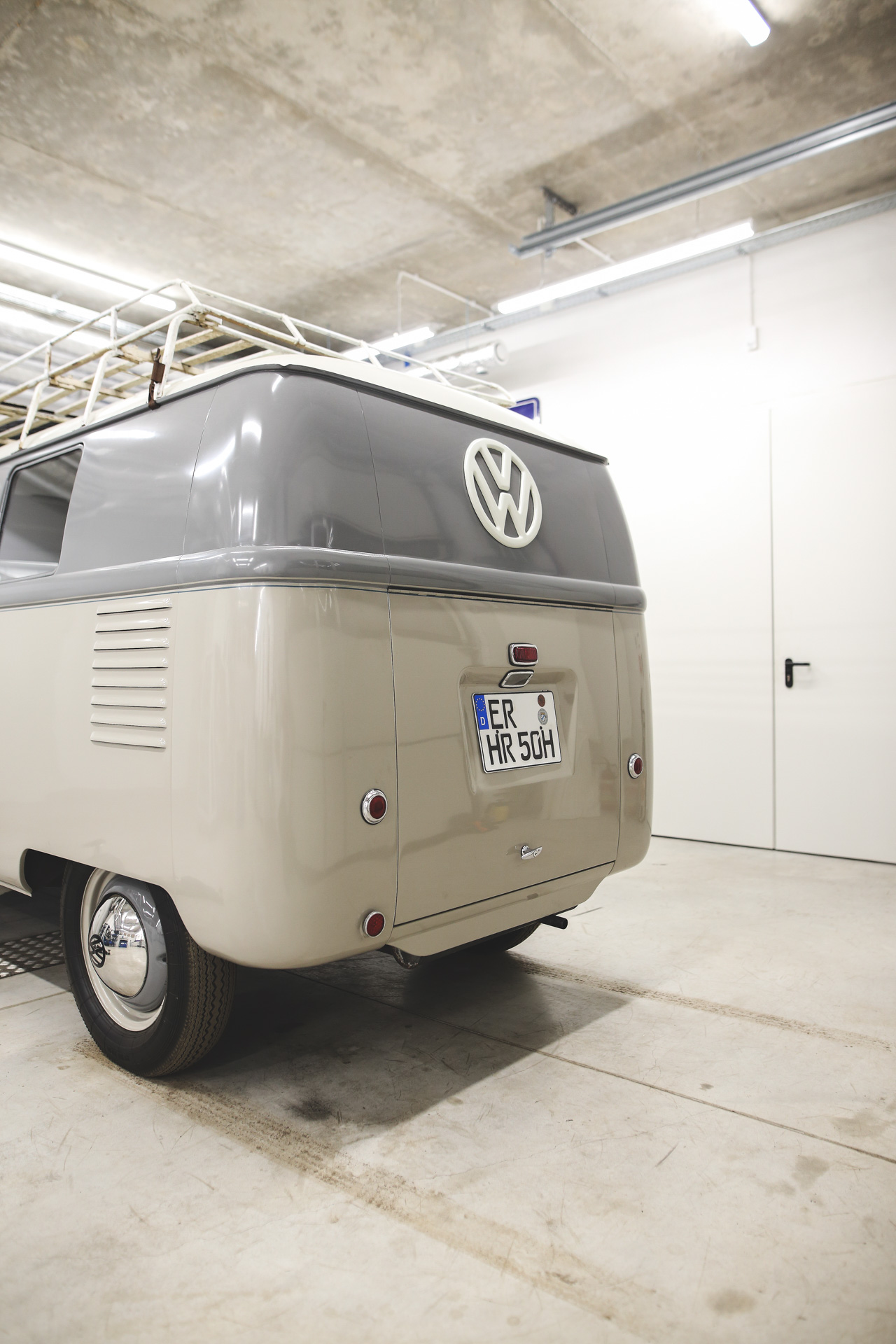 Volkswagen Transporter trafił do warsztatu Marka Spicera, któremu udało się odzyskać wewnętrzne panele z zachowaniem oryginalnego materiału. Wymagało to nie lada umiejętności i precyzji, bo były pokryte kilkoma warstwami farby i pogniłe tu i ówdzie. Teraz oczy cieszy perfekcyjnie odrestaurowany wóz. Niezwykłe jest to co zachwyca w tym T1 – asceza. Charakterystyczne dla wczesnych Transporterów olbrzymie logo VW z tyłu i brak przeszklenia tylnej części. Auto wygląda trochę jak z komiksu, a raczej ze snów Ferdynanda Porsche i Hansa Ledwinki o dostawczaku przyszłości.