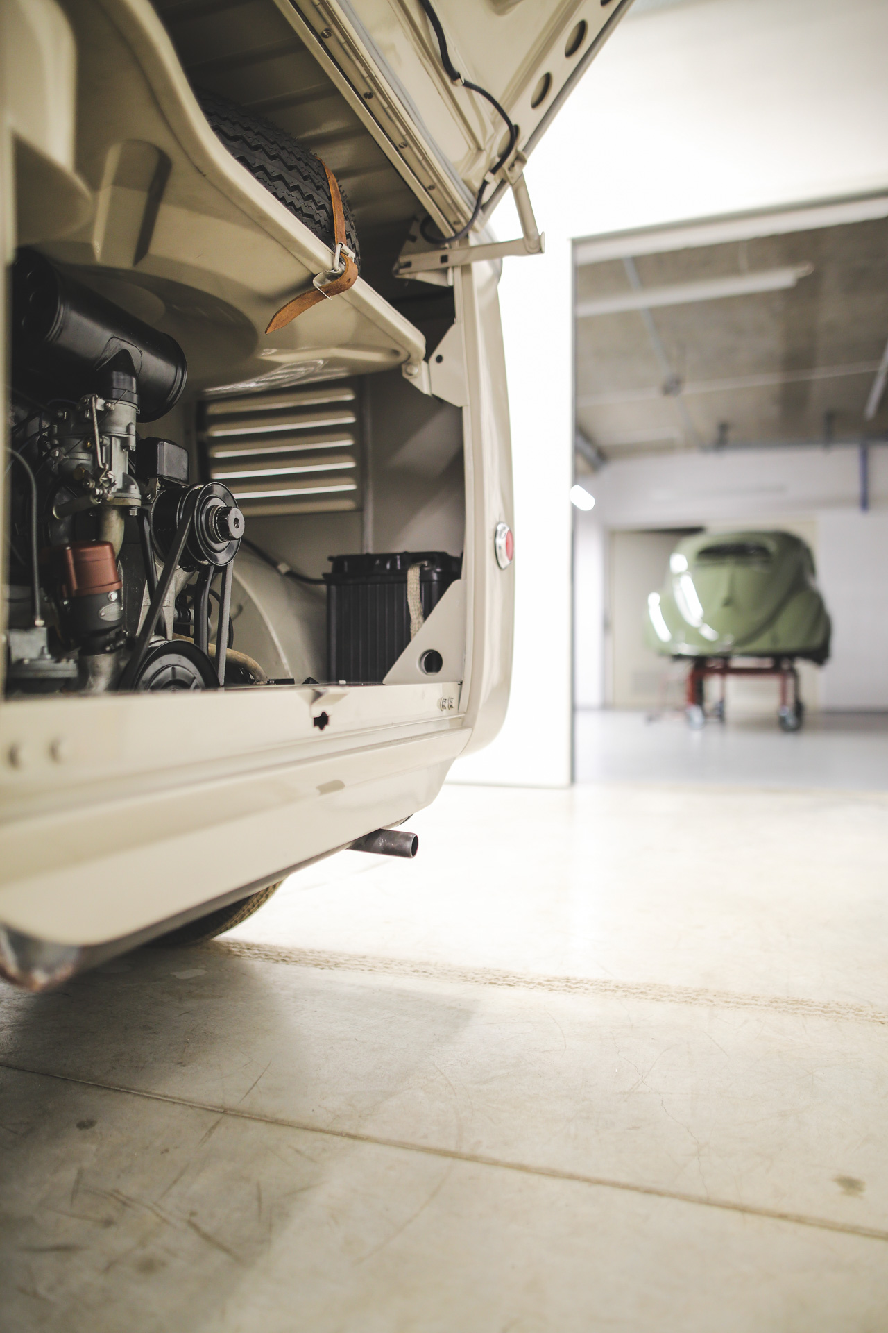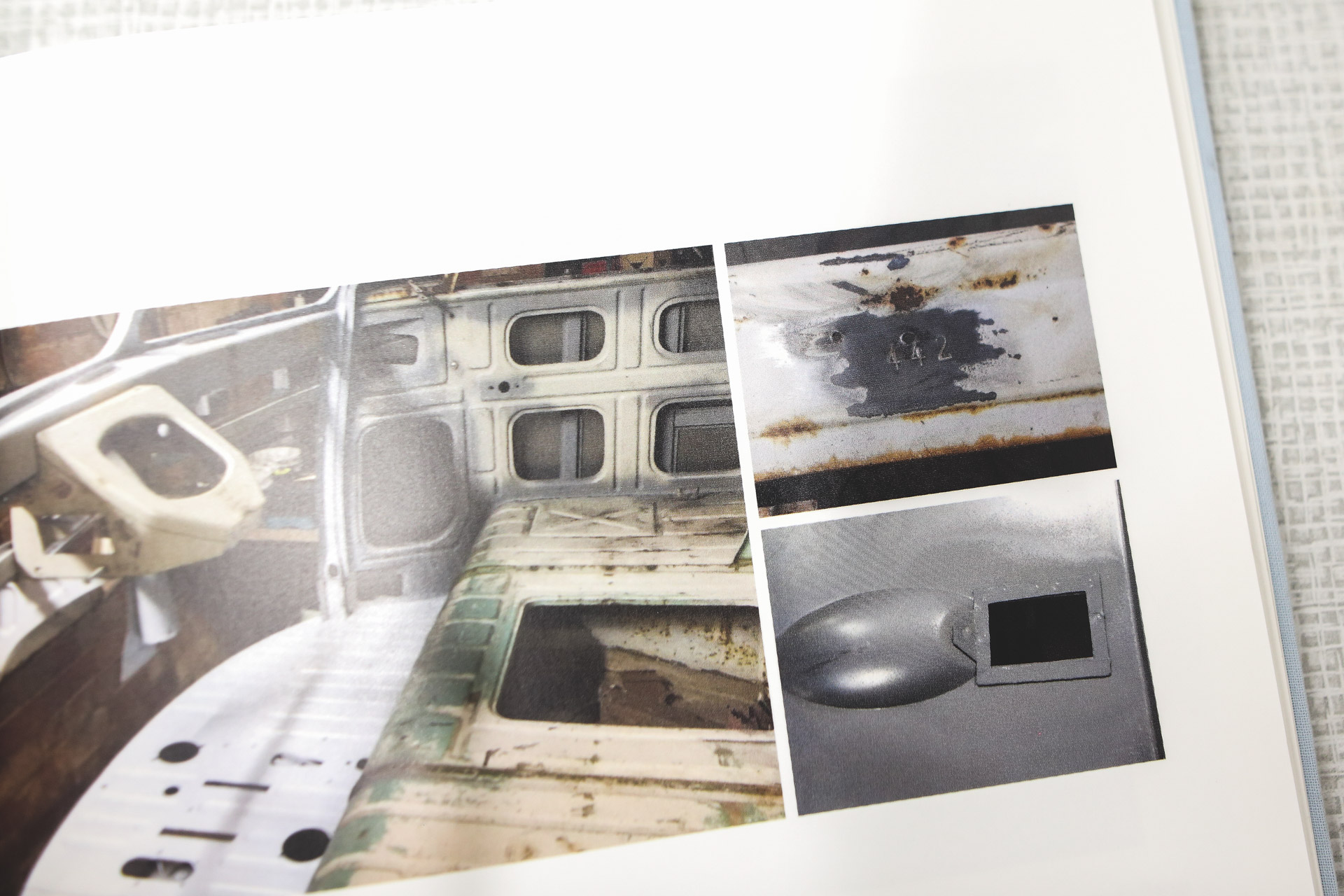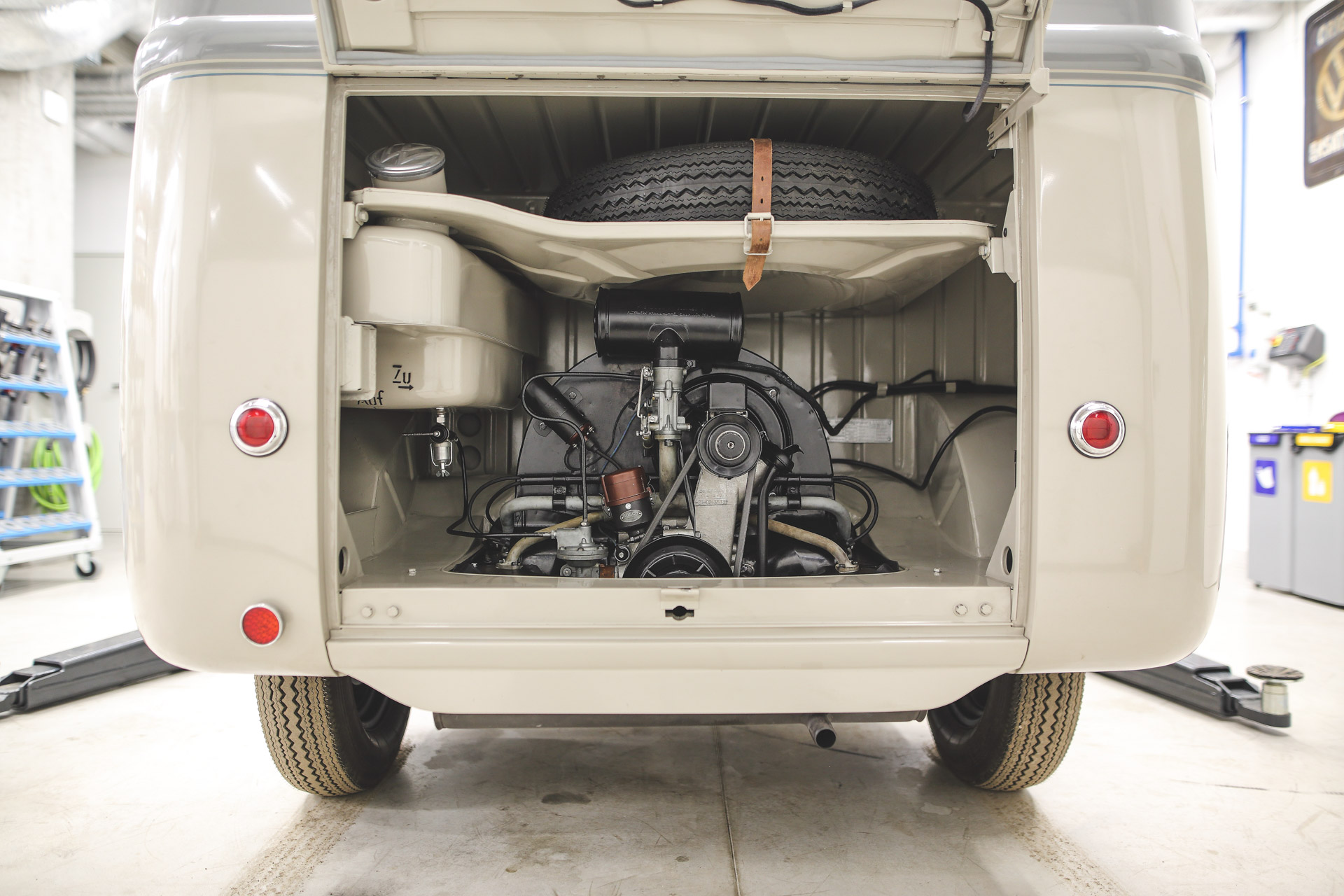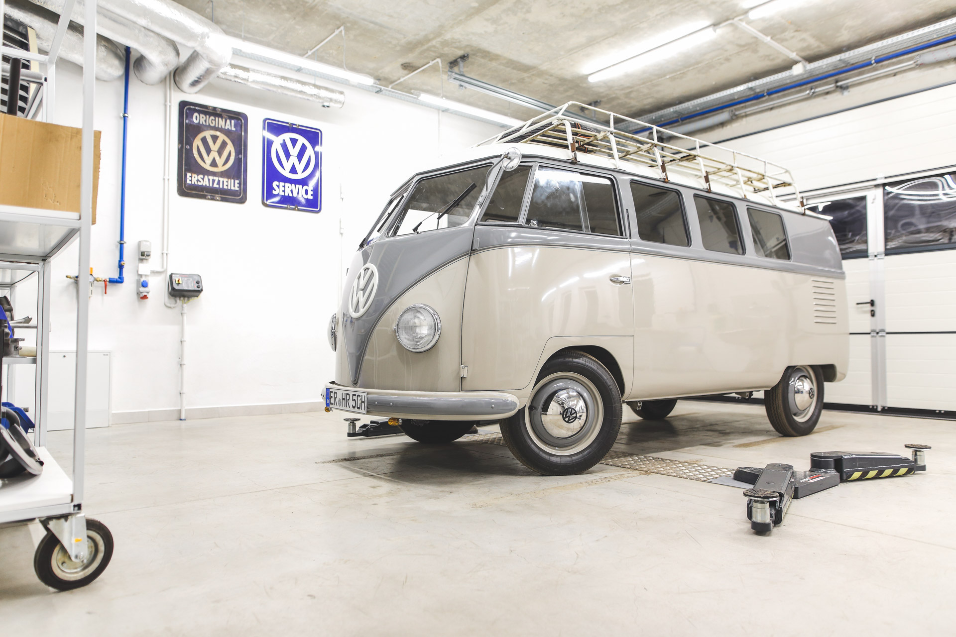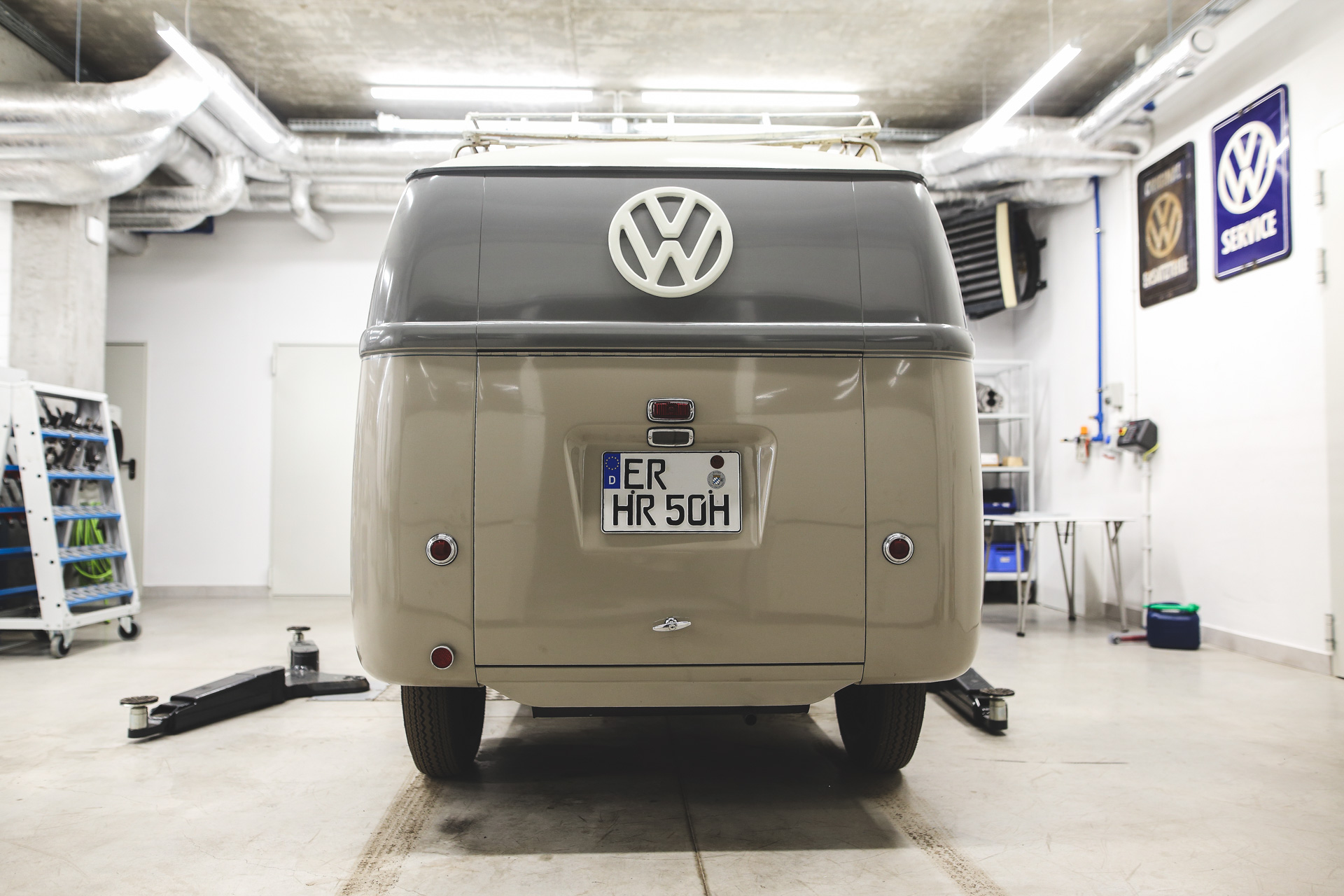 Volkswagen Transporter trafił do warsztatu Marka Spicera, któremu udało się odzyskać wewnętrzne panele z zachowaniem oryginalnego materiału. Wymagało to nie lada umiejętności i precyzji, bo były pokryte kilkoma warstwami farby i pogniłe tu i ówdzie. Teraz oczy cieszy perfekcyjnie odrestaurowany wóz. Niezwykłe jest to co zachwyca w tym T1 – asceza. Charakterystyczne dla wczesnych Transporterów olbrzymie logo VW z tyłu i brak przeszklenia tylnej części. Auto wygląda trochę jak z komiksu, a raczej ze snów Ferdynanda Porsche i Hansa Ledwinki o dostawczaku przyszłości.