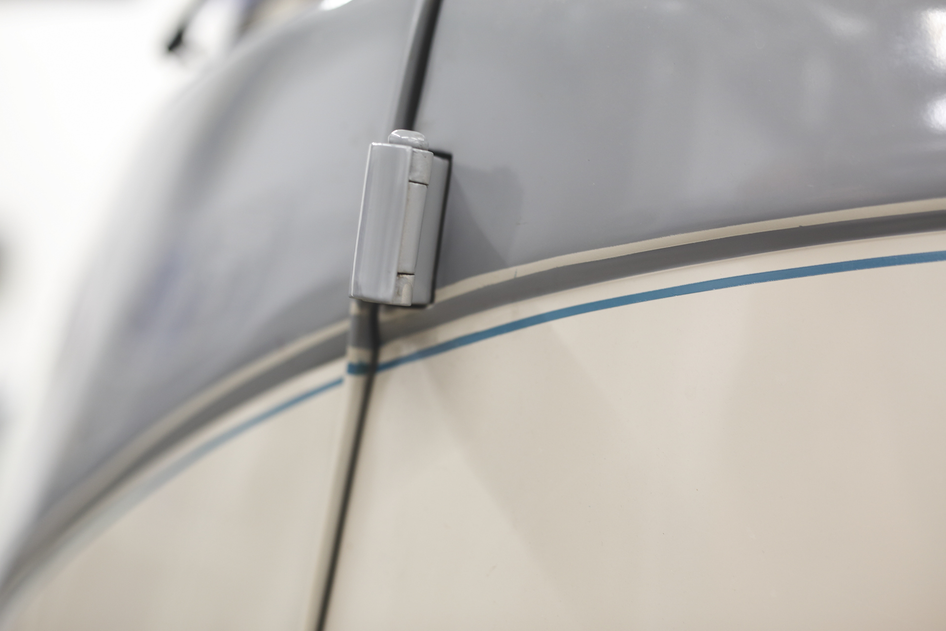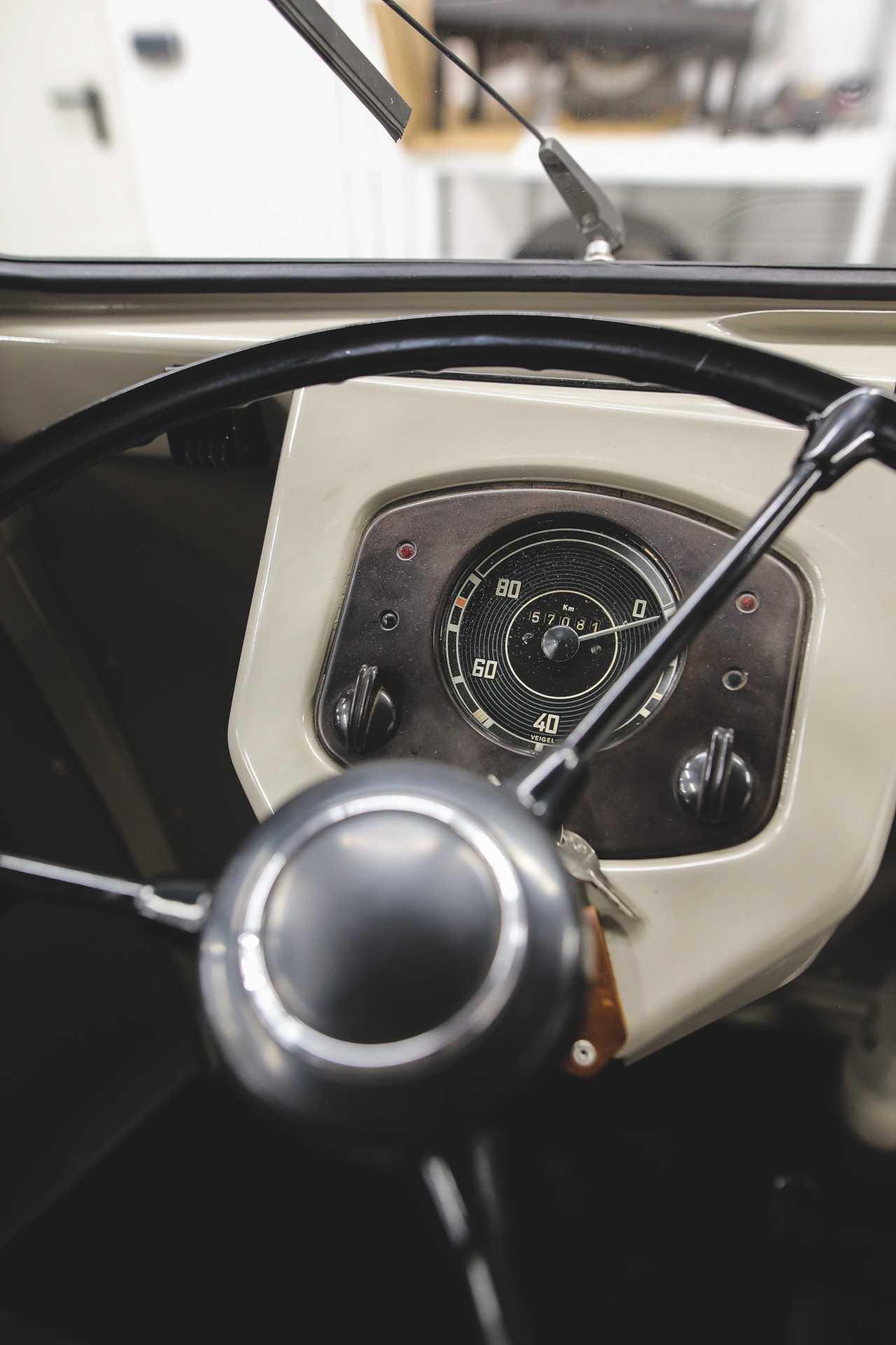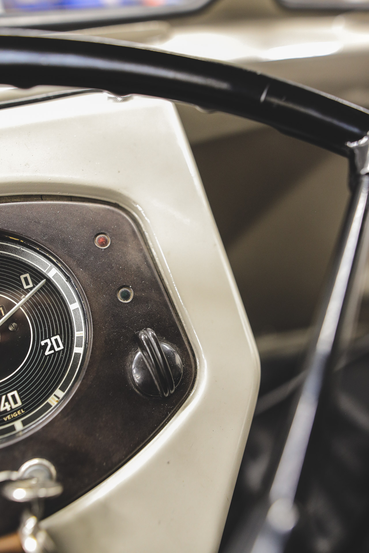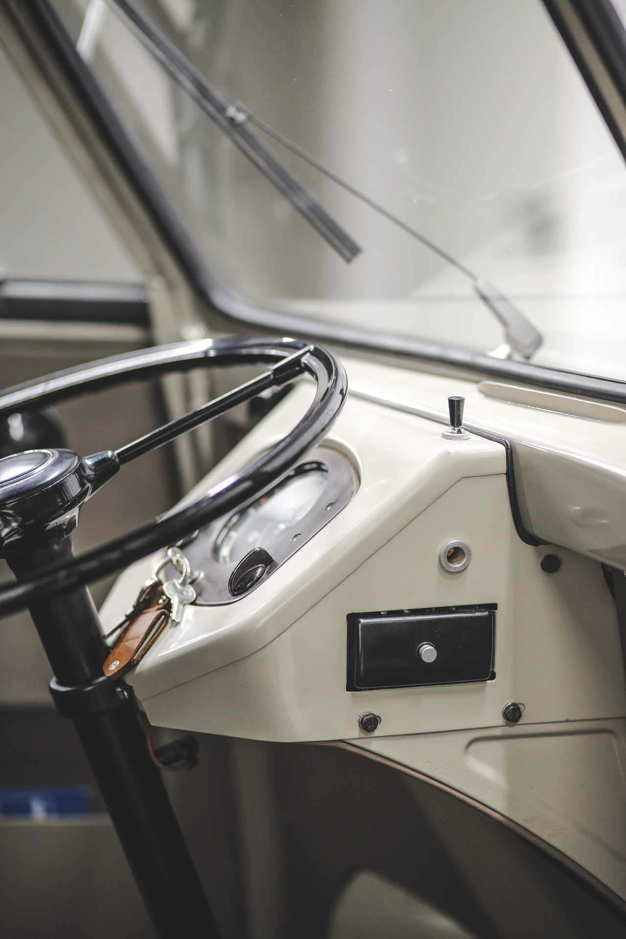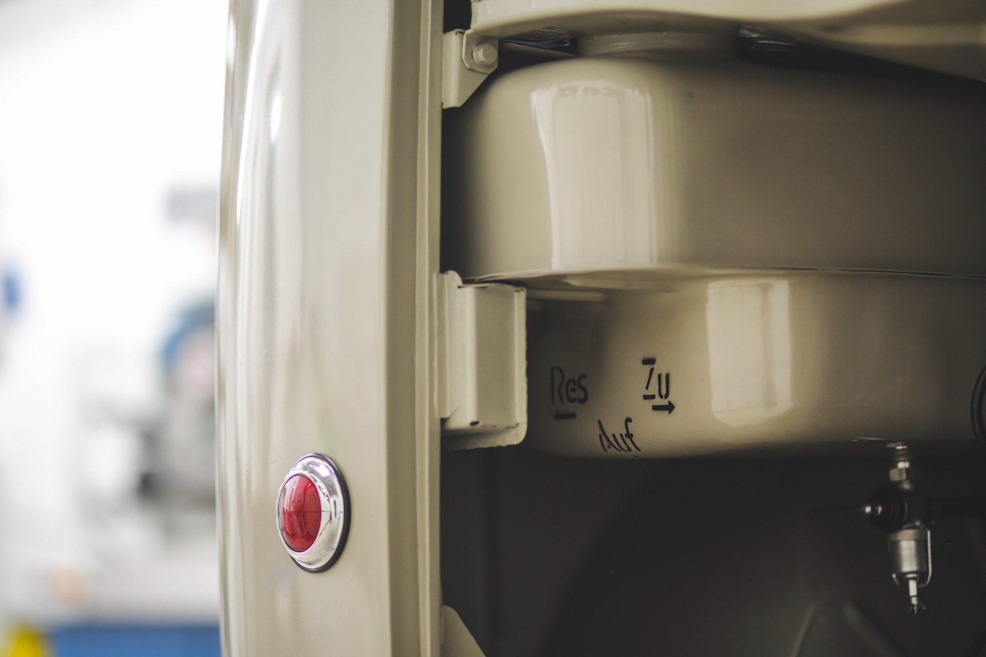 Volkswagen Transporter trafił do warsztatu Marka Spicera, któremu udało się odzyskać wewnętrzne panele z zachowaniem oryginalnego materiału. Wymagało to nie lada umiejętności i precyzji, bo były pokryte kilkoma warstwami farby i pogniłe tu i ówdzie. Teraz oczy cieszy perfekcyjnie odrestaurowany wóz. Niezwykłe jest to co zachwyca w tym T1 – asceza. Charakterystyczne dla wczesnych Transporterów olbrzymie logo VW z tyłu i brak przeszklenia tylnej części. Auto wygląda trochę jak z komiksu, a raczej ze snów Ferdynanda Porsche i Hansa Ledwinki o dostawczaku przyszłości.