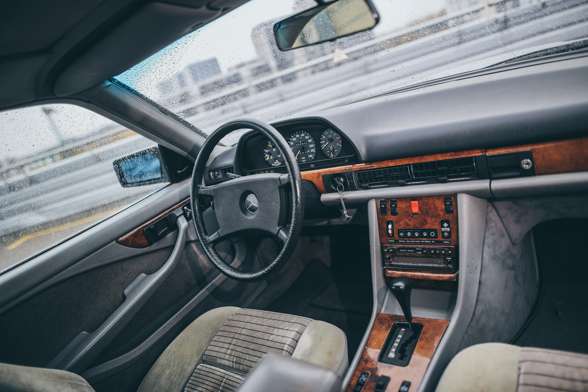 Nie można za to narzekać na wyposażenie. W środku jest przytulnie jak w paryskiej garsonierze i ładnie jak w szwedzkim sklepie meblowym. Wszędzie widać drewno, estetyczne wykładziny i dobrej jakości tworzywa. Nasz wóz pochodzi z 1982 roku i mimo sporego przebiegu nadal wszystkie elementy są w świetnym stanie. Oprócz wysokiej jakości wrażenie na klientach robiły wspomniane już elektrycznie otwierane szyby, klimatyzacja oraz ABS. W późniejszych modelach wprowadzono także poduszkę powietrzną. W zasadzie SEC miał wszystko, co wówczas było dostępne.