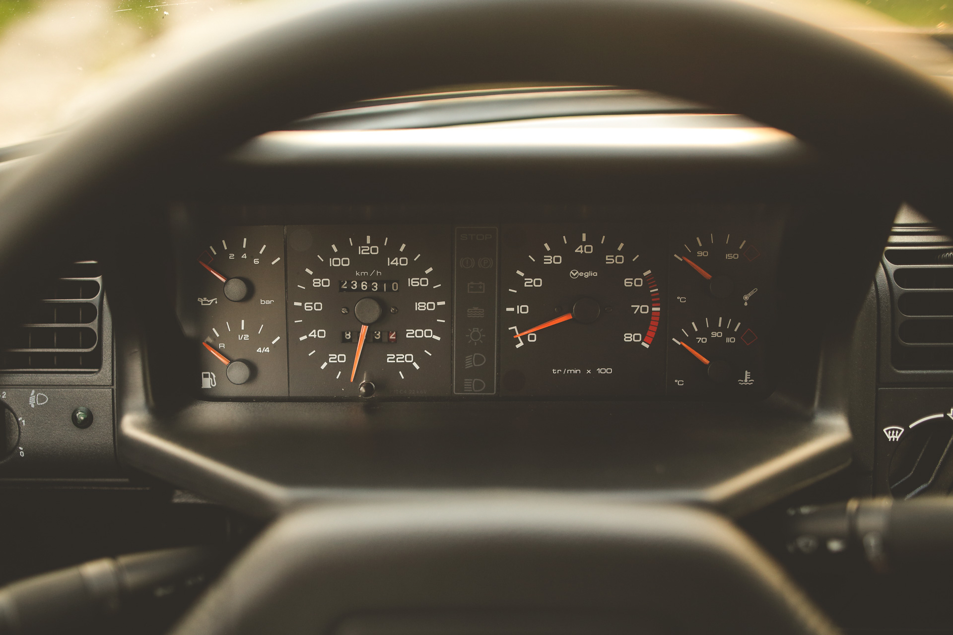 Subtelny charakter odnajdziemy też w kabinie – świetnie wyglądające, mocno wyprofilowane fotele (w odmianie 1.9 półskórzane lub skórzane) i czerwona wykładzina podłogowa. Później, wraz z limitowanymi wersjami takimi jak Sorrento Green czy 1FM, pojawiła się też ciemnozielona wykładzina i tapicerka z zielonymi akcentami.