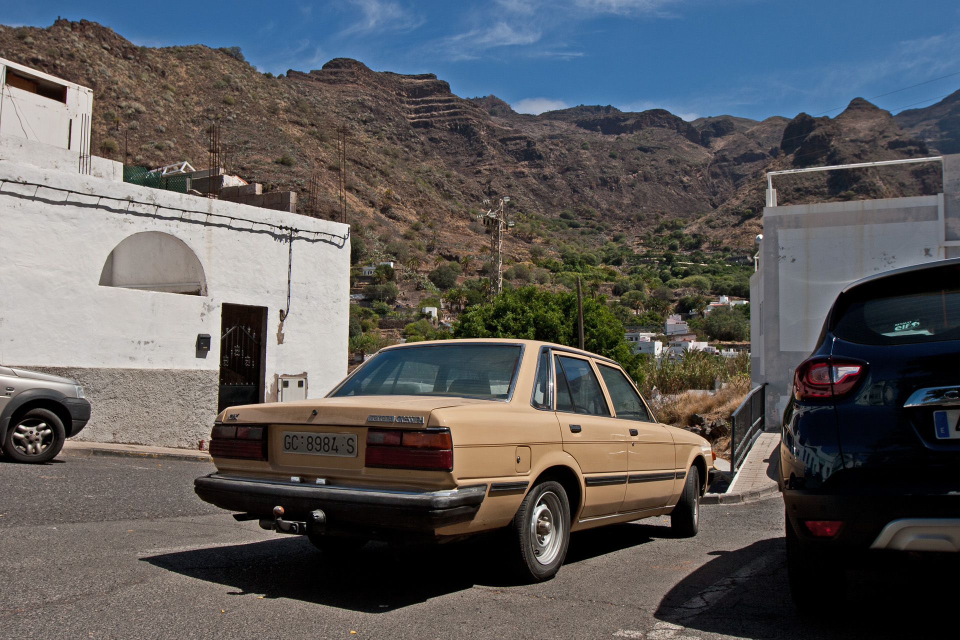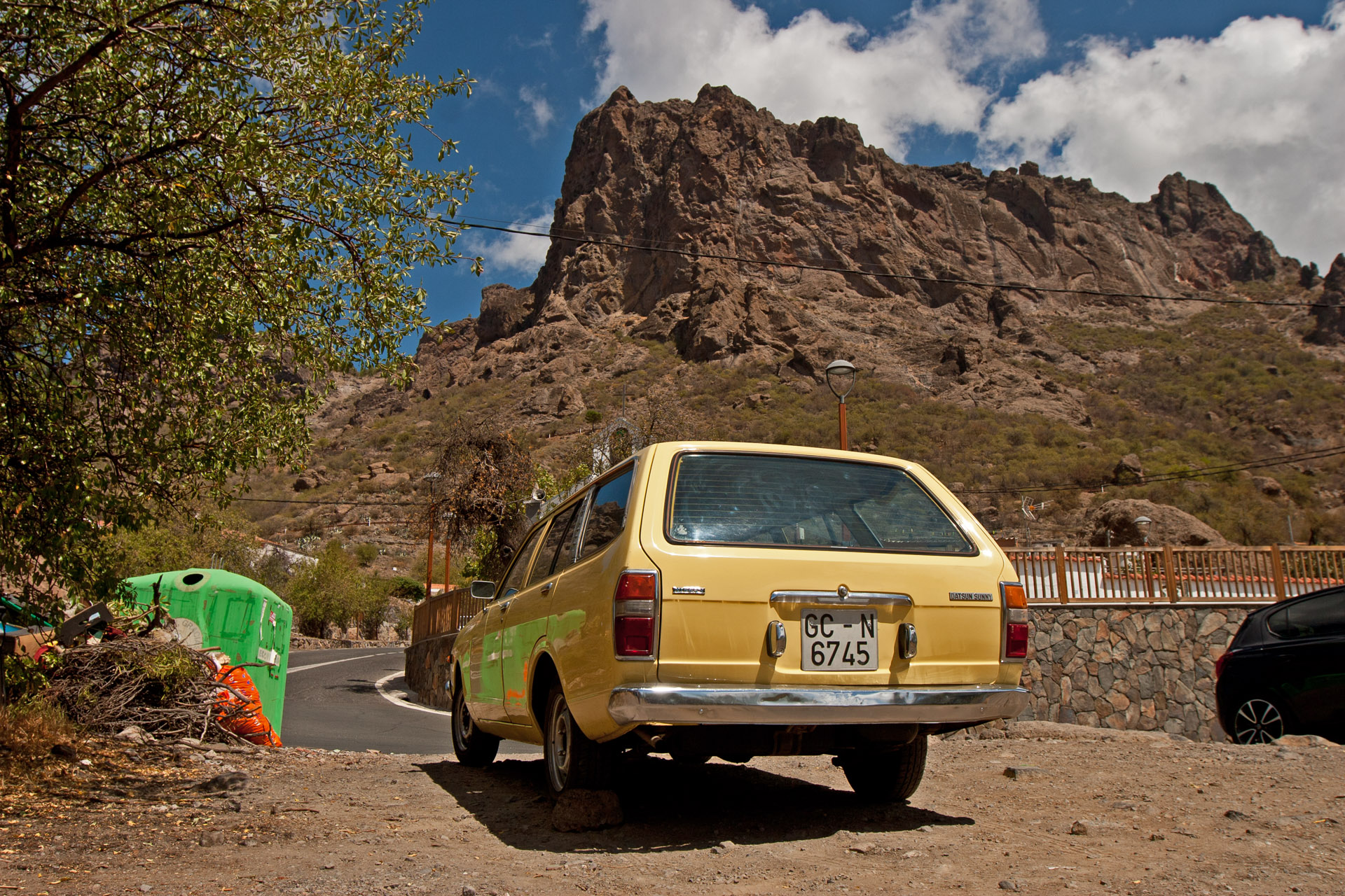 Potem było już tylko lepiej. Wspinając się i zjeżdżając górskimi krętymi jak cholera drogami napotkałem kolejny hit tego dnia. To idealny Datsun Sunny kombi wygrzewał się w promieniach słońca. Powiem Wam tylko tyle, że trudni było się od niego oderwać. W myślach już obliczałem, czy starczyłoby mi na niego kasy i rozważałem czy dałoby się w nim mieszkać oraz z czego mógłbym żyć w sercu dzikich gór na Gran Canarii. Na razie jednak musiałem zadowolić się zdjęciami.