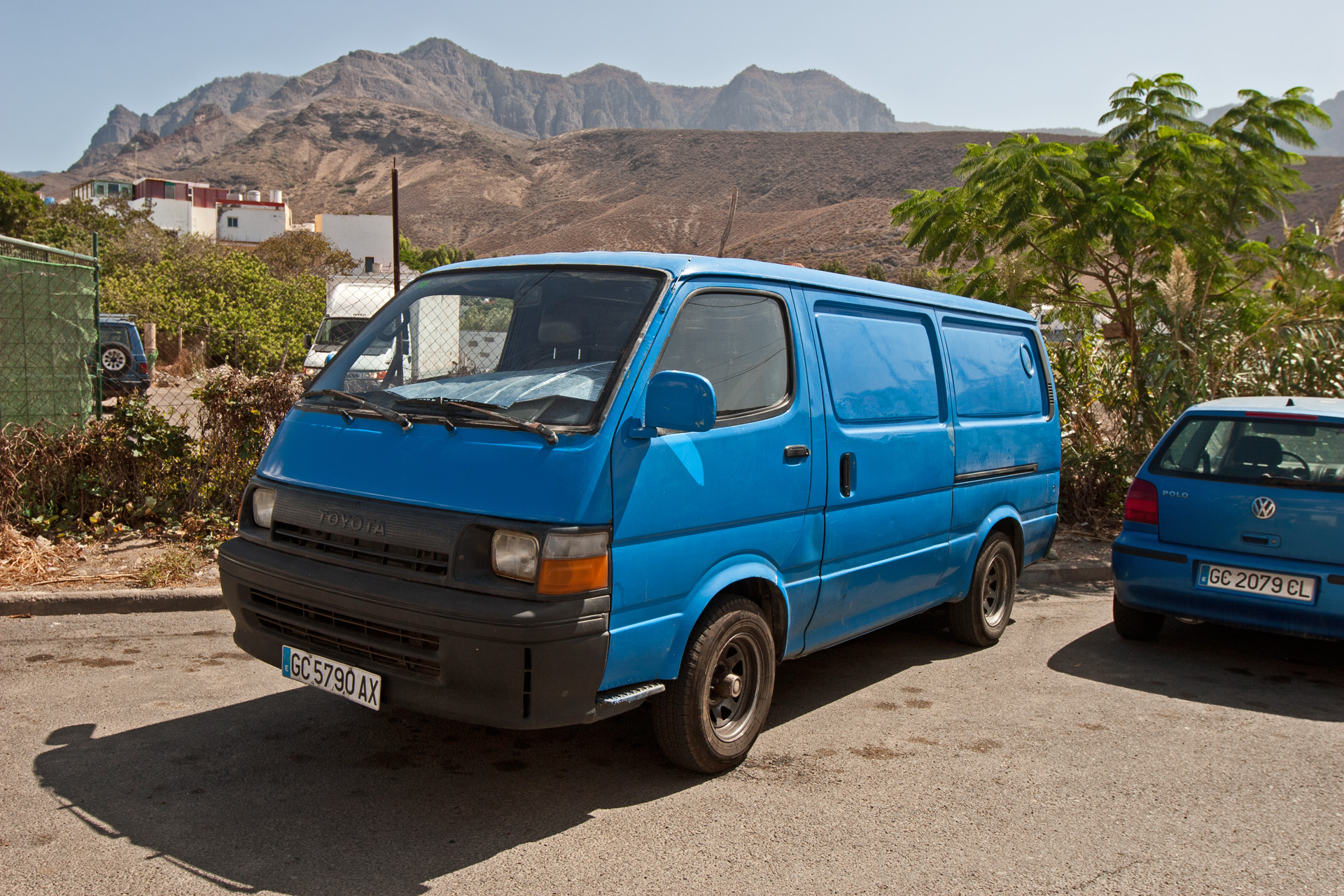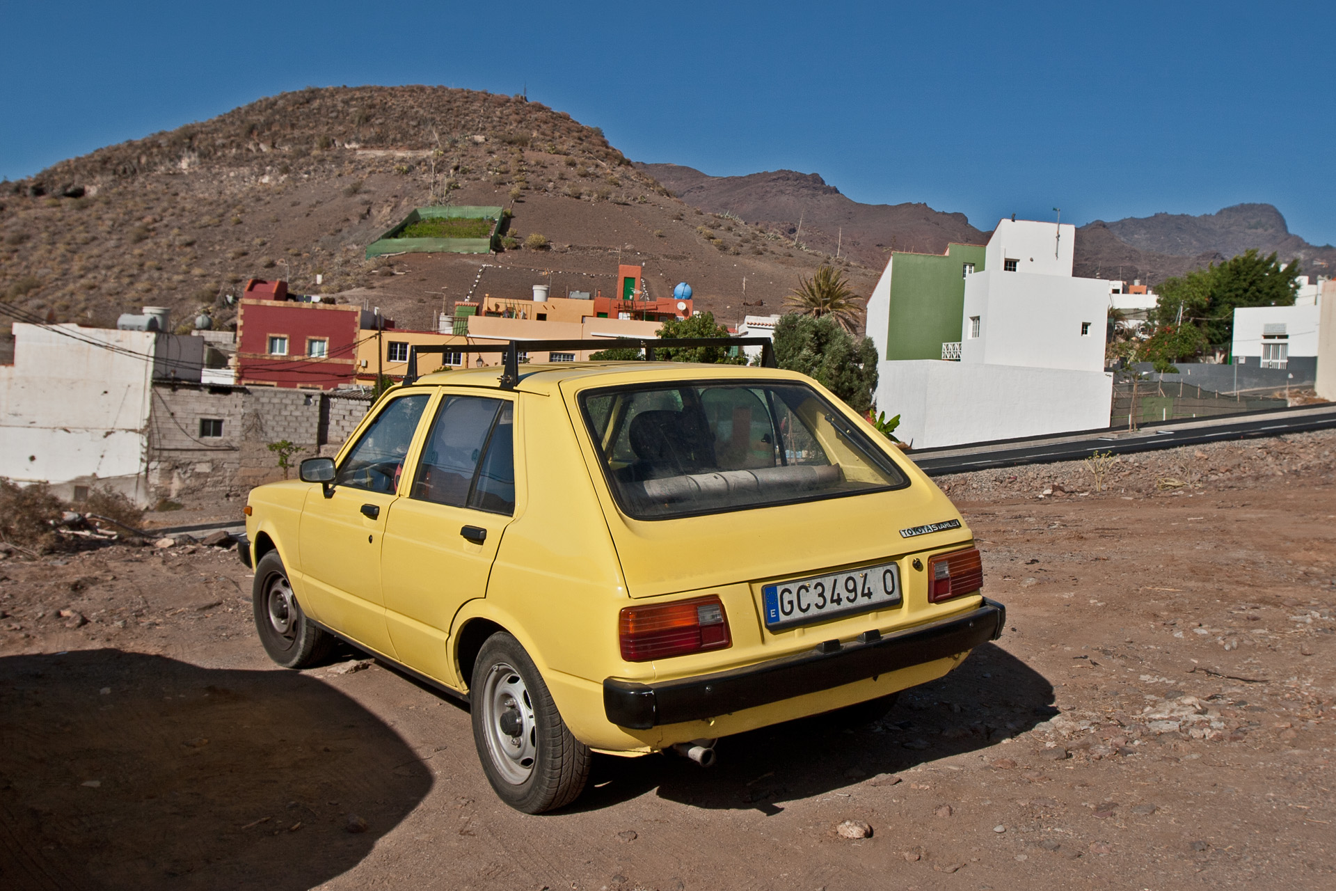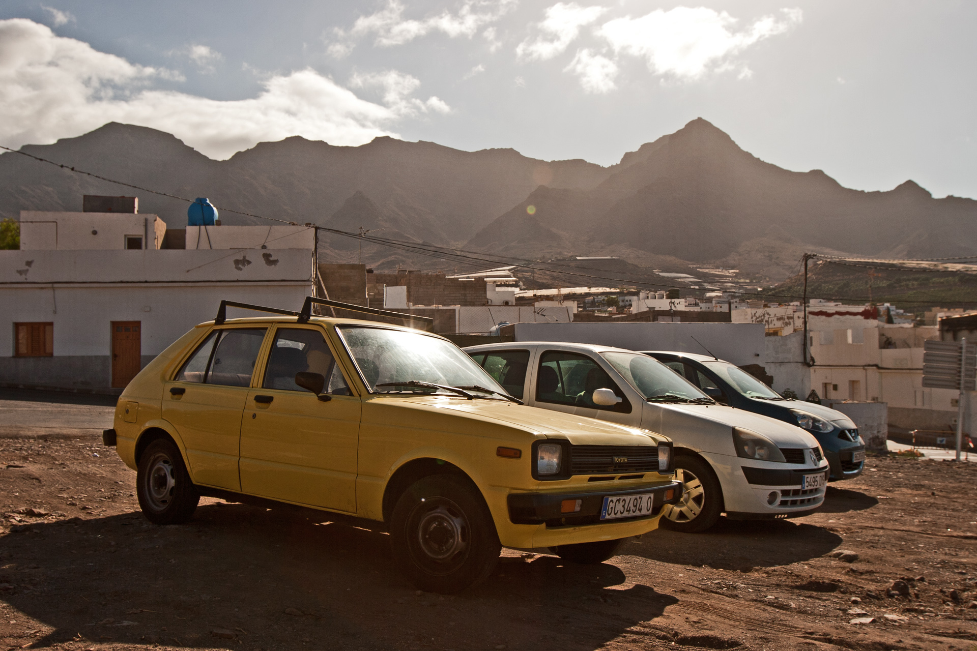 Wyszliśmy od naszych gościnnych gospodarzy z Cool Canaria w stronę portu w Agaete na Gran Canarii i od razu się zaczęło. Po kilku dniach wydaje się, że skumaliśmy, jakie wozy będziemy spotykać: Renault Expressy, sporo japońskich aut z przełomu lat 80. i 90., o Seatach Panda i Marbellach nawet nie warto wspominać, tak jak o renówkach super piątkach albo Corsach A w sedanie i nie w sedanie.