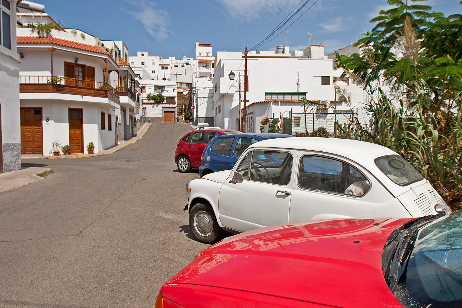 Jest jednak jedna różnica: tutaj, na Kanarach, ta kolorystyczna krzykliwość jakoś się broni. Czerwony dom z fioletowymi obramowaniami okien i wściekle białe tralki wokół tarasu nie powodują tak dużego oczopląsu jak w kraju. A może to tylko bezsensowne uzasadnienie, bo na przykład w Agaete są tylko białe domy.