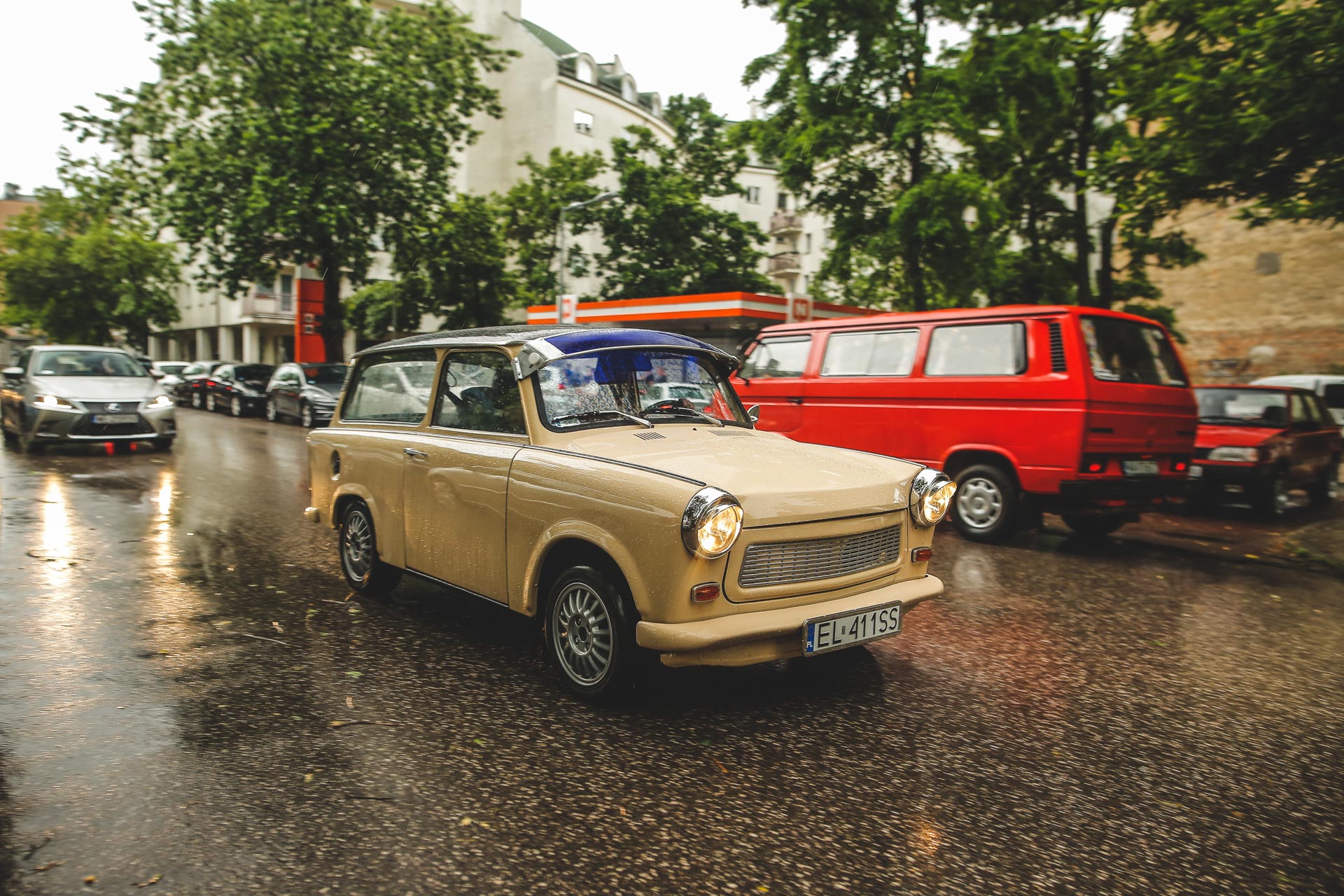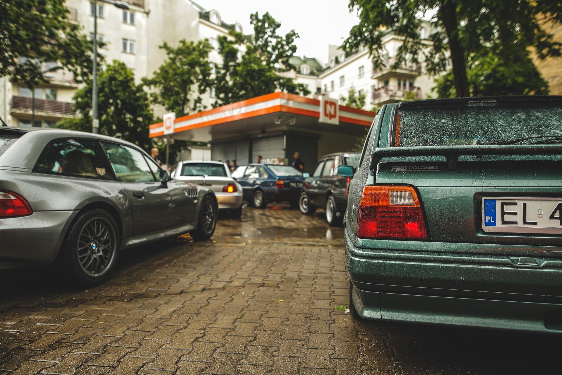 Jak zwykle na fotospotach Youngtimer Warsaw w kilku miejscach było nieco bardziej tłoczno. Tym razem punktem zbiorczym okazał się CPN przy ulicy Markowskiej. W tym dniu drzwi stacji zamknięto na cztery spusty. Pewnie zabrakło już etyliny. CPN był permanentnie okupowany i wyglądało jakby wszyscy czekali na dostawę żółtej. Choć z drugiej strony obniżony Fiat 125p i Mercedes „Baleron” pokazywał, że to bardziej jakiś równoległy świat niż lata 80.