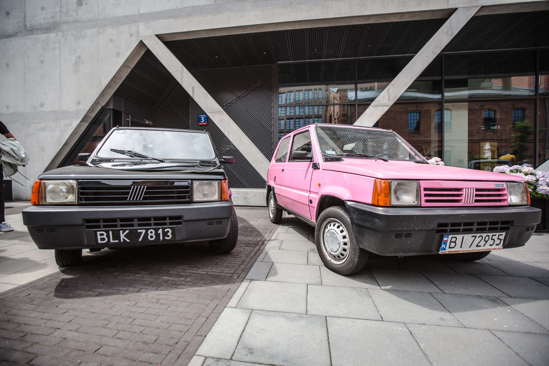 Przy wjeździe zwiedzających witały dwie generacje Forda Fiesty XR2 w towarzystwie Forda Capri Mk III. Zaraz obok wesołe mordki pokazywały dwie sztuki Fiatów Panda, w tym jedna w wersji Pink. Pandy świetnie komponowały się z MZ ES 250, przy którym prezentował się motocyklista w oryginalnym stroju z epoki.