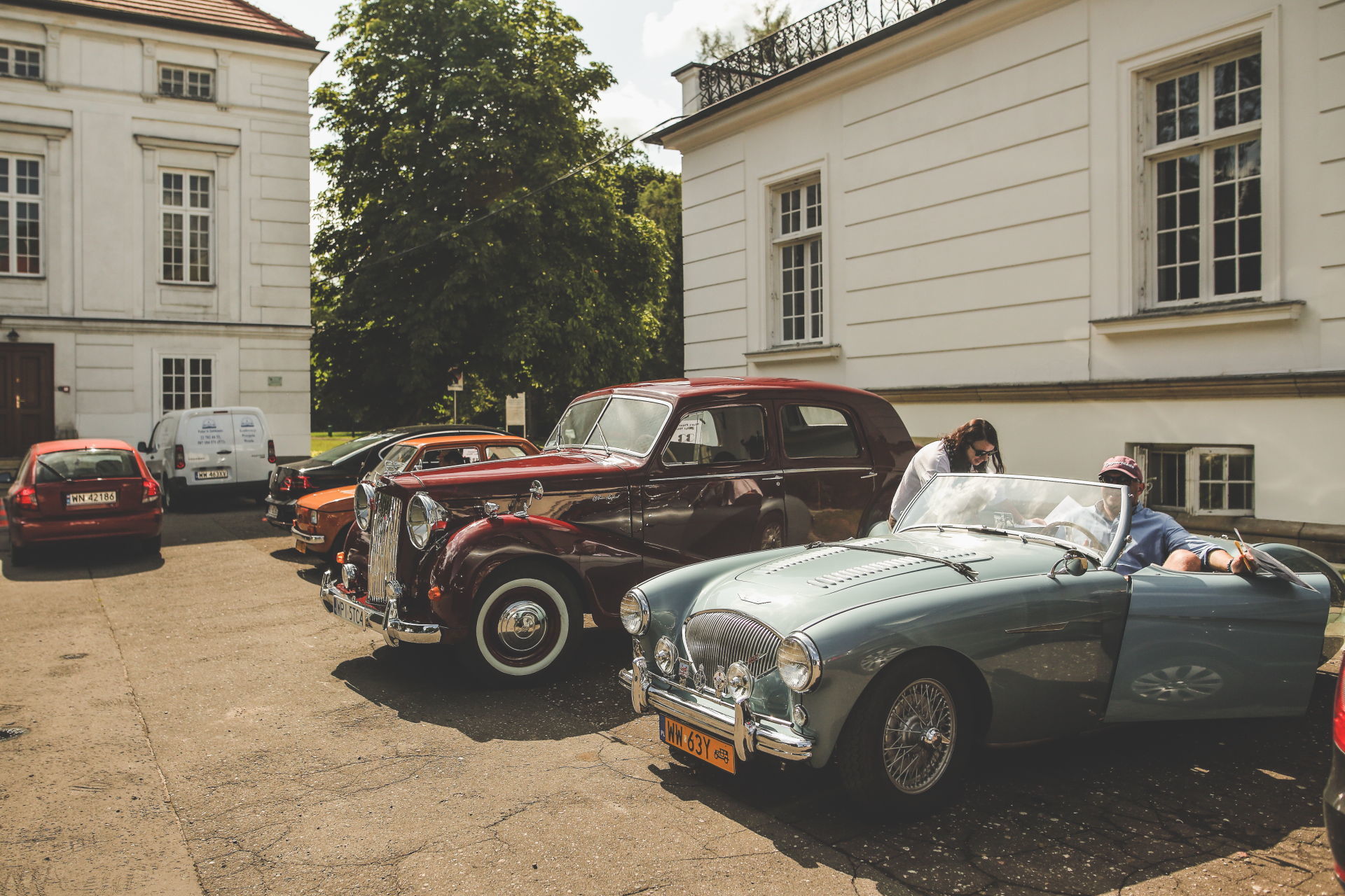 Na miejsce startu organizatorzy wybrali urokliwy Pałac w Jabłonnie, zamówili też wyborną pogodę – chapeu bas. Wprawdzie rajd rozpoczęła próba sportowa, która sprawiła nam pewne problemy – tam gdzie inni skręcali „na raz”, my musieliśmy na osiem razy – ale humory nam dopisywały. Mimo, że pasażerowie wcale nie korzystali z barku limuzyny.