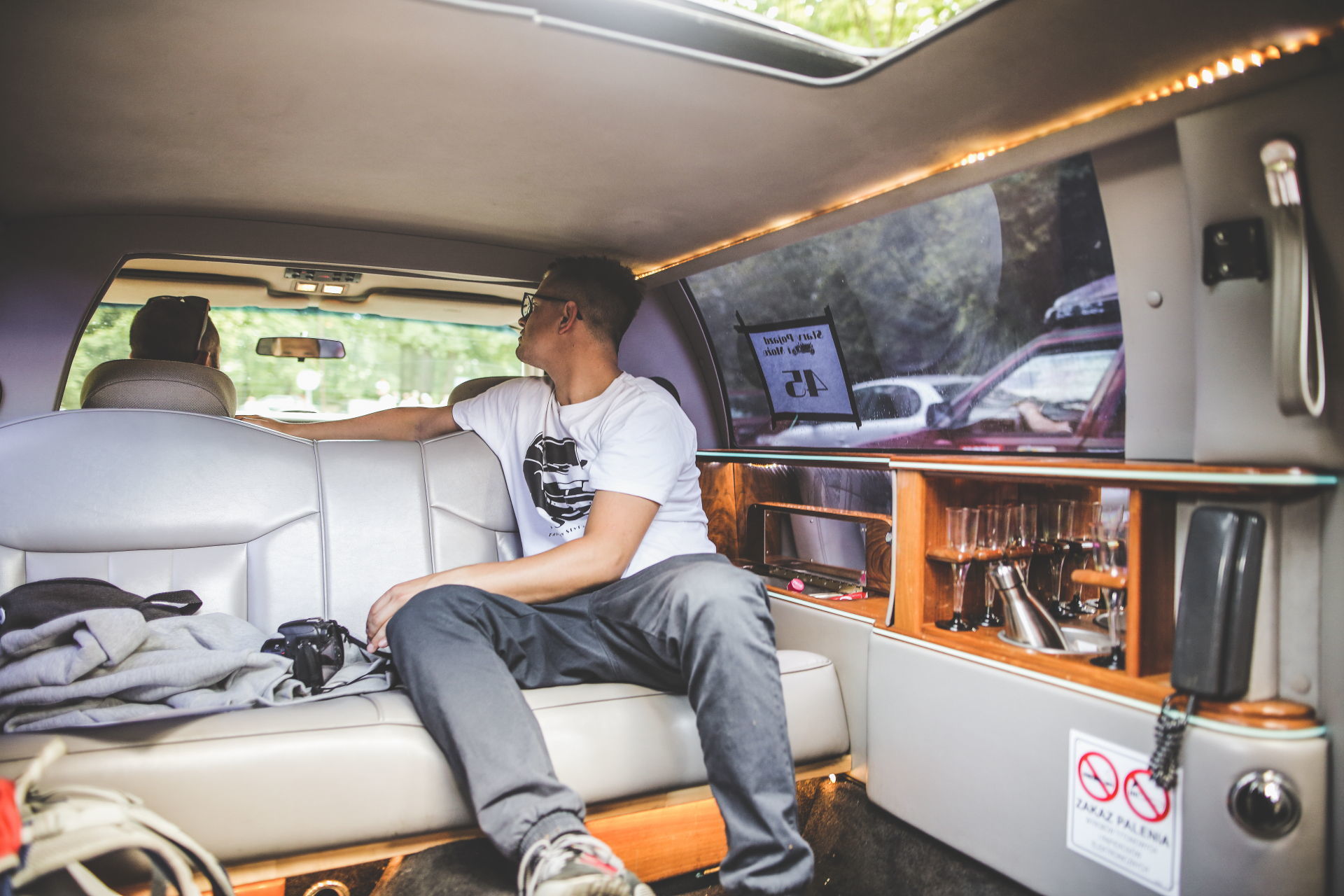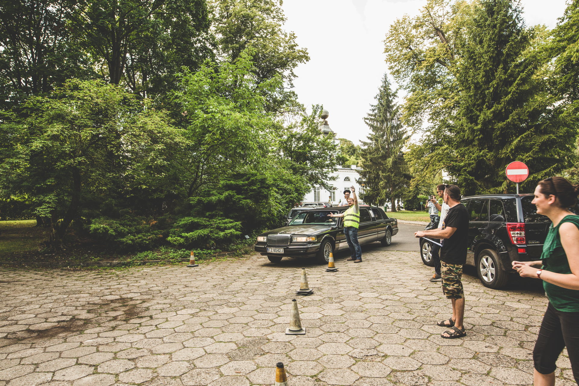 Jazda przez prowincję obciachową limuzyną wywołuje u mijanych jednoznaczne skojarzenia – ślub, panieński lub przaśny wyjazd na pierwszą komunię świętą. Była to jednak niedziela, więc ślub (przynajmniej kościelny) odpadał, pierwszych komunii w sierpniu też już raczej nie ma (nie jestem pewien, proszę wybaczyć ewentualną niewiedzę). Więc mijani rolnicy liczyli na wychylające się przez szyberdach piękne dziewczęta bez górnej części garderoby, za to z kieliszkami w ręku. Niestety dla rolników wychylał się czasami jedynie nasz pilot, Wojciech. Było to też niezbędne na próbie sportowej, szofer Lincolna niestety widział niewiele.