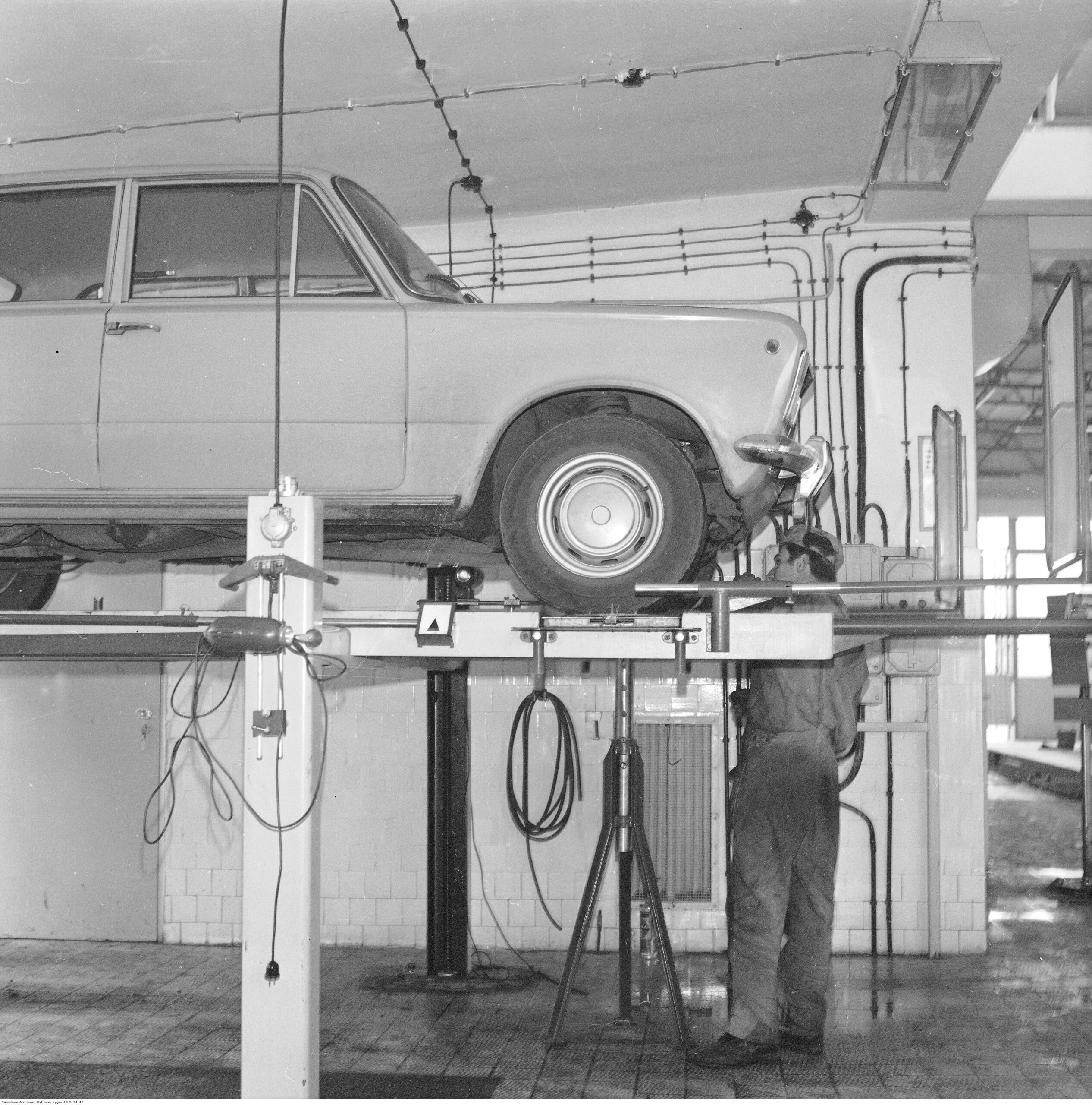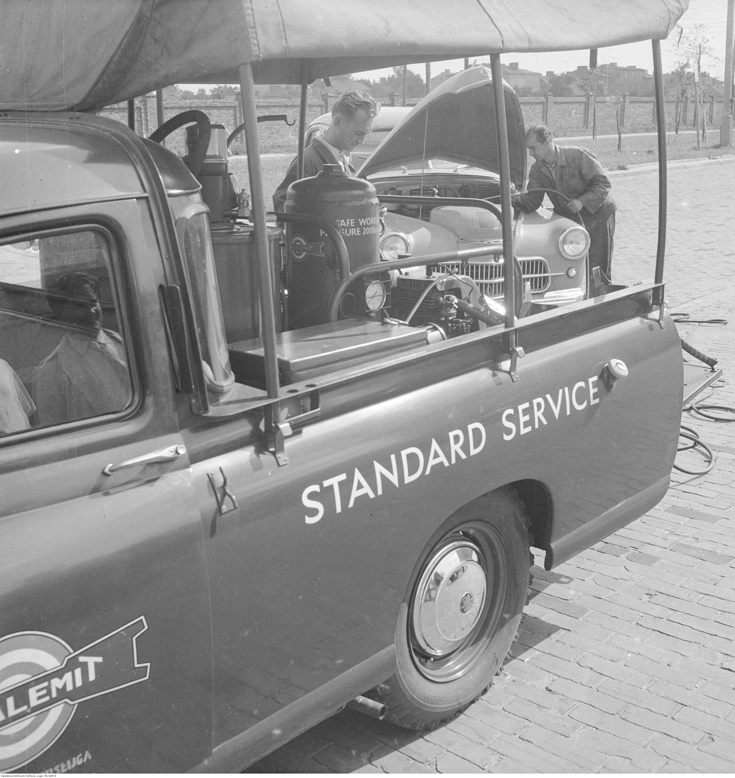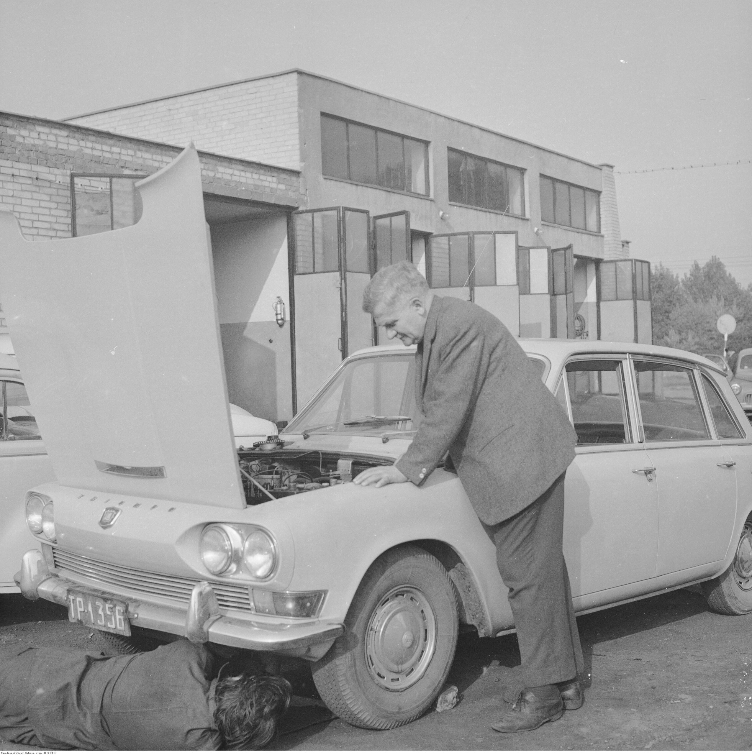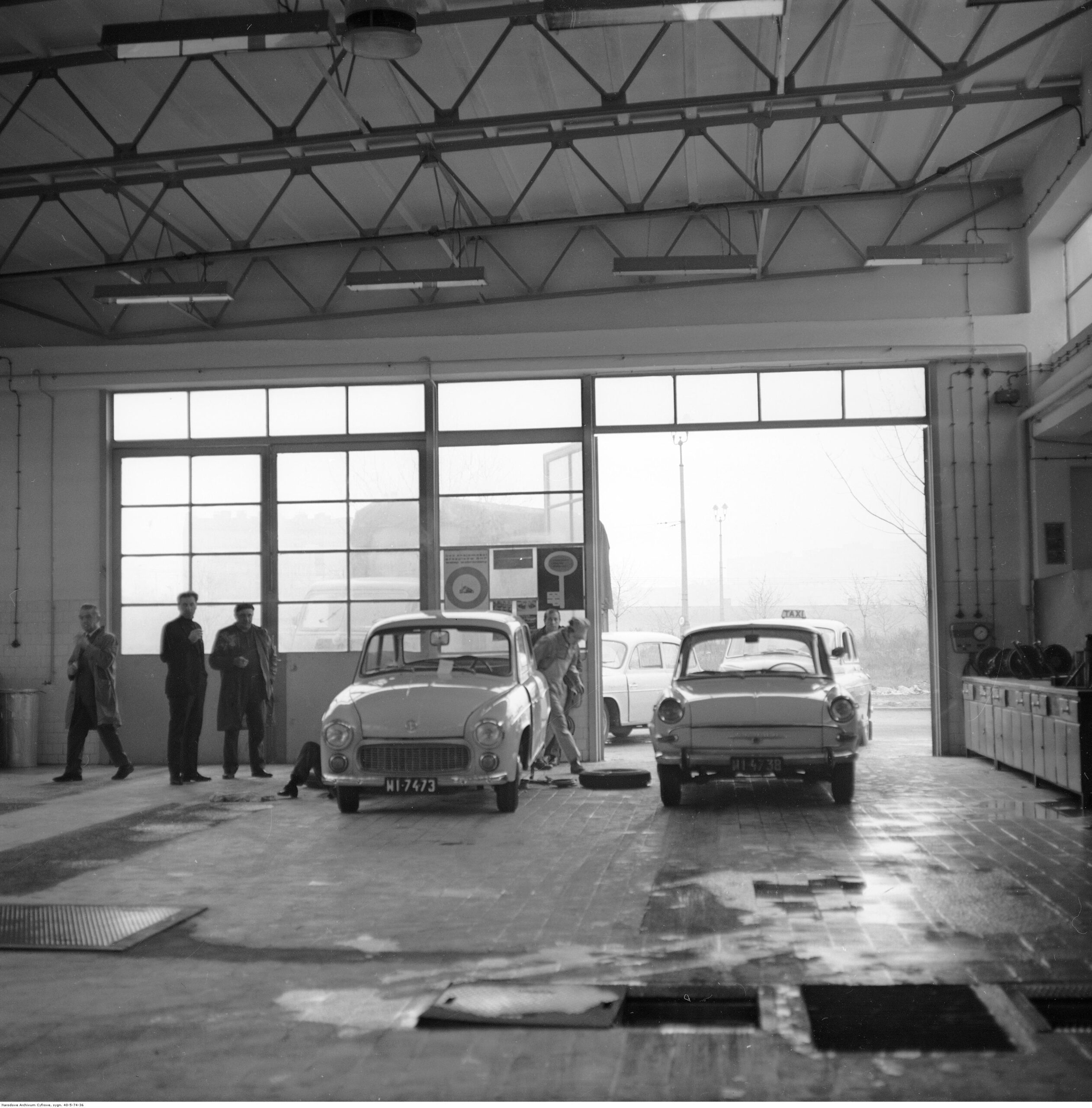 Na zdjęciach, które dla Was znaleźliśmy w Narodowym Archiwum Cyfrowym choć trochę można zobaczyć jak wyglądała praca mechanika w latach 60 i 70. Jedna z galerii ukazuje Stację TOS w Warszawie przy ulicy Omulewskiej 27. Warsztaty powstały w 1955 roku i początkowo nie cieszyły się zbyt dobrą opinią. W 1962 roku tygodnik Motor opisywał niebywałą przemianę jaka nastąpiła na Omulewskiej. Redaktor zalecał rozglądanie się za wycieraczkami aby oczyścić buty przed wejściem na sterylną halę napraw. Z ciekawostek – na jednym ze zdjęć widać rozbitą Simkę Aronde. To wóz Zbyszka Siemaszki, opisywany przez nas już dwukrotnie przy okazji cyklu Karambolage oraz naszej wyprawy „Śladami Siemaszki”. Budynki na Omulewskiej stoją nadal i nadal spełniają swoją rolę. Obecnie znajduje się w nich serwis samochodów oraz warszawskie biuro przedsiębiorstwa Sobiesława Zasady.