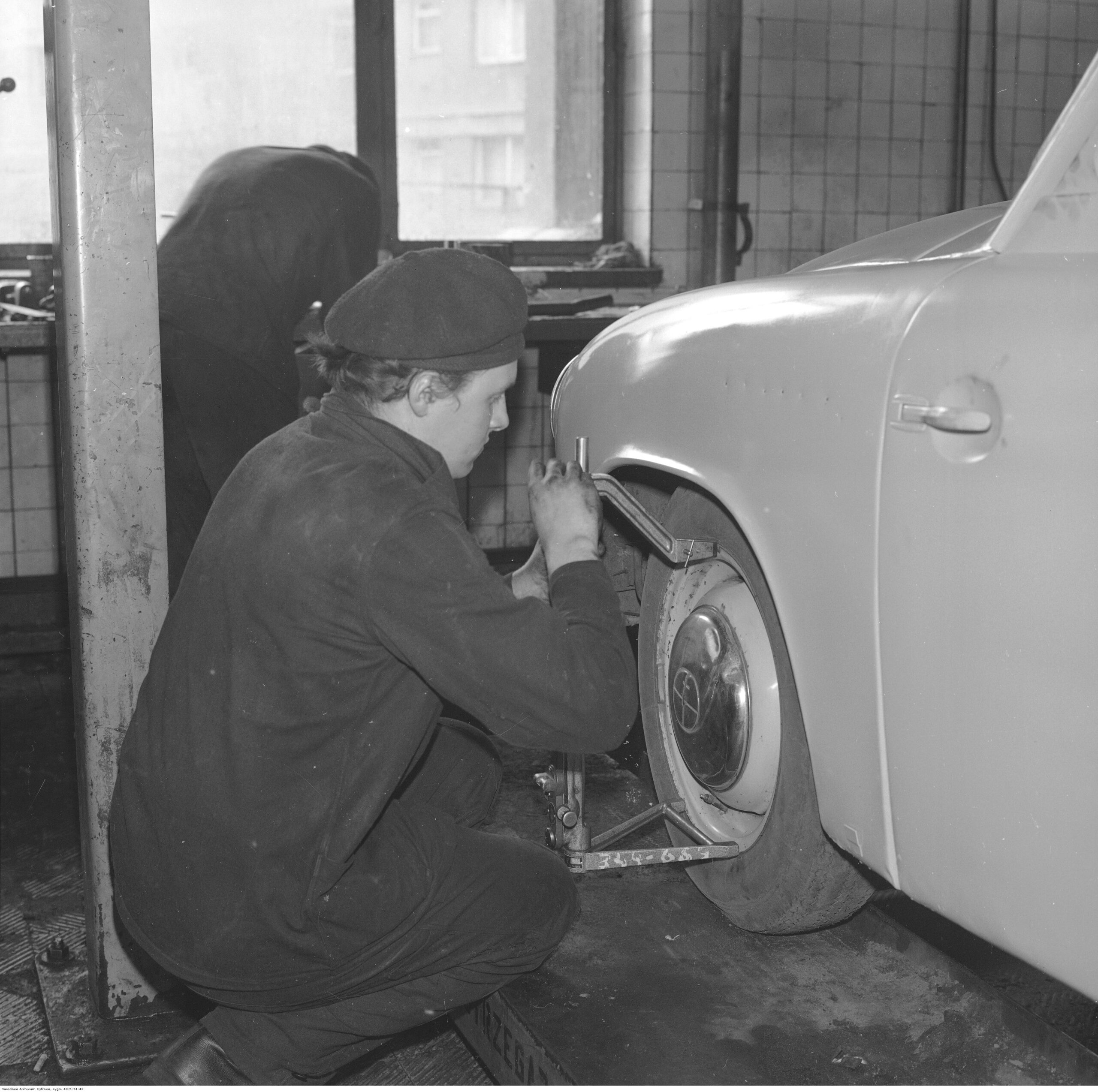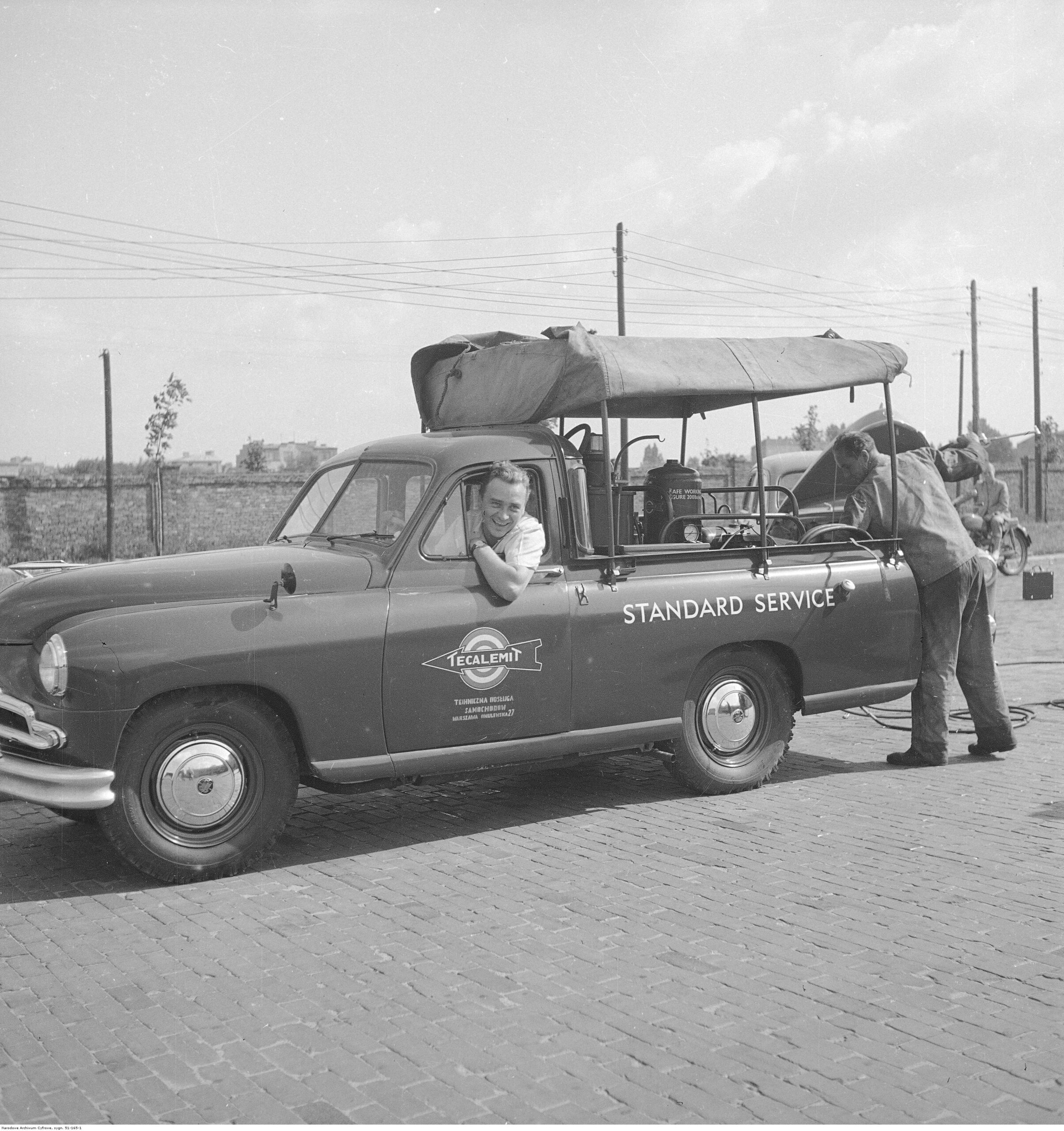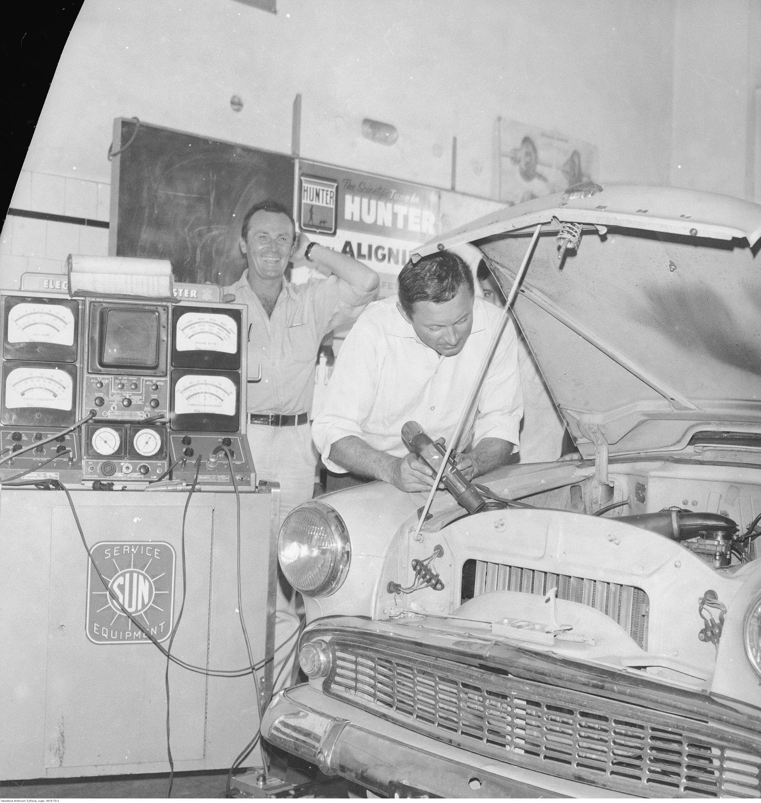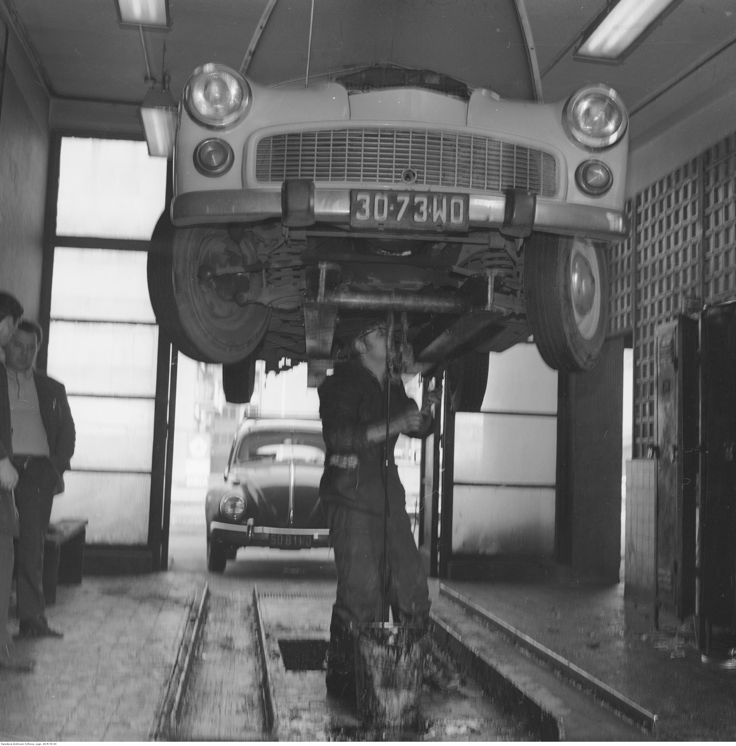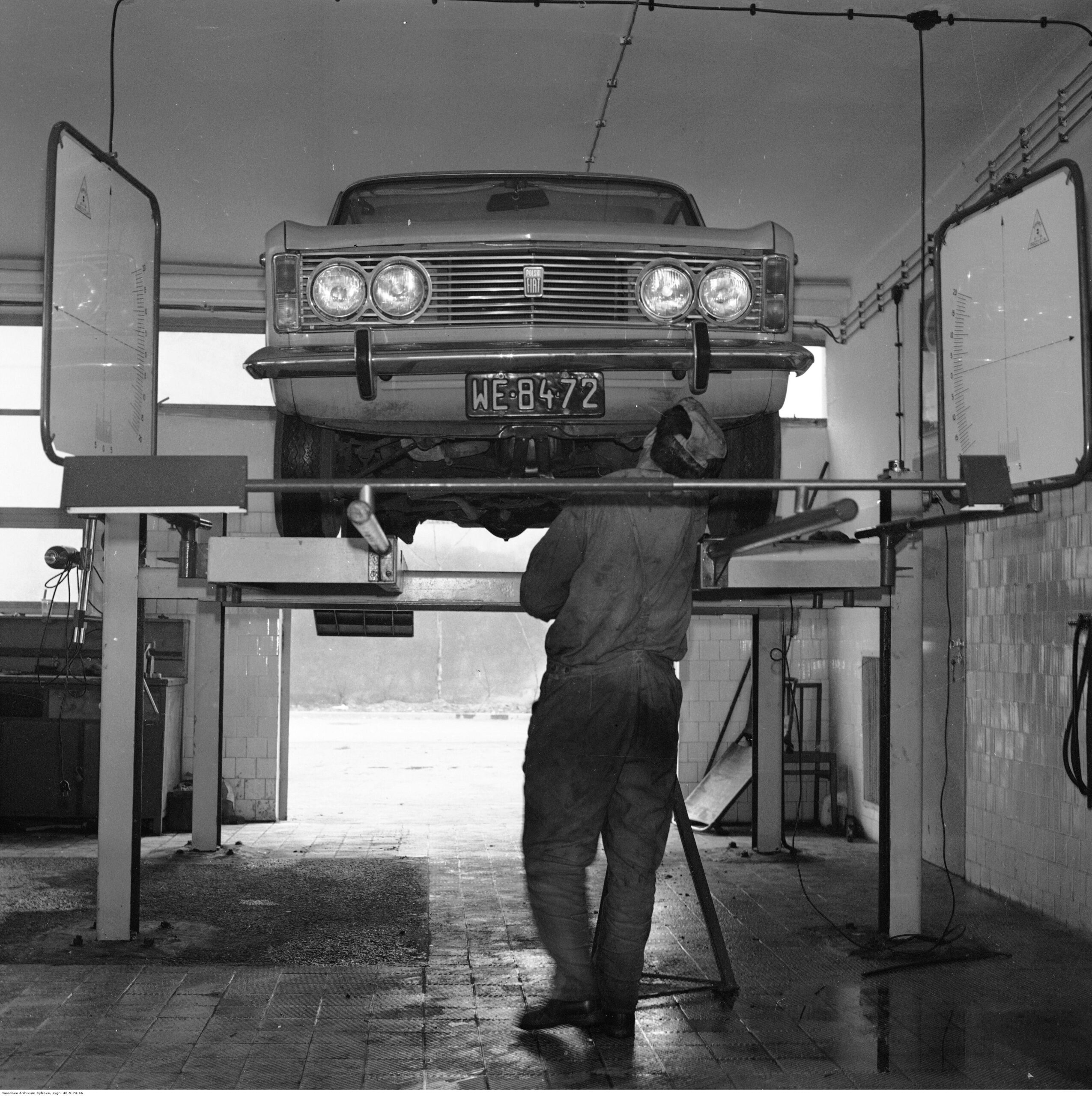 Na zdjęciach, które dla Was znaleźliśmy w Narodowym Archiwum Cyfrowym choć trochę można zobaczyć jak wyglądała praca mechanika w latach 60 i 70. Jedna z galerii ukazuje Stację TOS w Warszawie przy ulicy Omulewskiej 27. Warsztaty powstały w 1955 roku i początkowo nie cieszyły się zbyt dobrą opinią. W 1962 roku tygodnik Motor opisywał niebywałą przemianę jaka nastąpiła na Omulewskiej. Redaktor zalecał rozglądanie się za wycieraczkami aby oczyścić buty przed wejściem na sterylną halę napraw. Z ciekawostek – na jednym ze zdjęć widać rozbitą Simkę Aronde. To wóz Zbyszka Siemaszki, opisywany przez nas już dwukrotnie przy okazji cyklu Karambolage oraz naszej wyprawy „Śladami Siemaszki”. Budynki na Omulewskiej stoją nadal i nadal spełniają swoją rolę. Obecnie znajduje się w nich serwis samochodów oraz warszawskie biuro przedsiębiorstwa Sobiesława Zasady.
