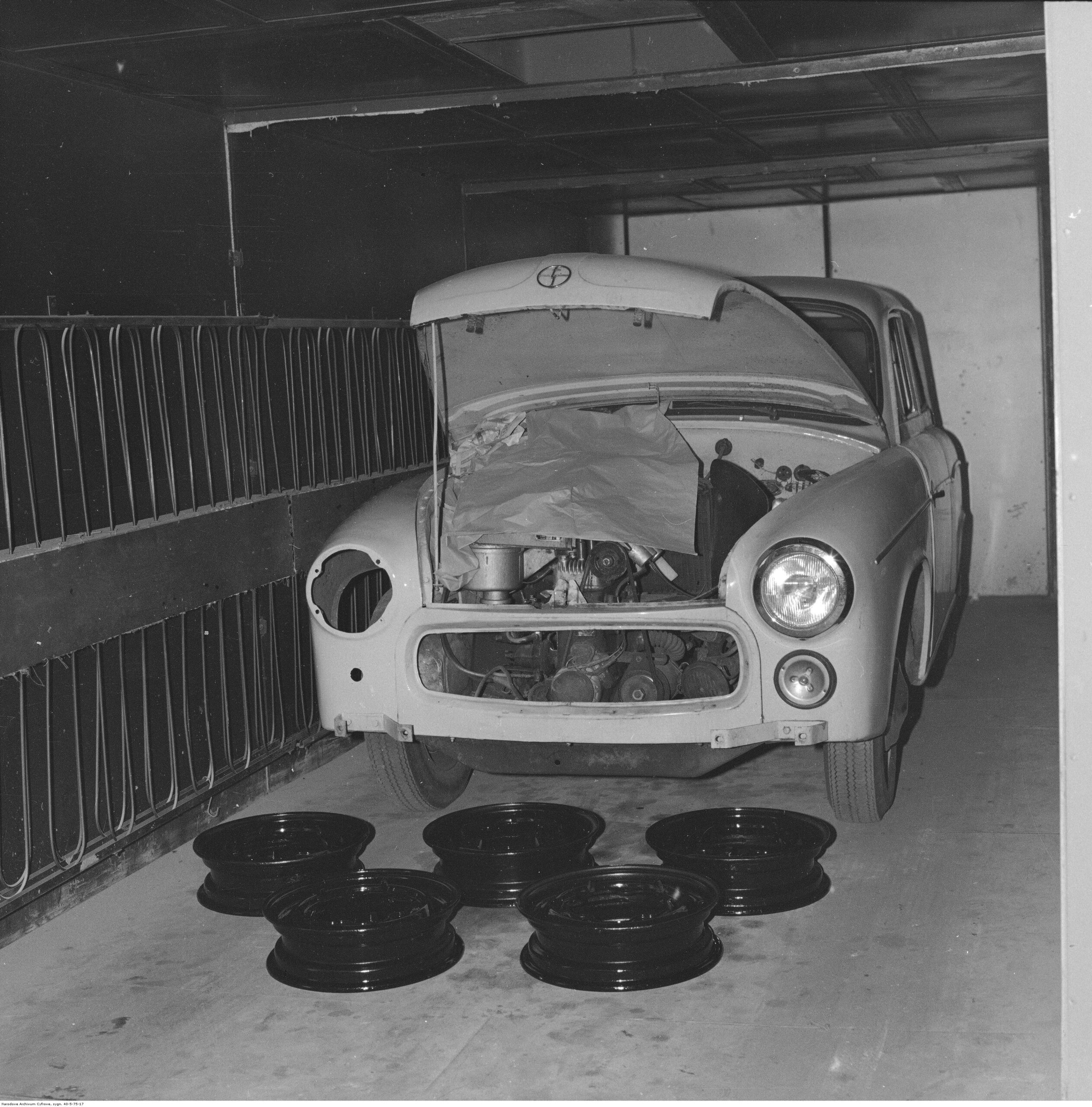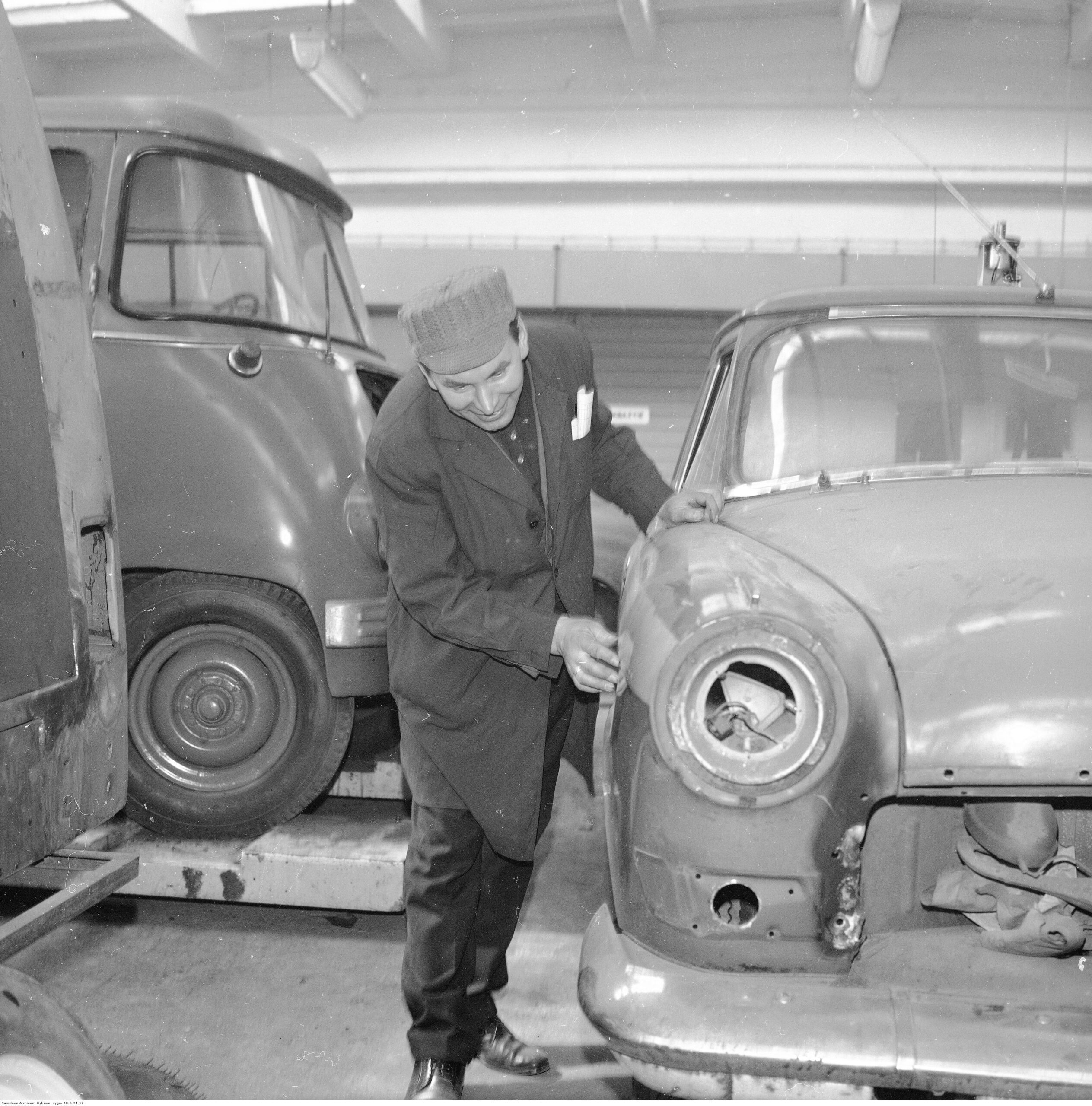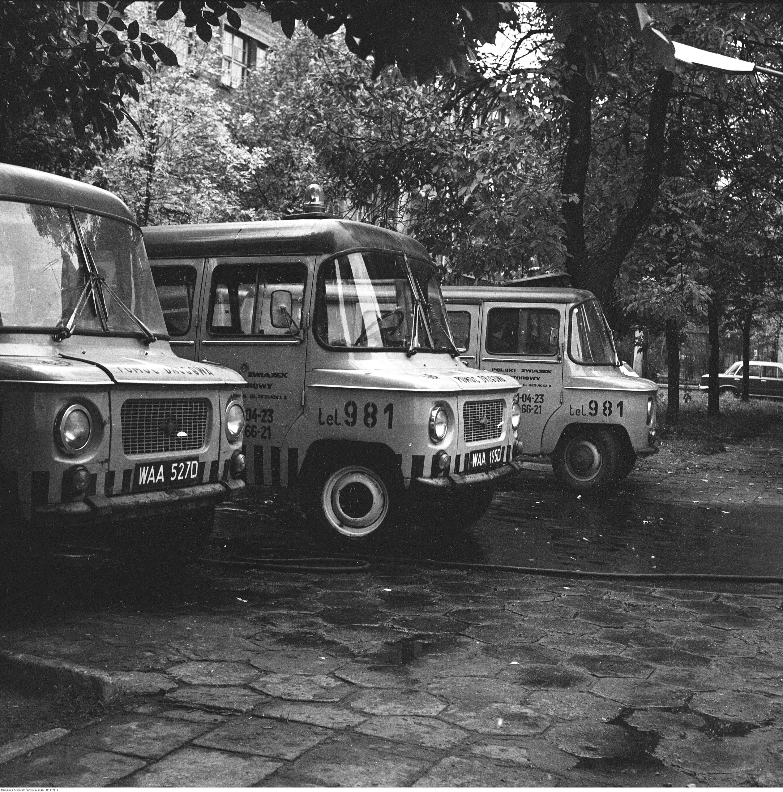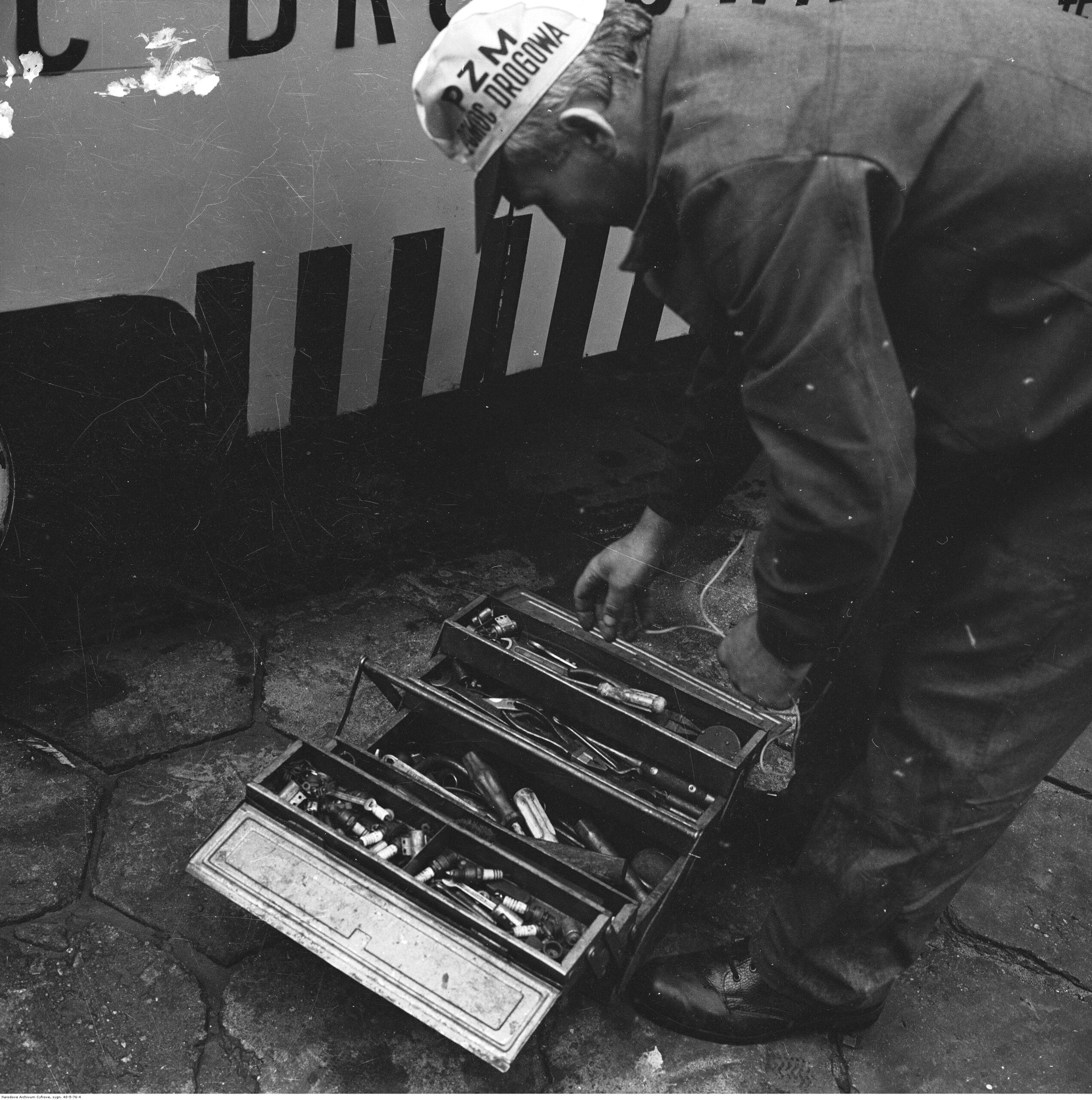 Na zdjęciach, które dla Was znaleźliśmy w Narodowym Archiwum Cyfrowym choć trochę można zobaczyć jak wyglądała praca mechanika w latach 60 i 70. Jedna z galerii ukazuje Stację TOS w Warszawie przy ulicy Omulewskiej 27. Warsztaty powstały w 1955 roku i początkowo nie cieszyły się zbyt dobrą opinią. W 1962 roku tygodnik Motor opisywał niebywałą przemianę jaka nastąpiła na Omulewskiej. Redaktor zalecał rozglądanie się za wycieraczkami aby oczyścić buty przed wejściem na sterylną halę napraw. Z ciekawostek – na jednym ze zdjęć widać rozbitą Simkę Aronde. To wóz Zbyszka Siemaszki, opisywany przez nas już dwukrotnie przy okazji cyklu Karambolage oraz naszej wyprawy „Śladami Siemaszki”. Budynki na Omulewskiej stoją nadal i nadal spełniają swoją rolę. Obecnie znajduje się w nich serwis samochodów oraz warszawskie biuro przedsiębiorstwa Sobiesława Zasady.