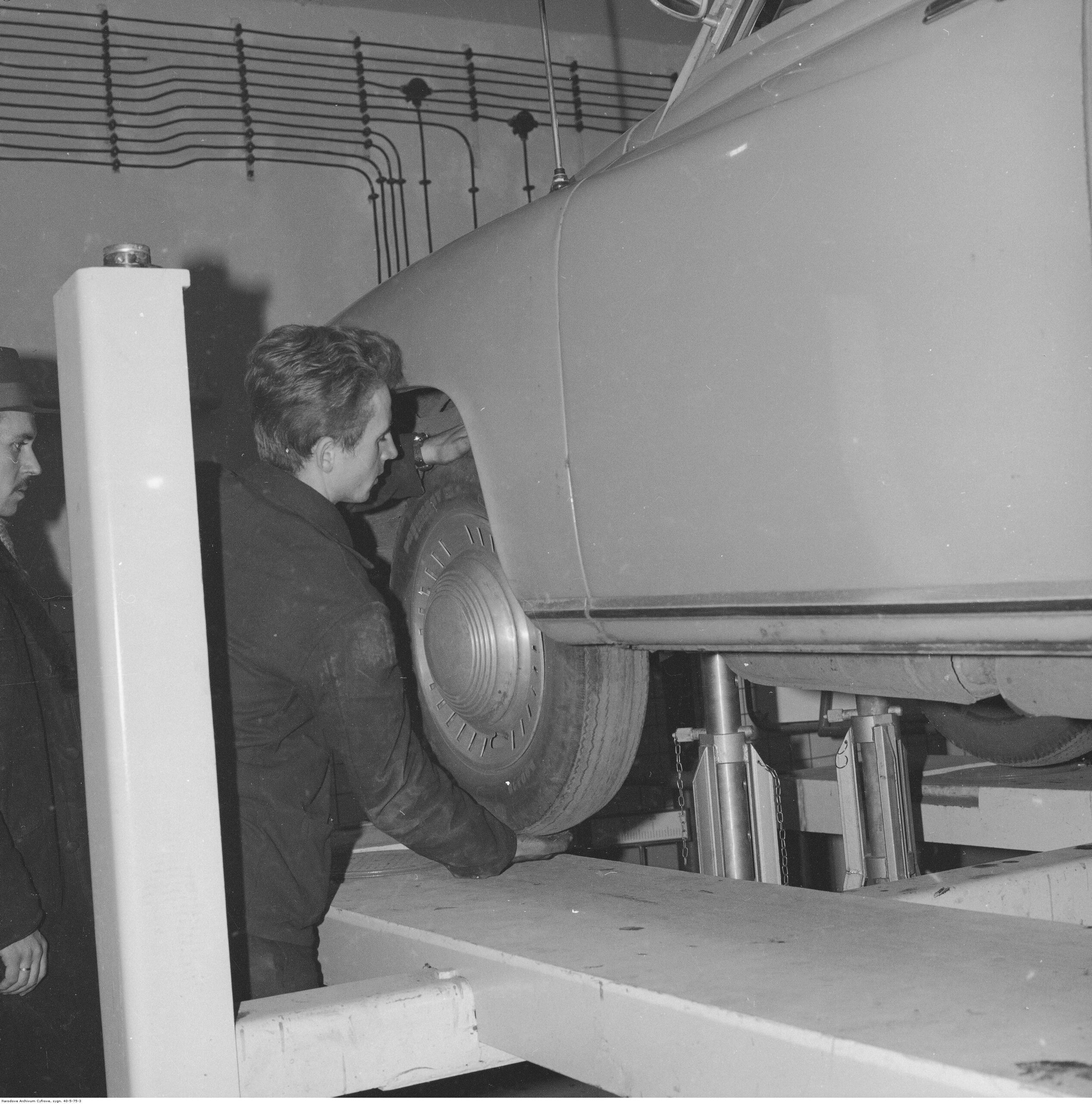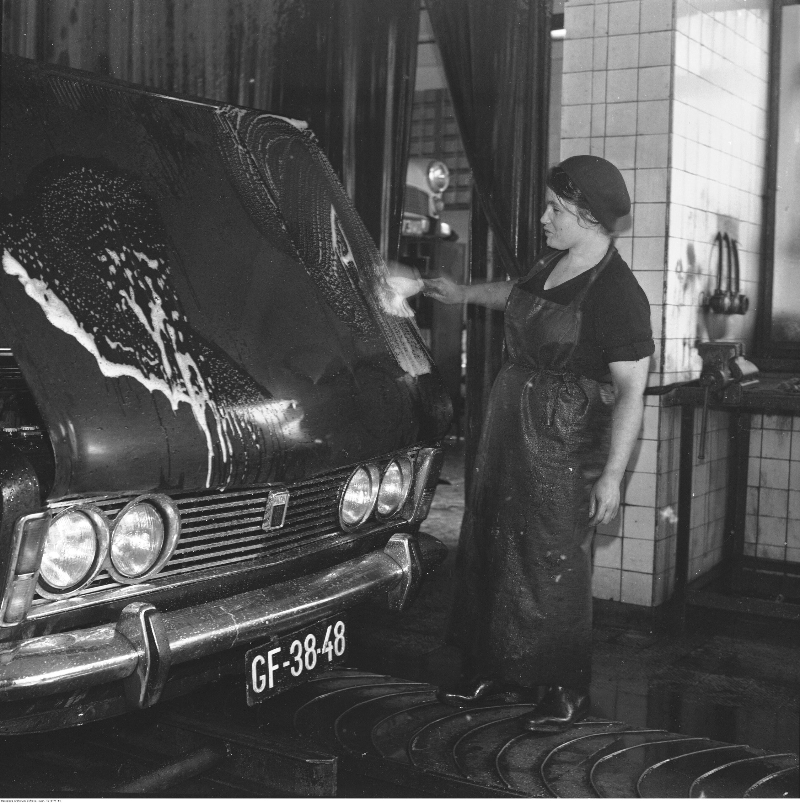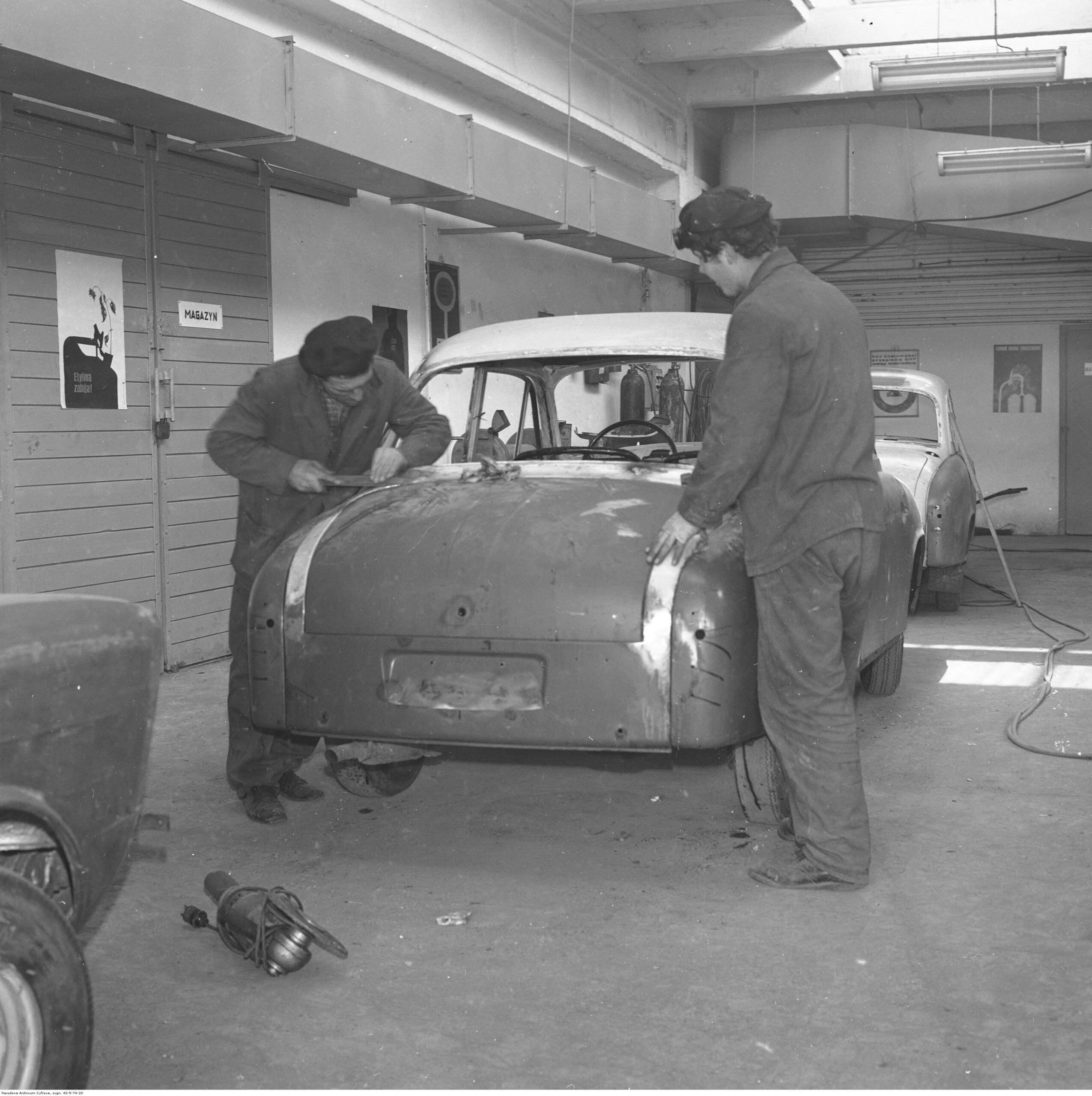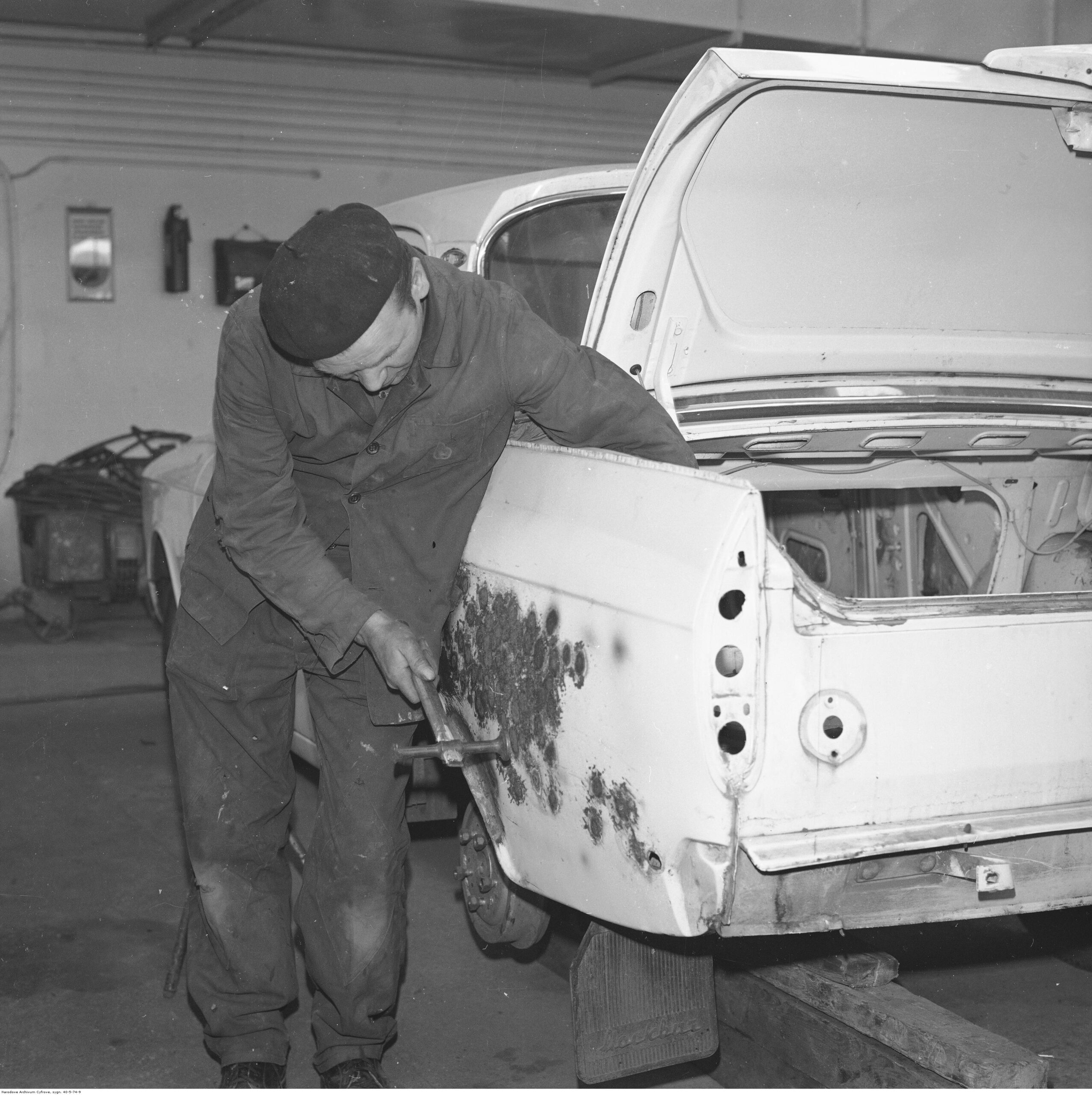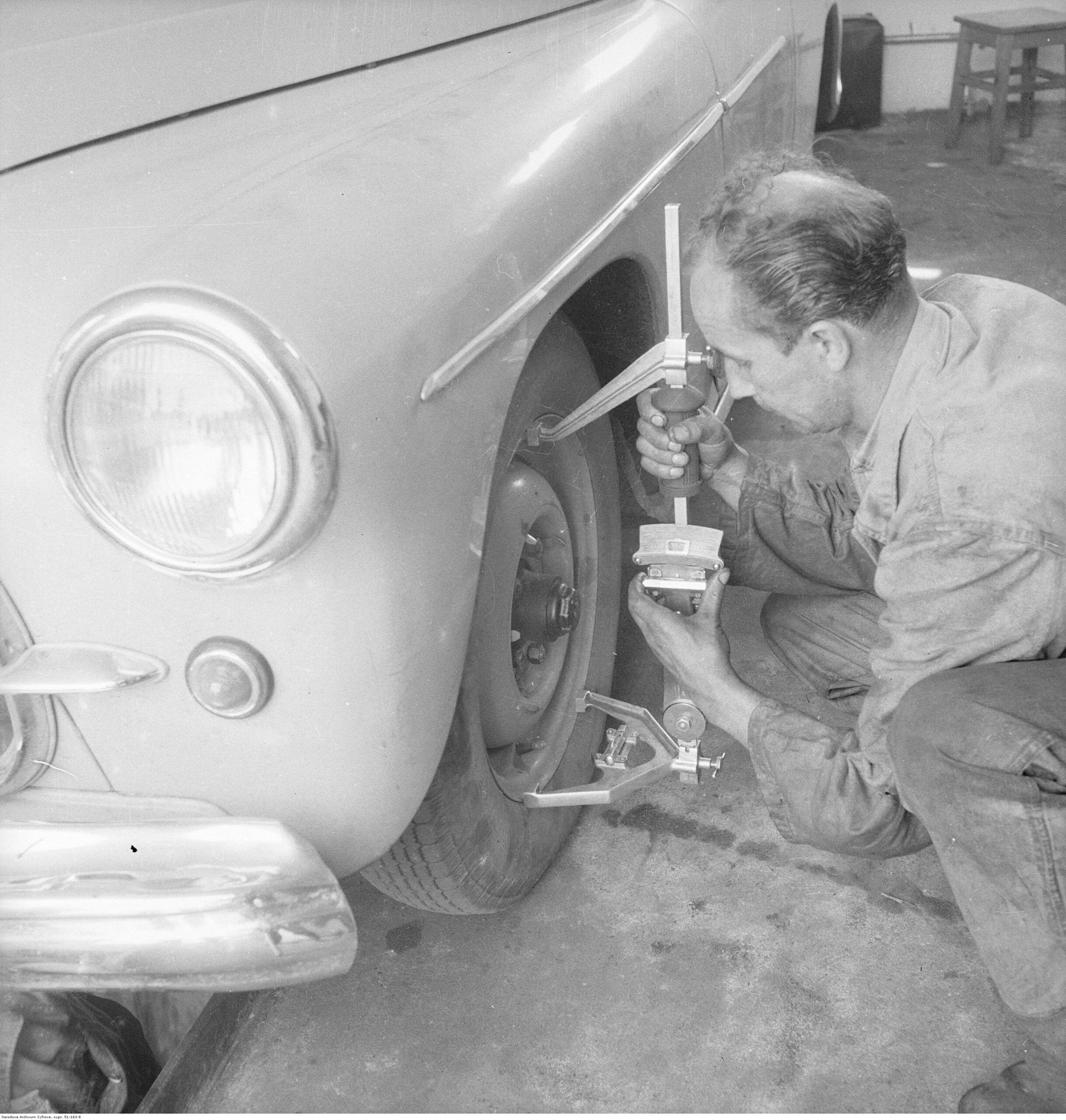 Na zdjęciach, które dla Was znaleźliśmy w Narodowym Archiwum Cyfrowym choć trochę można zobaczyć jak wyglądała praca mechanika w latach 60 i 70. Jedna z galerii ukazuje Stację TOS w Warszawie przy ulicy Omulewskiej 27. Warsztaty powstały w 1955 roku i początkowo nie cieszyły się zbyt dobrą opinią. W 1962 roku tygodnik Motor opisywał niebywałą przemianę jaka nastąpiła na Omulewskiej. Redaktor zalecał rozglądanie się za wycieraczkami aby oczyścić buty przed wejściem na sterylną halę napraw. Z ciekawostek – na jednym ze zdjęć widać rozbitą Simkę Aronde. To wóz Zbyszka Siemaszki, opisywany przez nas już dwukrotnie przy okazji cyklu Karambolage oraz naszej wyprawy „Śladami Siemaszki”. Budynki na Omulewskiej stoją nadal i nadal spełniają swoją rolę. Obecnie znajduje się w nich serwis samochodów oraz warszawskie biuro przedsiębiorstwa Sobiesława Zasady.