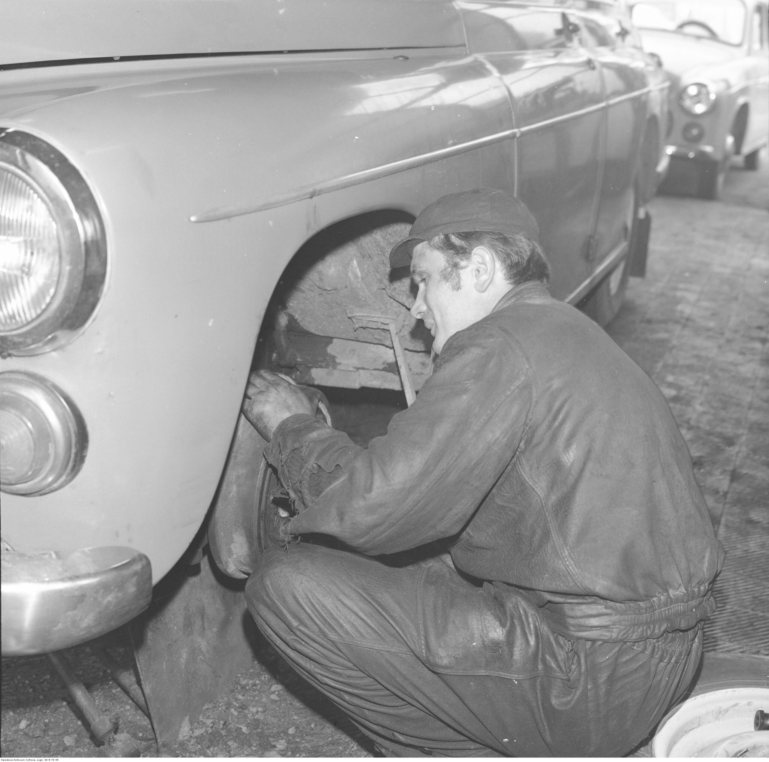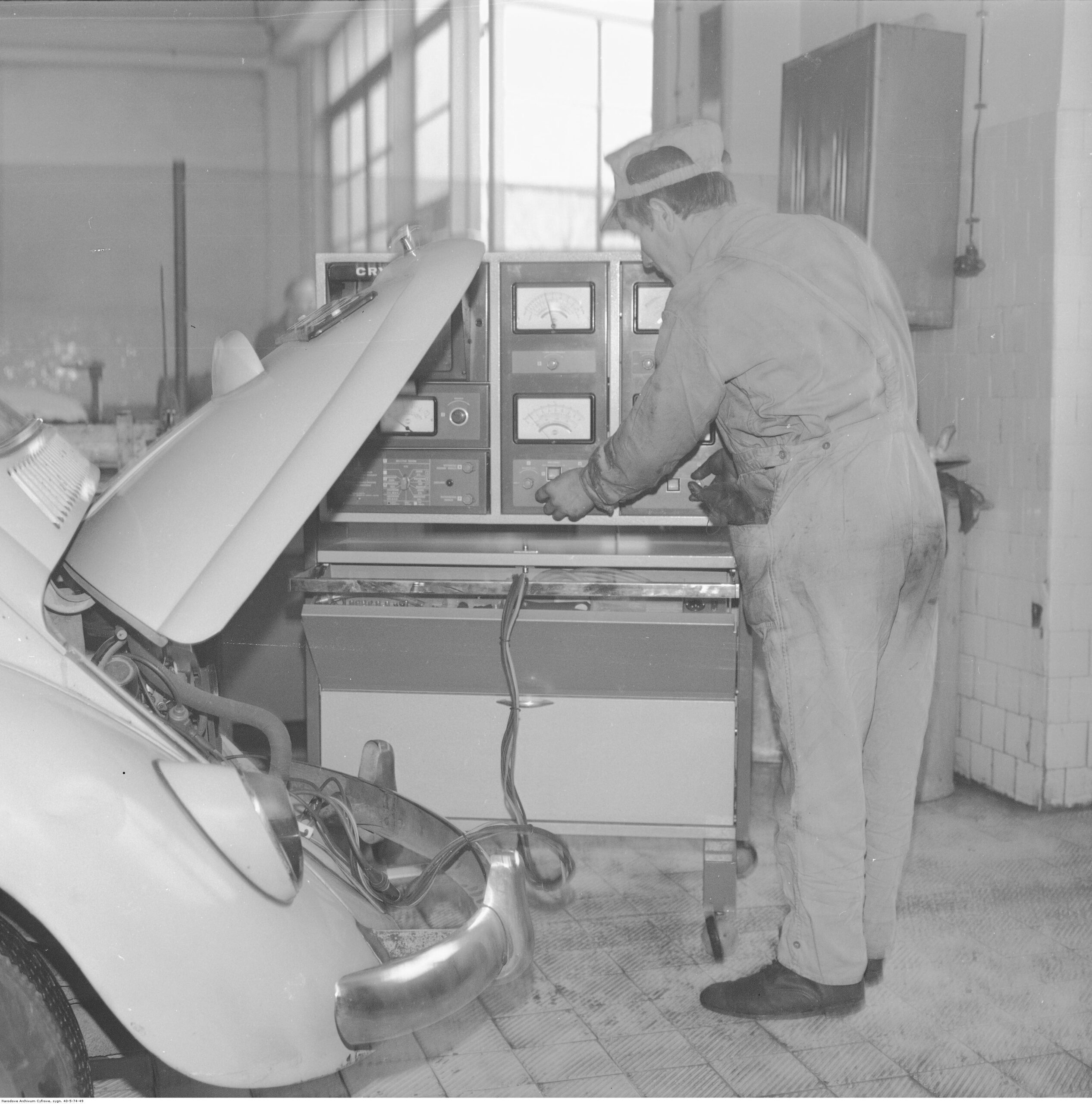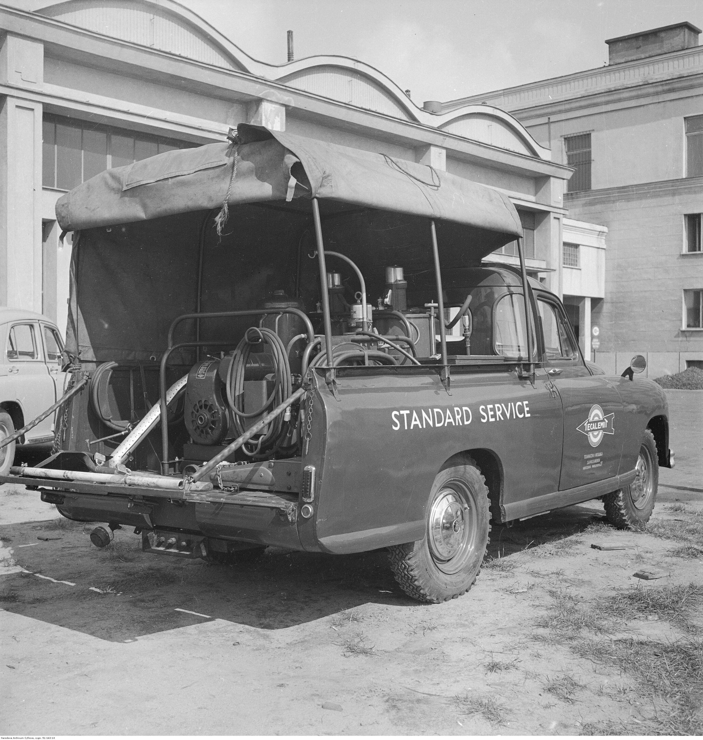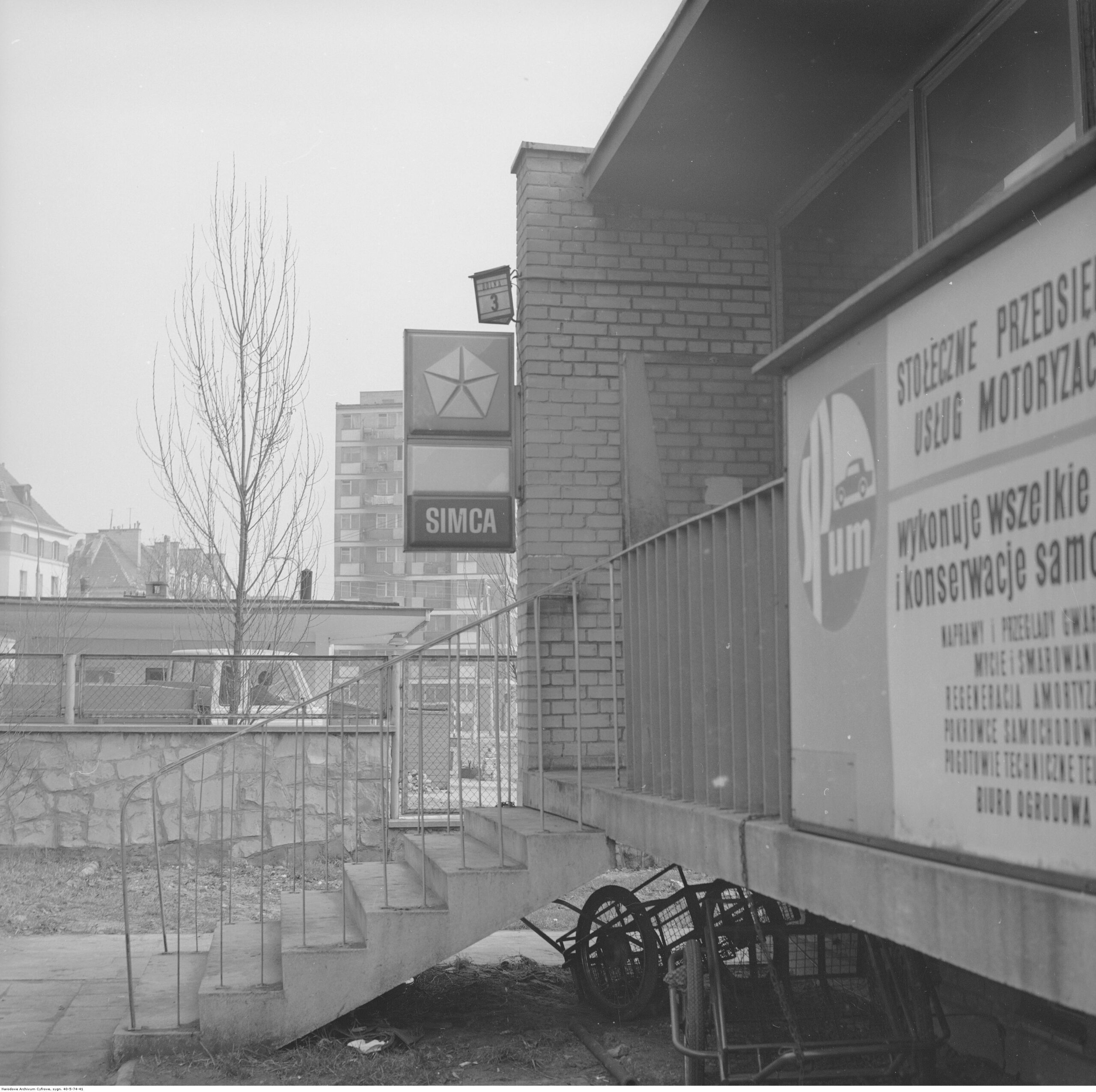Na zdjęciach, które dla Was znaleźliśmy w Narodowym Archiwum Cyfrowym choć trochę można zobaczyć jak wyglądała praca mechanika w latach 60 i 70. Jedna z galerii ukazuje Stację TOS w Warszawie przy ulicy Omulewskiej 27. Warsztaty powstały w 1955 roku i początkowo nie cieszyły się zbyt dobrą opinią. W 1962 roku tygodnik Motor opisywał niebywałą przemianę jaka nastąpiła na Omulewskiej. Redaktor zalecał rozglądanie się za wycieraczkami aby oczyścić buty przed wejściem na sterylną halę napraw. Z ciekawostek – na jednym ze zdjęć widać rozbitą Simkę Aronde. To wóz Zbyszka Siemaszki, opisywany przez nas już dwukrotnie przy okazji cyklu Karambolage oraz naszej wyprawy „Śladami Siemaszki”. Budynki na Omulewskiej stoją nadal i nadal spełniają swoją rolę. Obecnie znajduje się w nich serwis samochodów oraz warszawskie biuro przedsiębiorstwa Sobiesława Zasady.