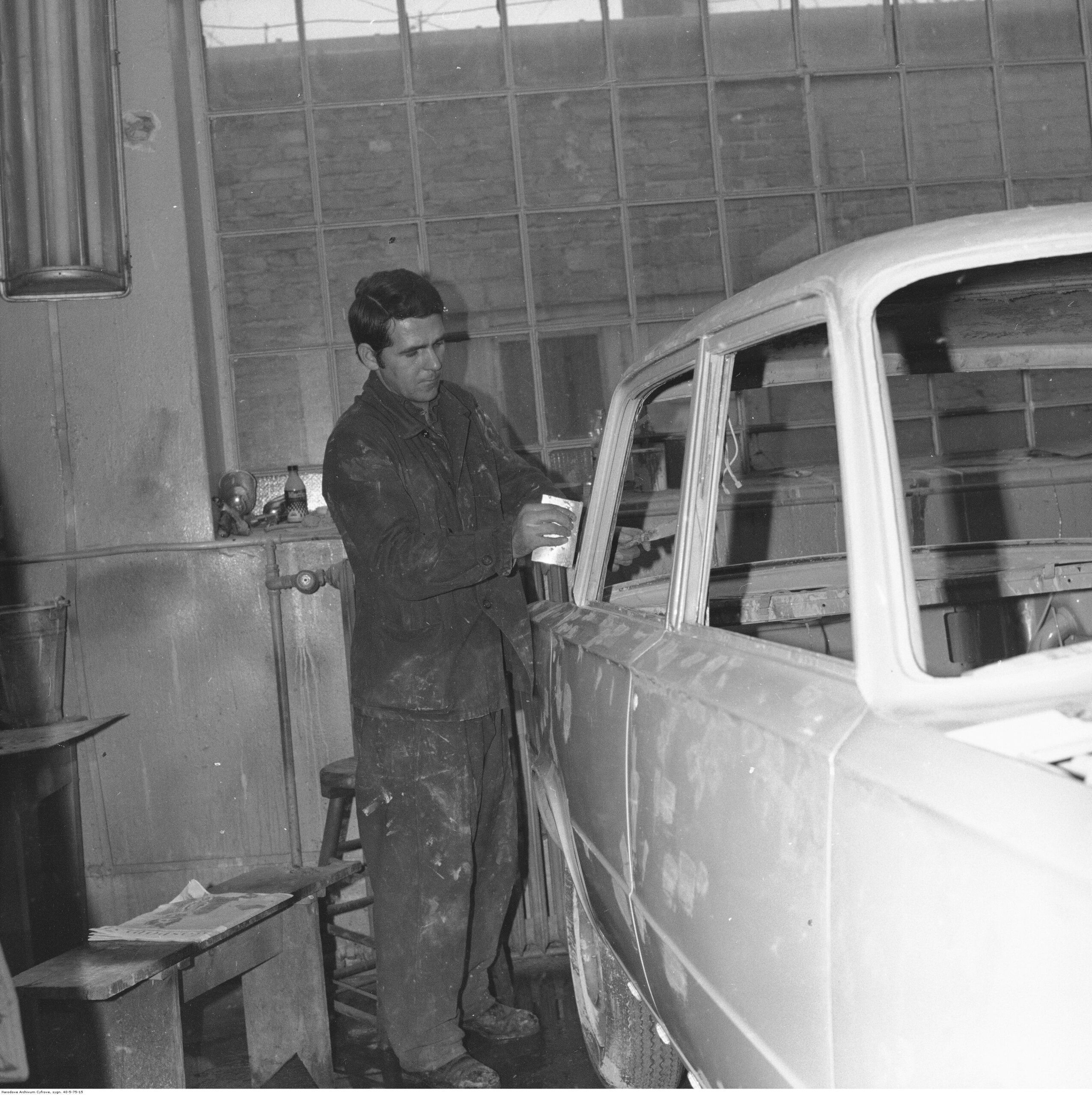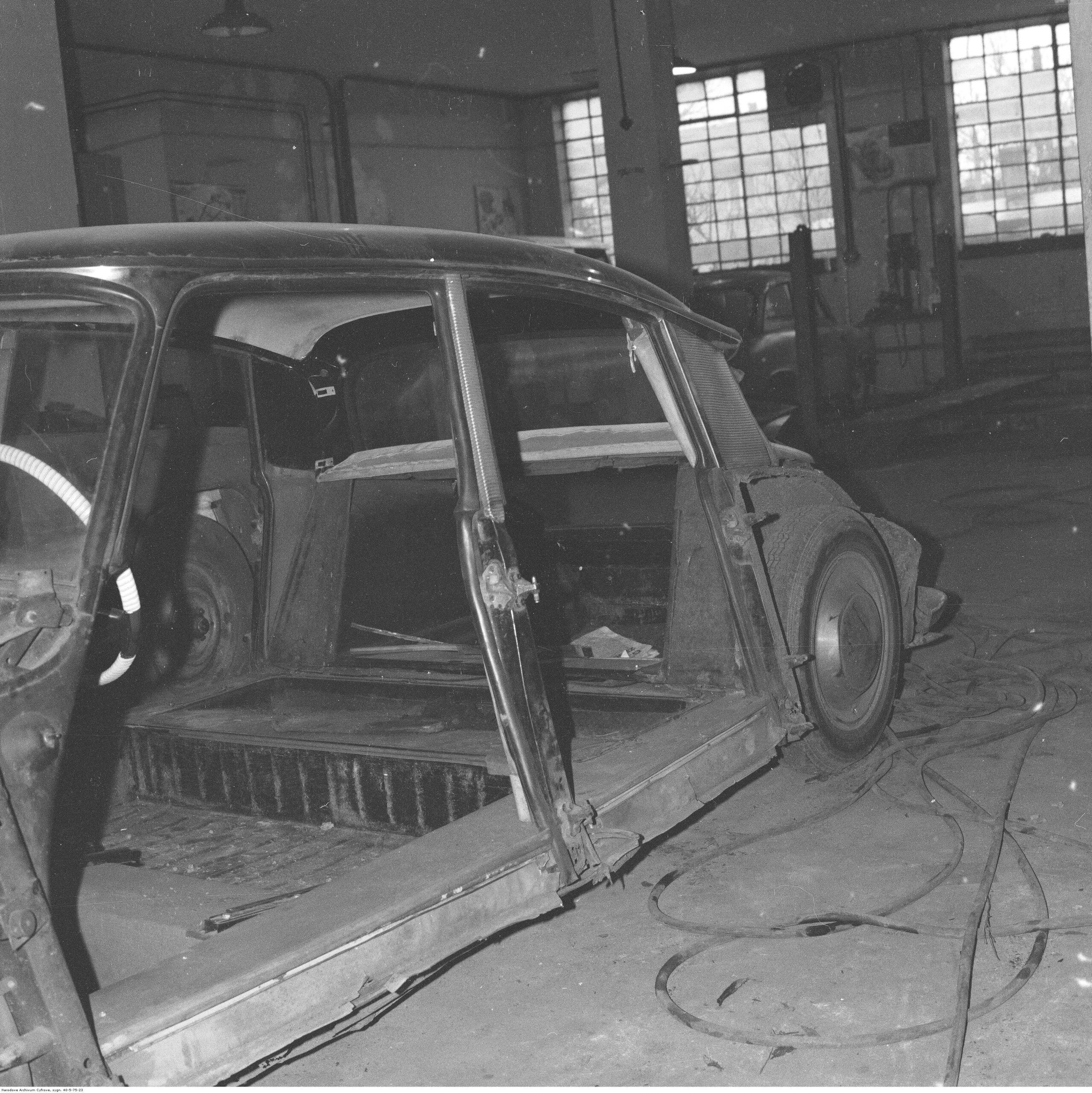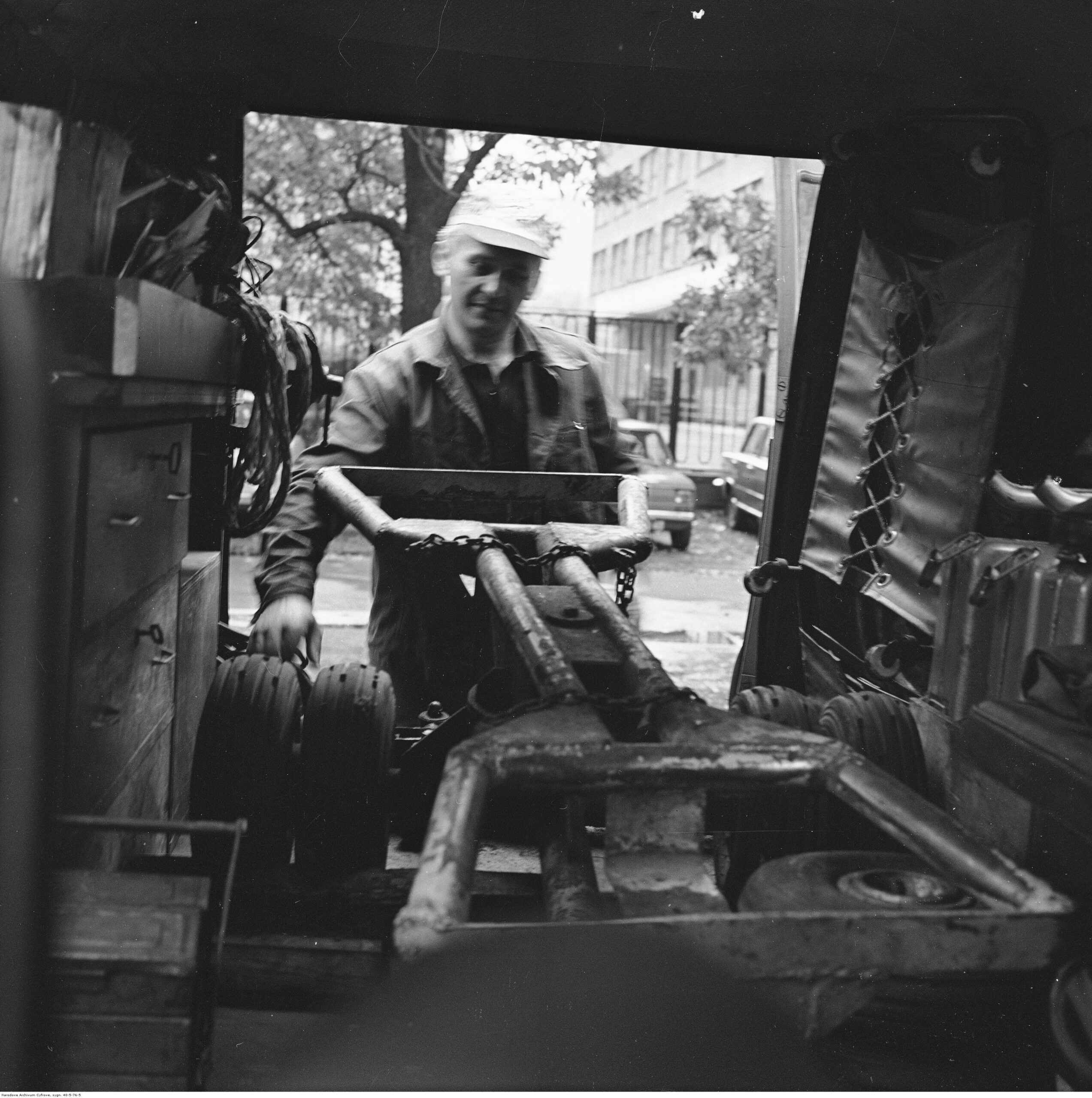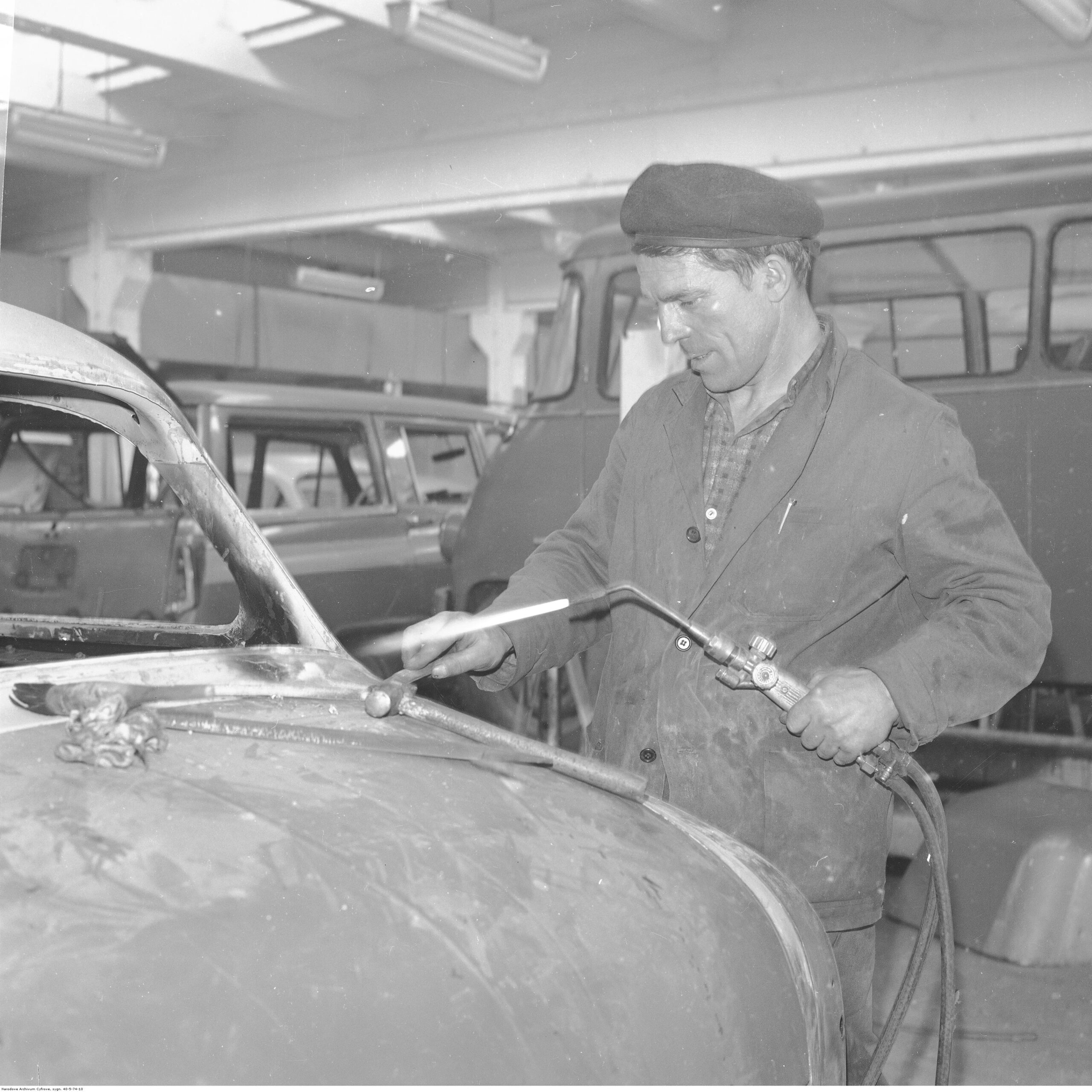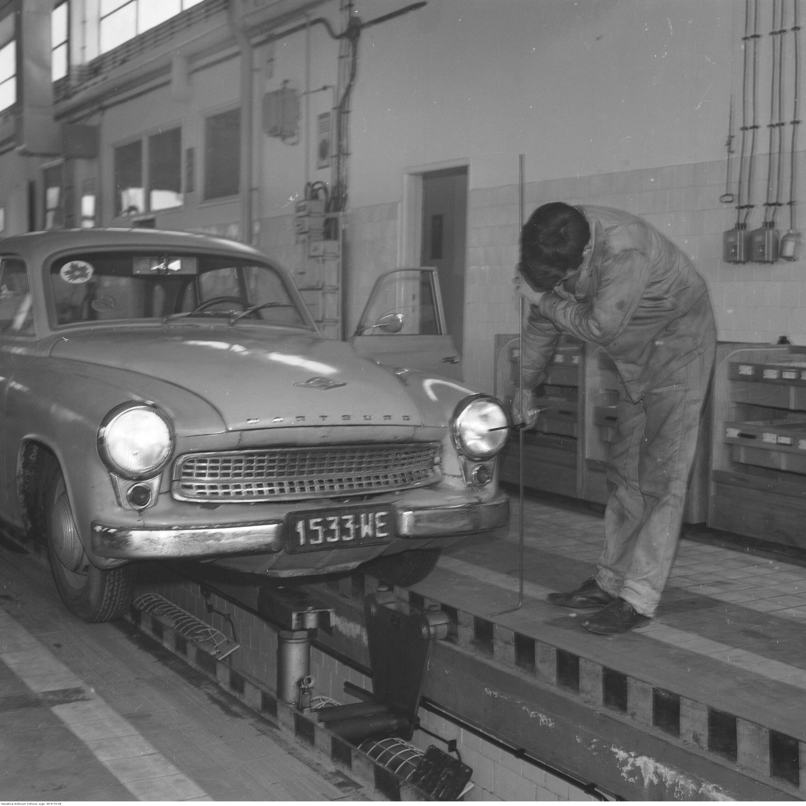 Na zdjęciach, które dla Was znaleźliśmy w Narodowym Archiwum Cyfrowym choć trochę można zobaczyć jak wyglądała praca mechanika w latach 60 i 70. Jedna z galerii ukazuje Stację TOS w Warszawie przy ulicy Omulewskiej 27. Warsztaty powstały w 1955 roku i początkowo nie cieszyły się zbyt dobrą opinią. W 1962 roku tygodnik Motor opisywał niebywałą przemianę jaka nastąpiła na Omulewskiej. Redaktor zalecał rozglądanie się za wycieraczkami aby oczyścić buty przed wejściem na sterylną halę napraw. Z ciekawostek – na jednym ze zdjęć widać rozbitą Simkę Aronde. To wóz Zbyszka Siemaszki, opisywany przez nas już dwukrotnie przy okazji cyklu Karambolage oraz naszej wyprawy „Śladami Siemaszki”. Budynki na Omulewskiej stoją nadal i nadal spełniają swoją rolę. Obecnie znajduje się w nich serwis samochodów oraz warszawskie biuro przedsiębiorstwa Sobiesława Zasady.