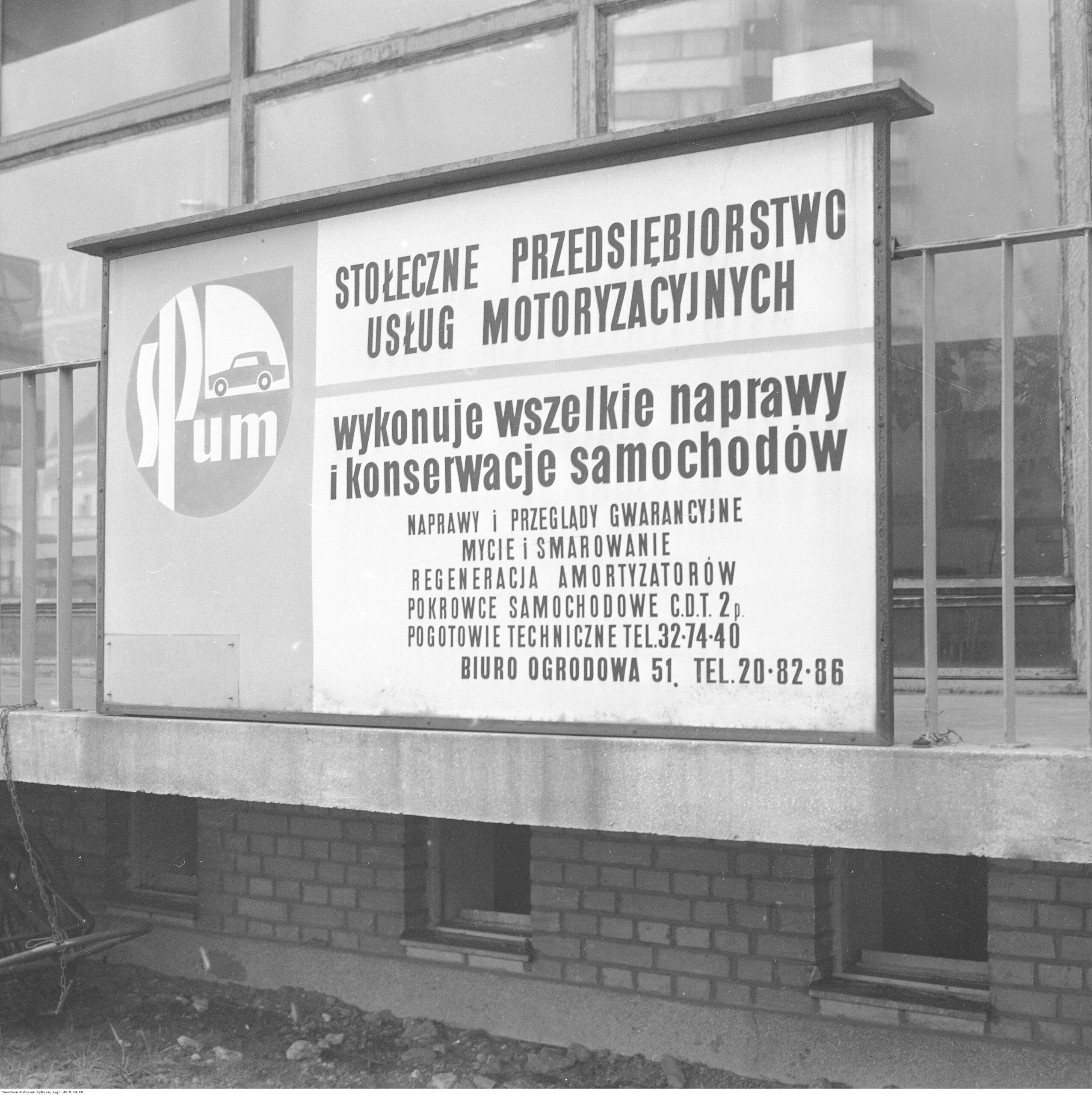 Drugi znaczny pakiet zdjęć pochodzi z różnych obiektów tzw SPUMu. To skrót od Stołecznego Przedsiębiorstwa Usług Motoryzacyjnych powstałego niedługo po wojnie. Z biegiem lat SPUM stawał się coraz większy i ofertował niemal cały wachlarz usług motoryzacyjnych. Od mycia i smarowania, przez naprawy bieżące i przeglądy aż po remonty i naprawy blacharsko lakiernicze. Oprócz tego SPUM zarządzał Stacjami Kontroli Pojazdów Warszawie. Ich niewielka ilość powodowała swego czasu potworne kolejki (obowiązywała wtedy rejonizacja). Kłopoty z jedną ze stacji Andrzeja Rosiewicza opisał w felietonie Jerzy Iwaszkiewicz. Warszawa zlikwidowała SPUM w 1993 roku. Cześć obiektów zniknęła, część ocalała i dalej pełni swoją rolę (Wolska 225). Inne z kolei kontynuują tradycje SPUMu choć w innych miejscu – wspomniany powyżej MOTOS.