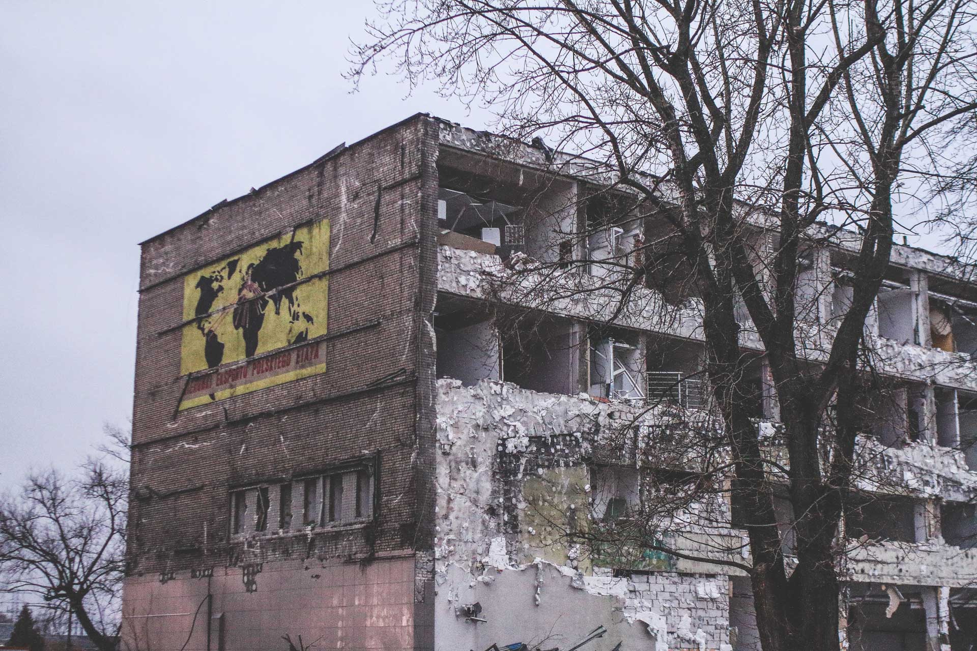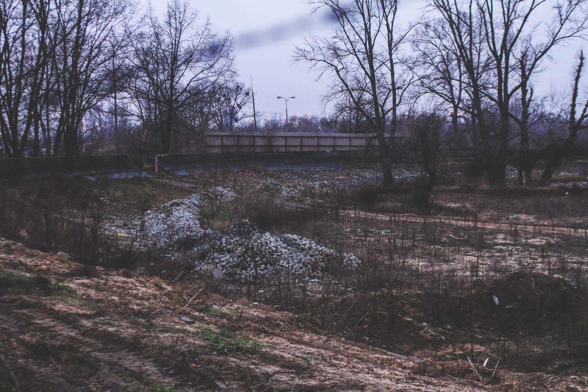 Potem wiraż z kostki zamienił się w porośnięte suchymi badylami śmietnisko. A teraz przyszedł czas na budynki. Zwalona ściana jednego z nich odkryła peerelowski mural, wywołując nostalgiczne spazmy u miłośników tamtych klimatów. U mnie też. Nie powiem – siąknąłem nosem raz i drugi.