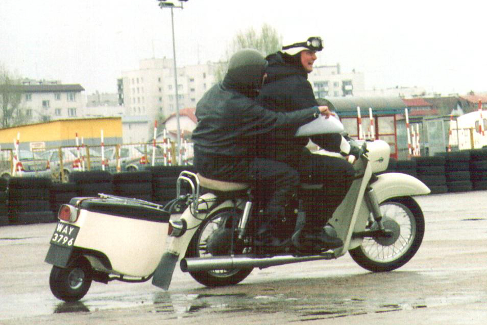 MZ Trophy z przyczepką na próbie sportowej na Bemowie. Kierowca nie miał bladego pojęci co krzyczy do niego pilot.