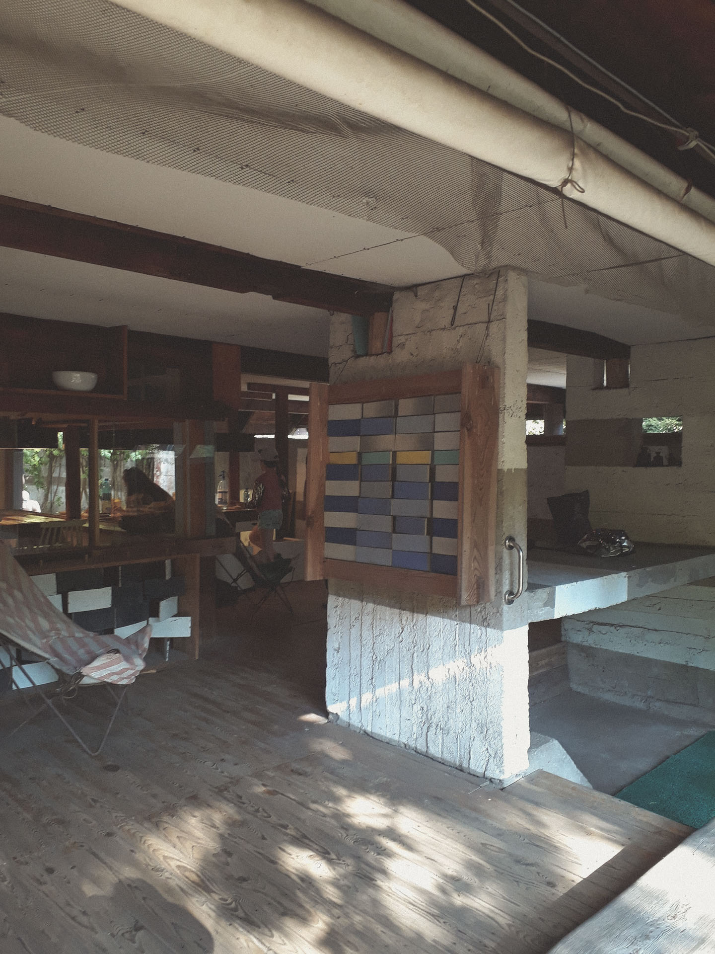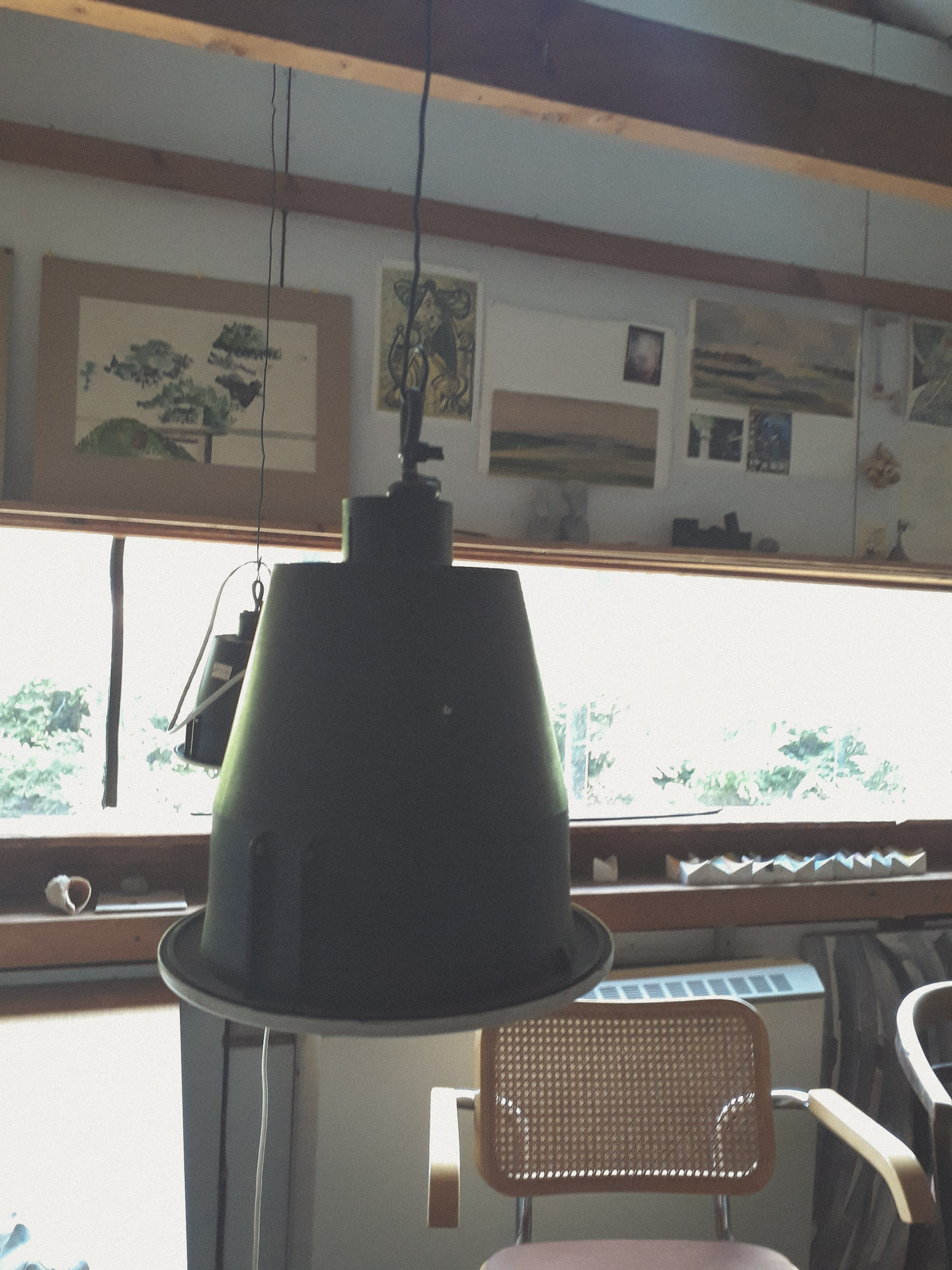 Na górze można wejść do pracowni architektów. Od 1996 roku Szumin stał się domem całorocznym artystów. Kiedy będziemy już w środku, docenimy pasmowe okna, które dają mnóstwo światła. Oczywiście pomieszczenia nie mają drzwi, a ściany pełnią rolę parawanów. Każde pomieszczenie przenika w drugie i trudno znaleźć granicę. To użytkownik miał ją sobie sam wyznaczyć. Szpargałami, meblami czy po prostu swoją działalnością.