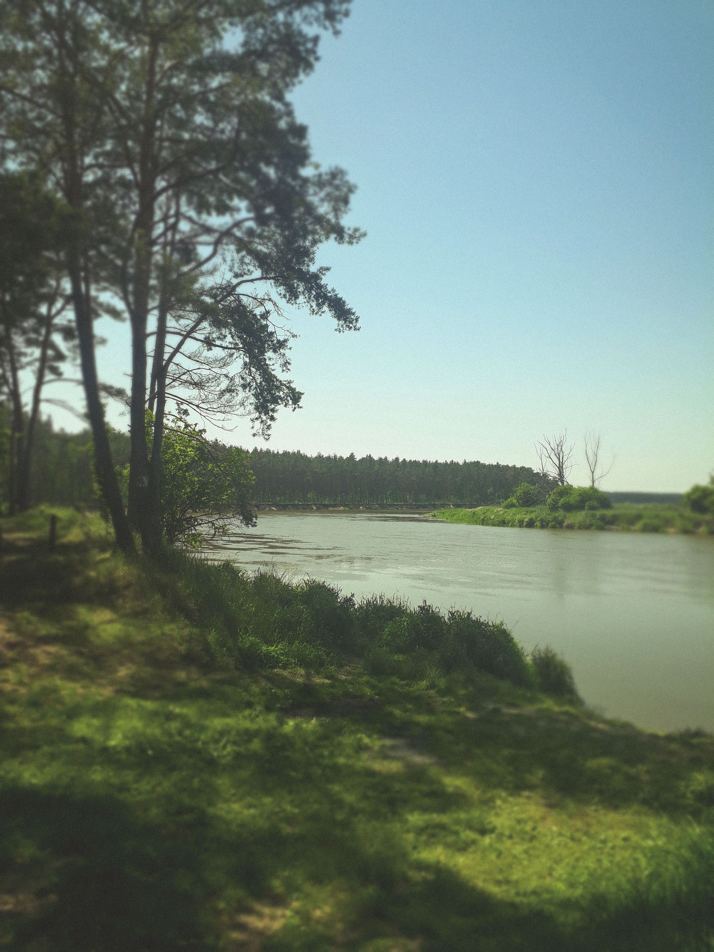 Po wjechaniu do Szumina widać gospodarstwa. Kilka osób, jak zawsze zresztą, idzie w kierunku tutejszej, niewielkiej plaży. Mijamy sklepik, w którym kupimy tylko najpotrzebniejsze rzeczy. Jedną bułkę, kilka piw i chipsy. Dla hipsterów nie ma nic. Nawet gumy balonowej. Tuż za sklepem skręcamy w lewo. Wąska dróżka kończy się niewielką skarpą. W tym miejscu można zaparkować wóz i udać się na spacer brzegiem rzeki.