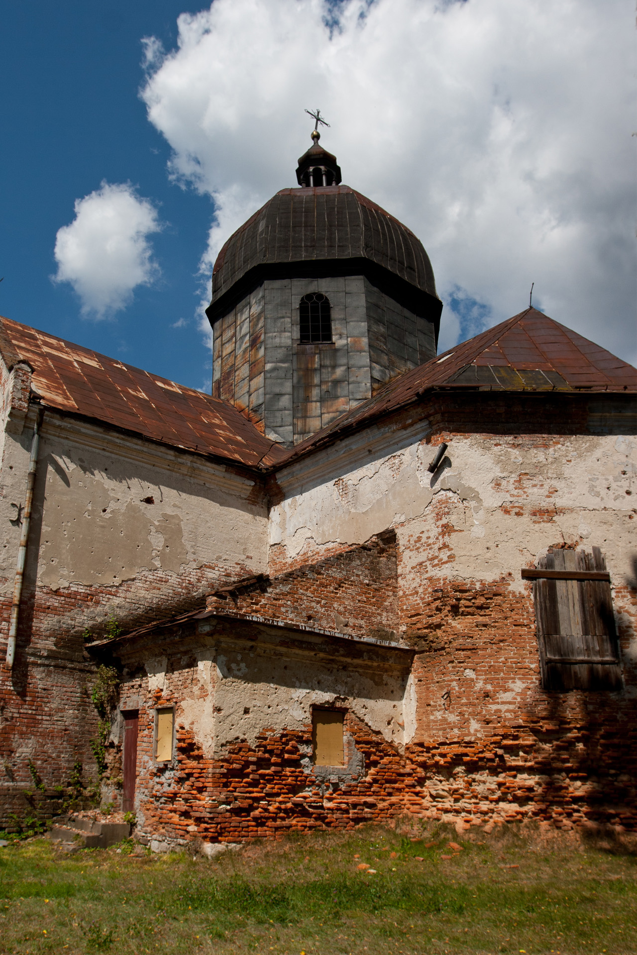Chwilę później zaglądam do opuszczonej cerkwi świętego Onufrego. Jej historia jest identyczna, jak prawie wszystkich tutaj. Została zbudowana w 1809 roku na planie krzyża, murowana, z dwoma zakrystiami po bokach. Po blisko stu latach, w 1901 roku, została przebudowana, a remont przeszła w 1936 roku. Wierni opuścili te tereny w 1947, wyrzucono ich stąd w czasie akcji „Wisła”. Opustoszały kościół służył jako magazyn. Zamknięty na trzy spusty sypiący się budynek jest coraz smutniejszym wspomnieniem dawnej historii miasta i tego, czego świadkiem było Roztocze przez te wszystkie lata.