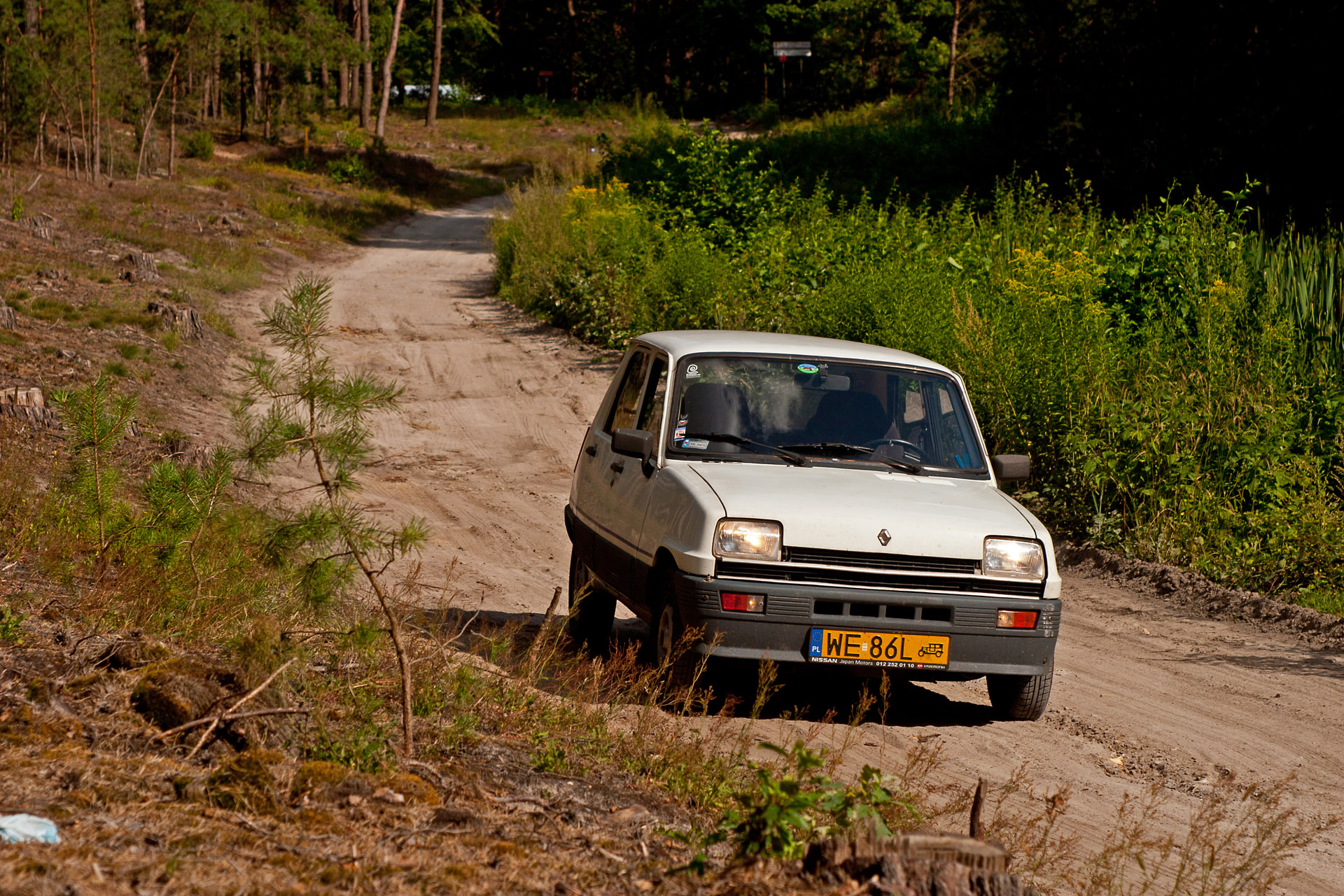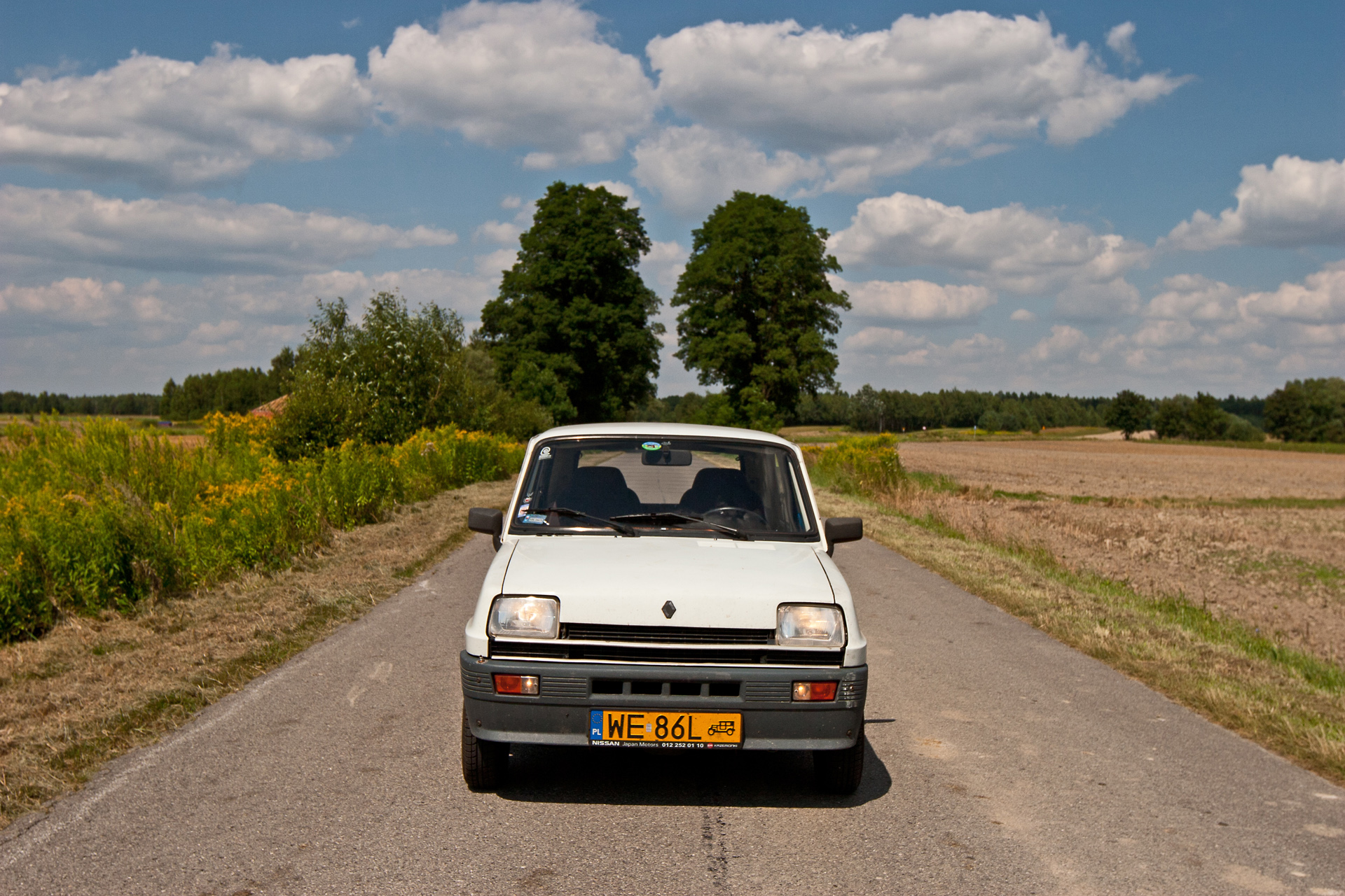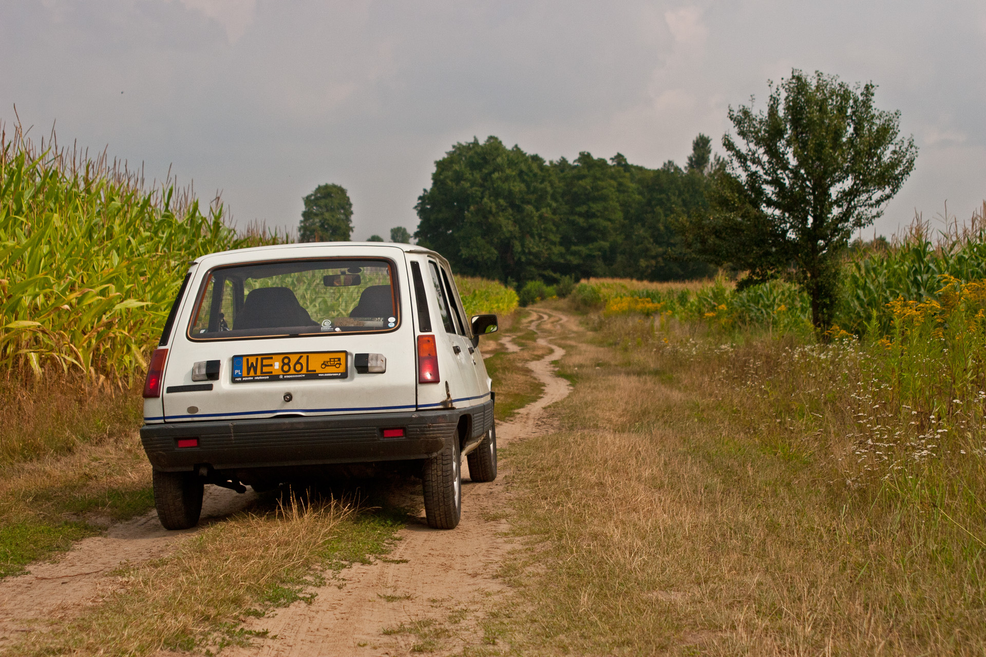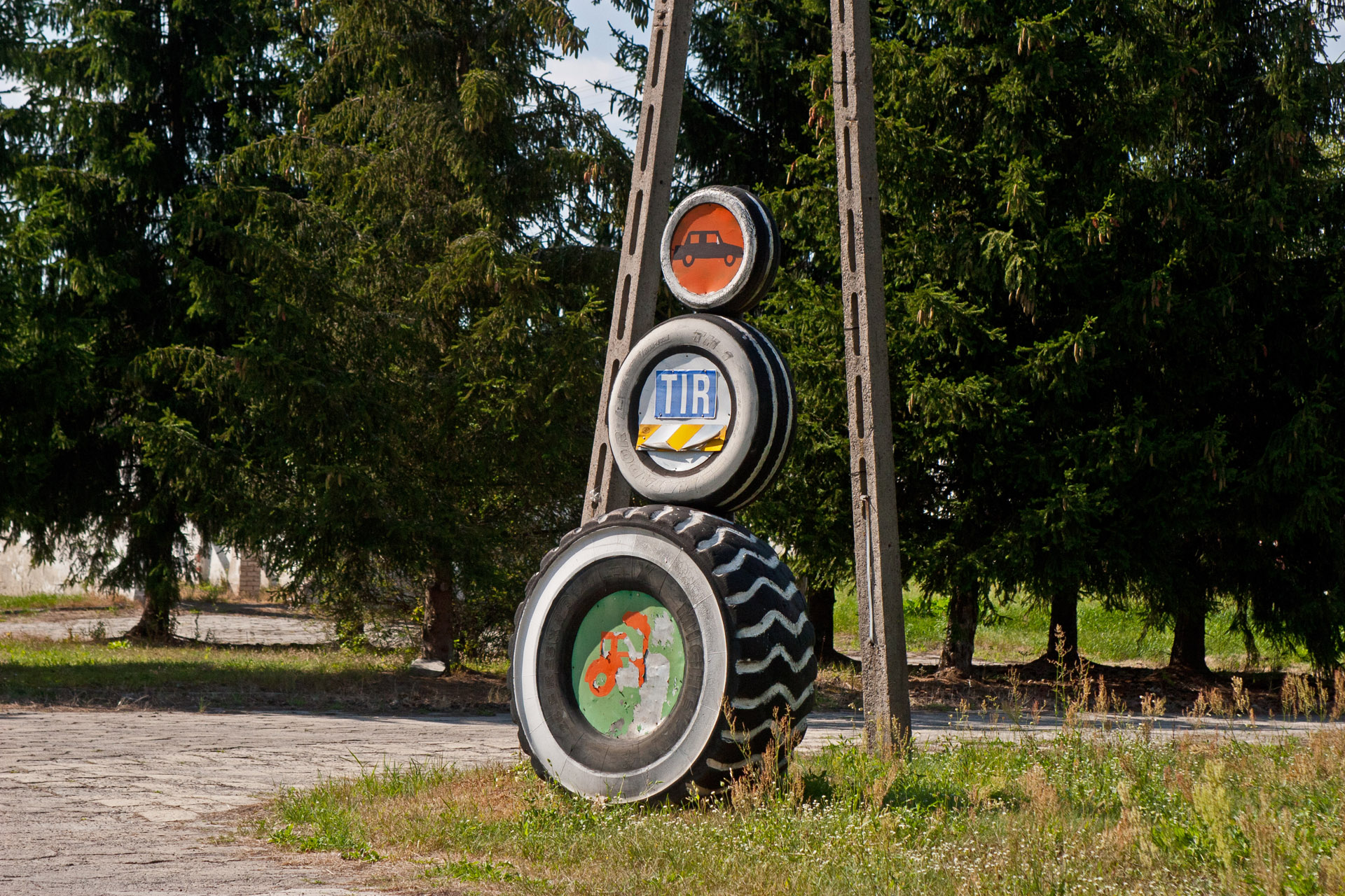 Na niecałe 10 km wyjeżdżam na drogę nr 17, która prowadzi do granicy z Ukrainą. W Lubyczy Królewskiej skręcam w lewo i z ulgą pozostawiam główną trasę. Droga prowadzi trochę wśród lasów, trochę wśród dawnych PGR-ów i zapomnianych kombinatów, w których można znaleźć arcydzieła sztuki informacyjnej wykonane z opon, silosy pośrodku niczego. Mijam też wsie letniskowe, które upodobali sobie mieszkańcy okolicznych większych miast. Wśród daczy trafiają się też posesje z zardzewiałym Żukiem łypiącym zza węgła albo maluchem grzejącym się w promieniach słońca.