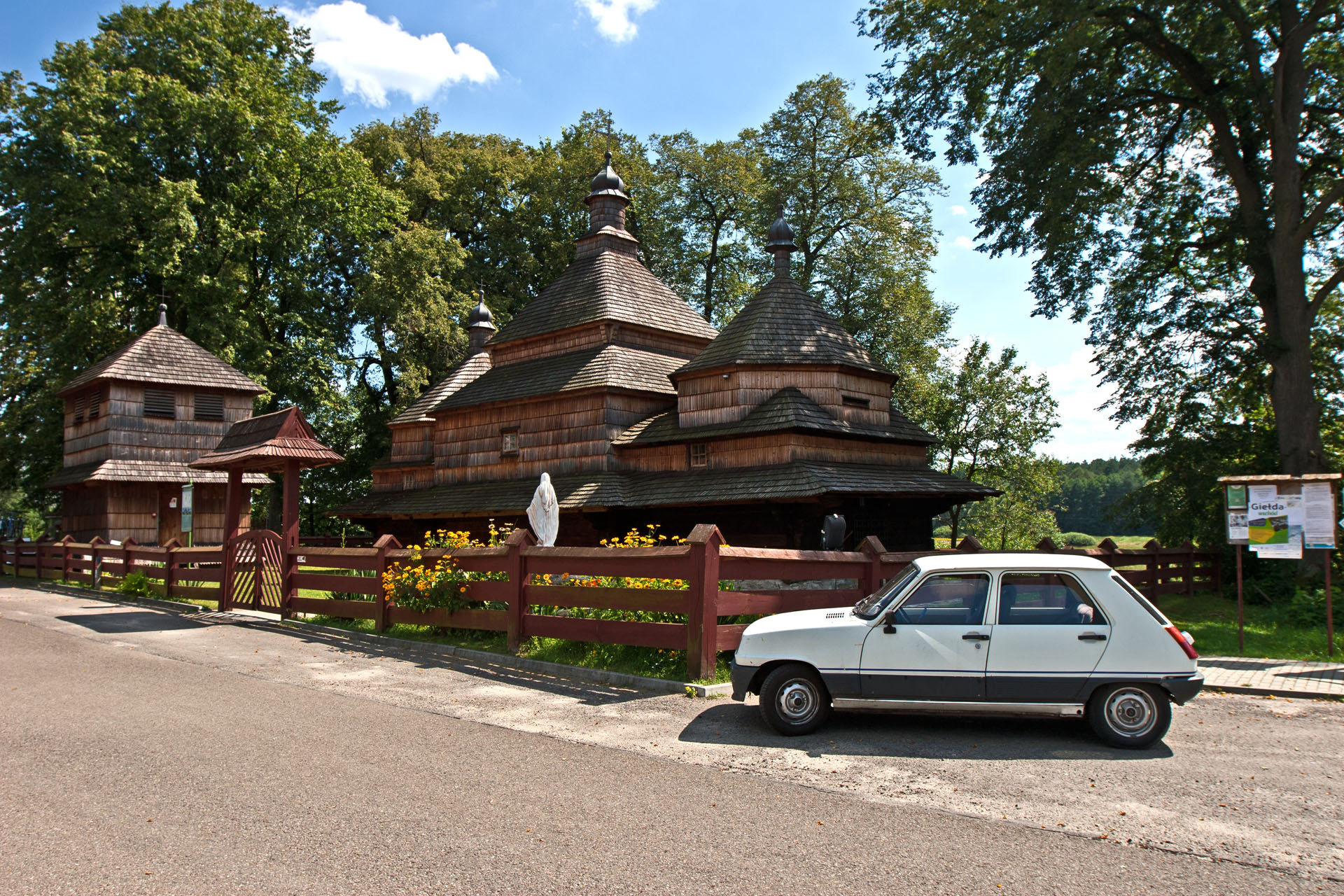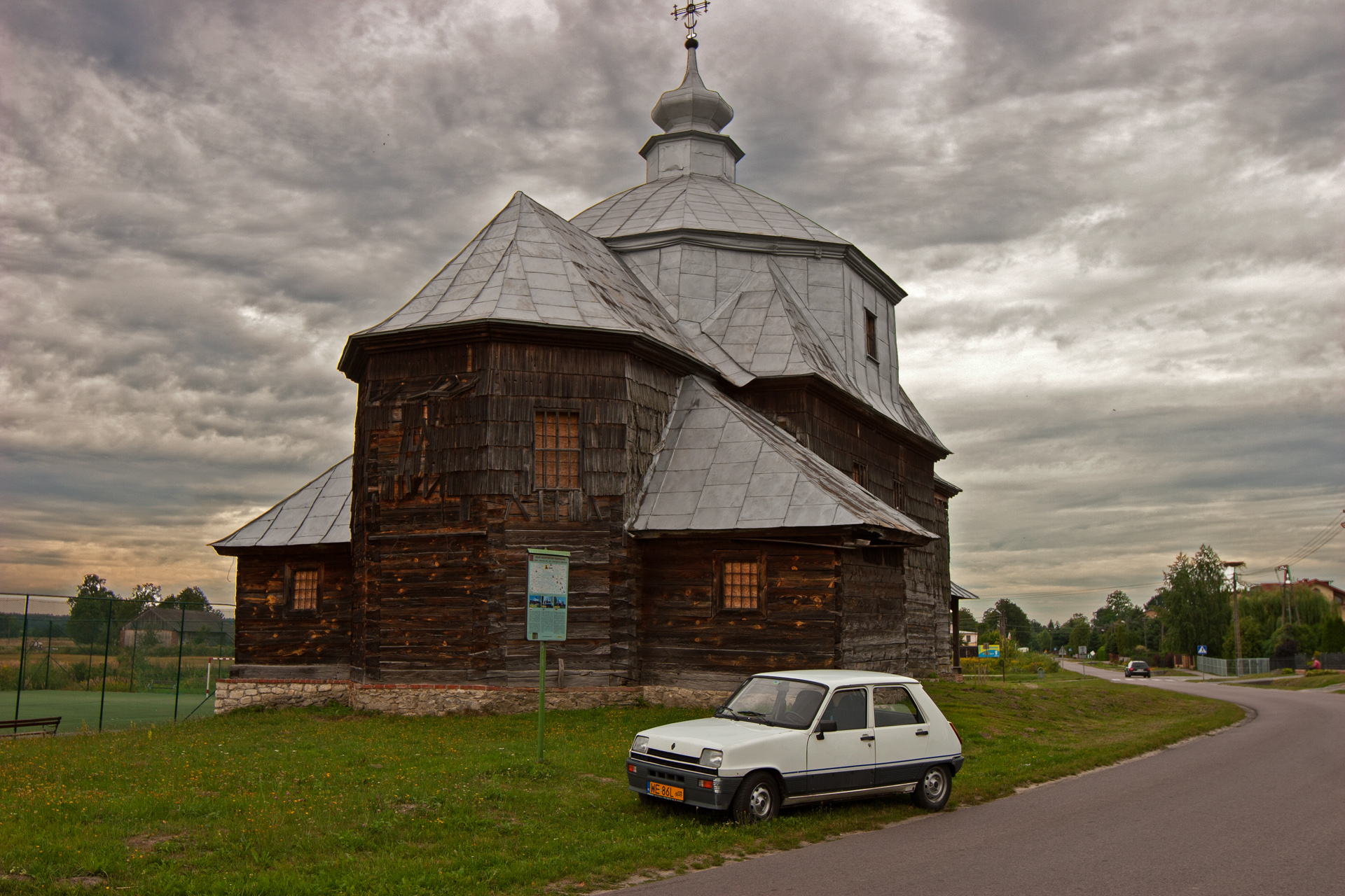 Po drodze zbaczam z trasy, aby obejrzeć drewnianą cerkiew Narodzenia Najświętszej Maryi Panny w Gorajcu. Należy do najstarszych tego typu budowli w Polsce. Początkowo uważano, że pochodzi z XVIII wieku, jednak badania przeprowadzone w połowie lat 90. wykazały, że została zbudowana w 1586 roku.