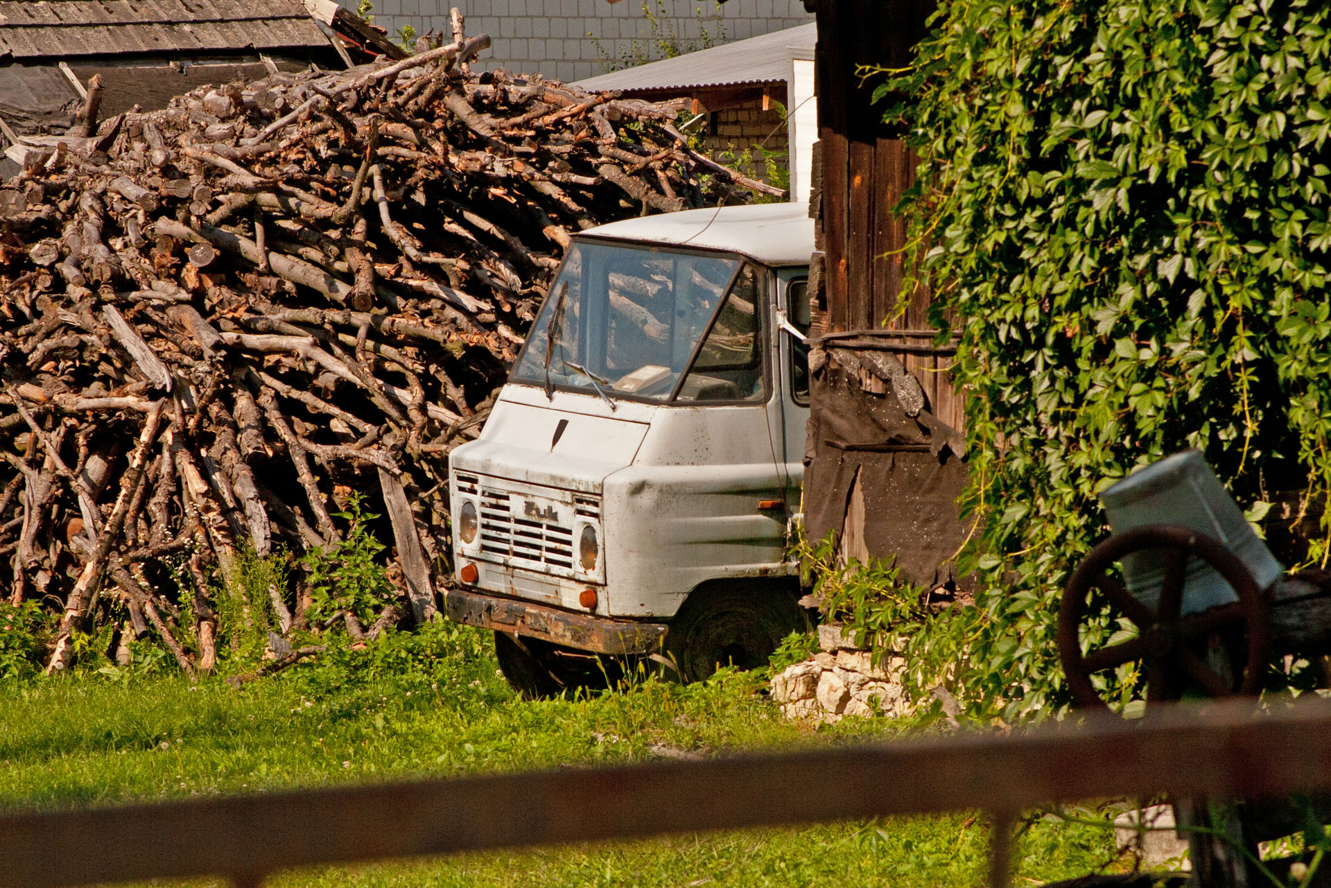 Zaraz za opuszczoną cerkwią w Starym Dzikowie natykam się na remizę. Podążam ciekawie w jej kierunku i już mam pierwsze dobre trafienie: pełnią tam służbę Żuk smutek i majestatyczna Tatra 138.