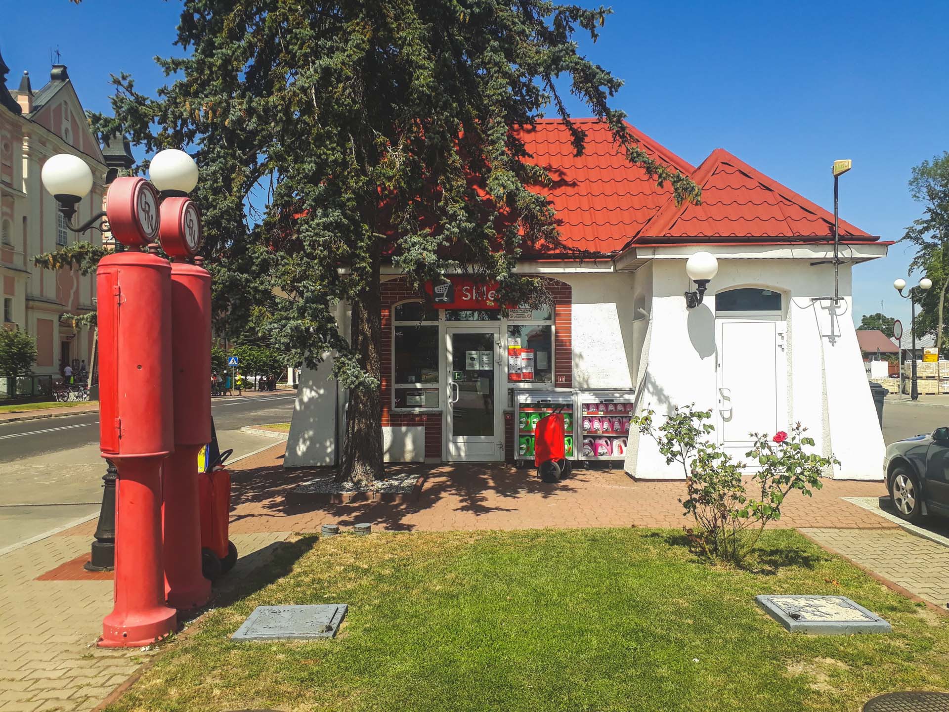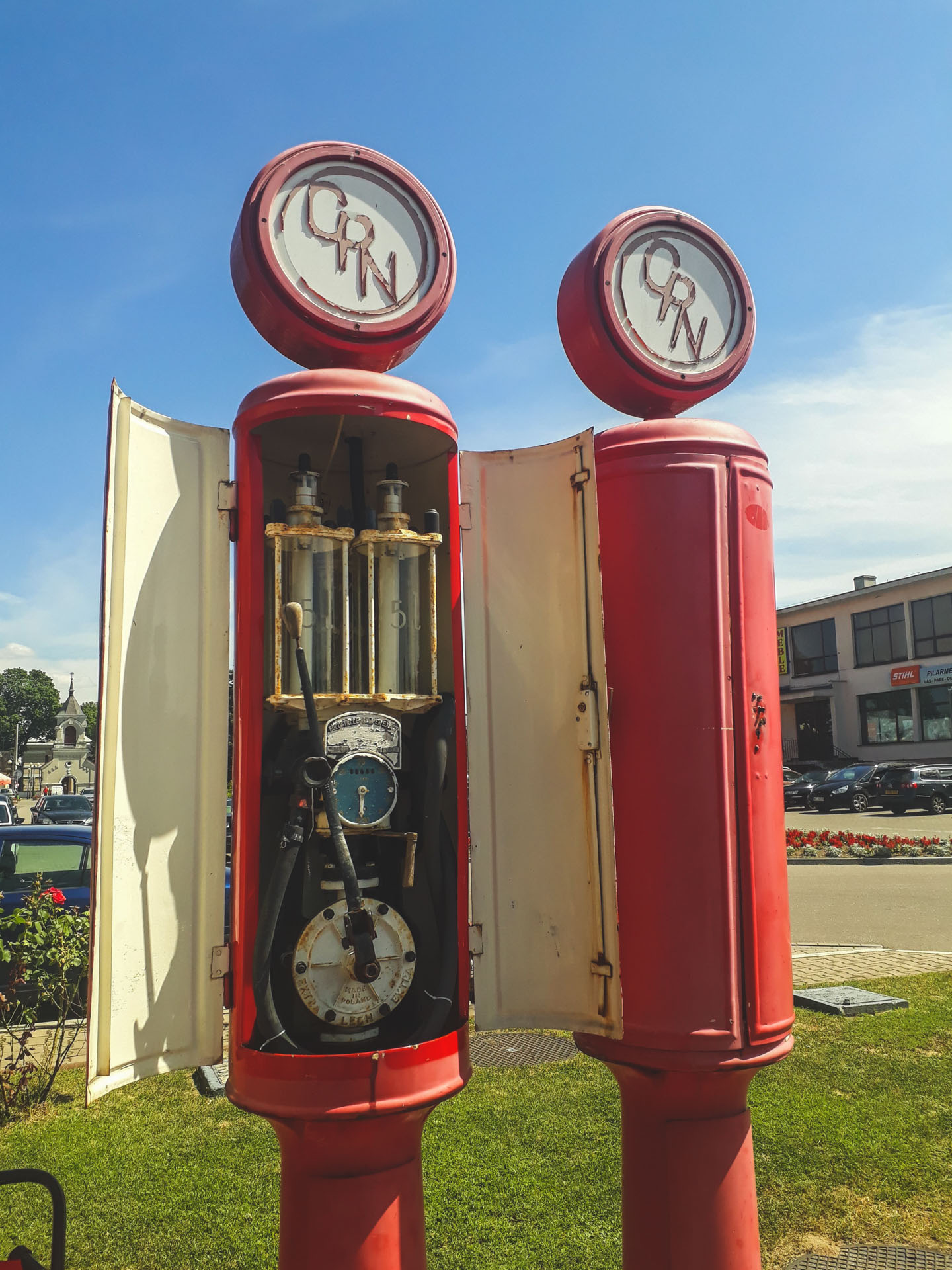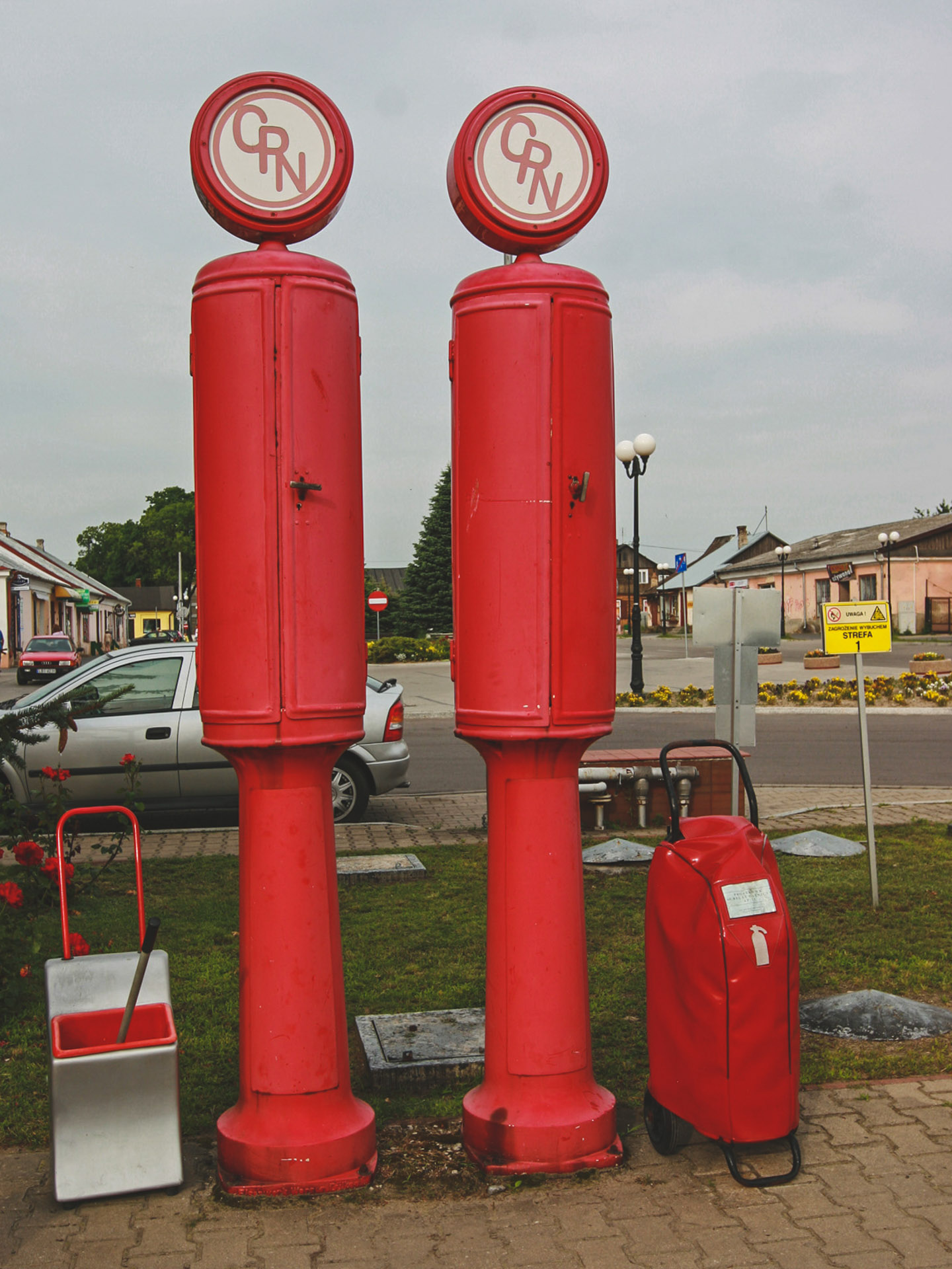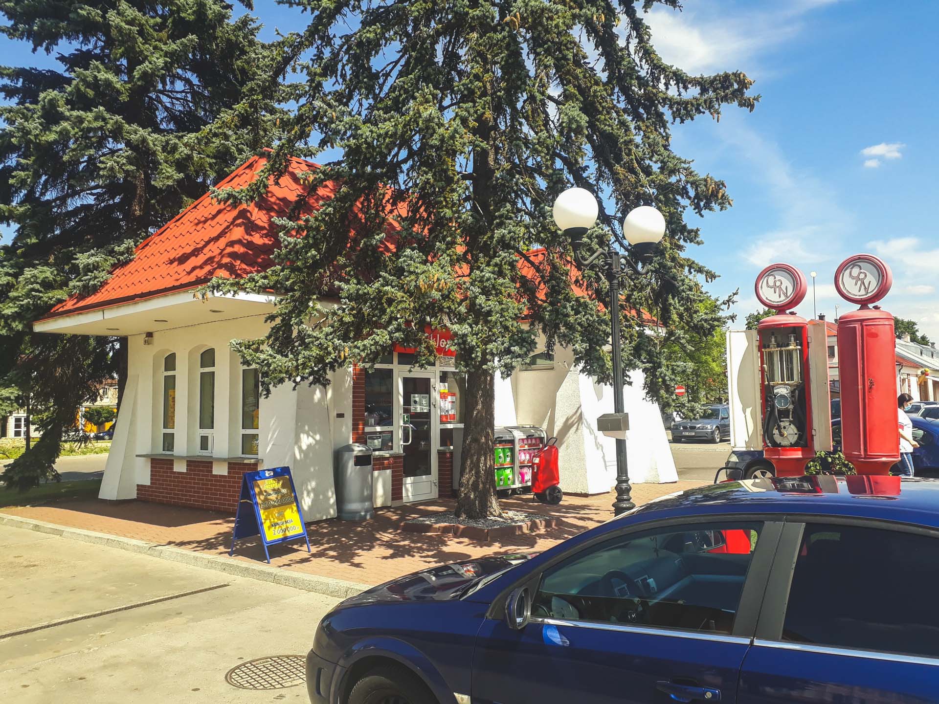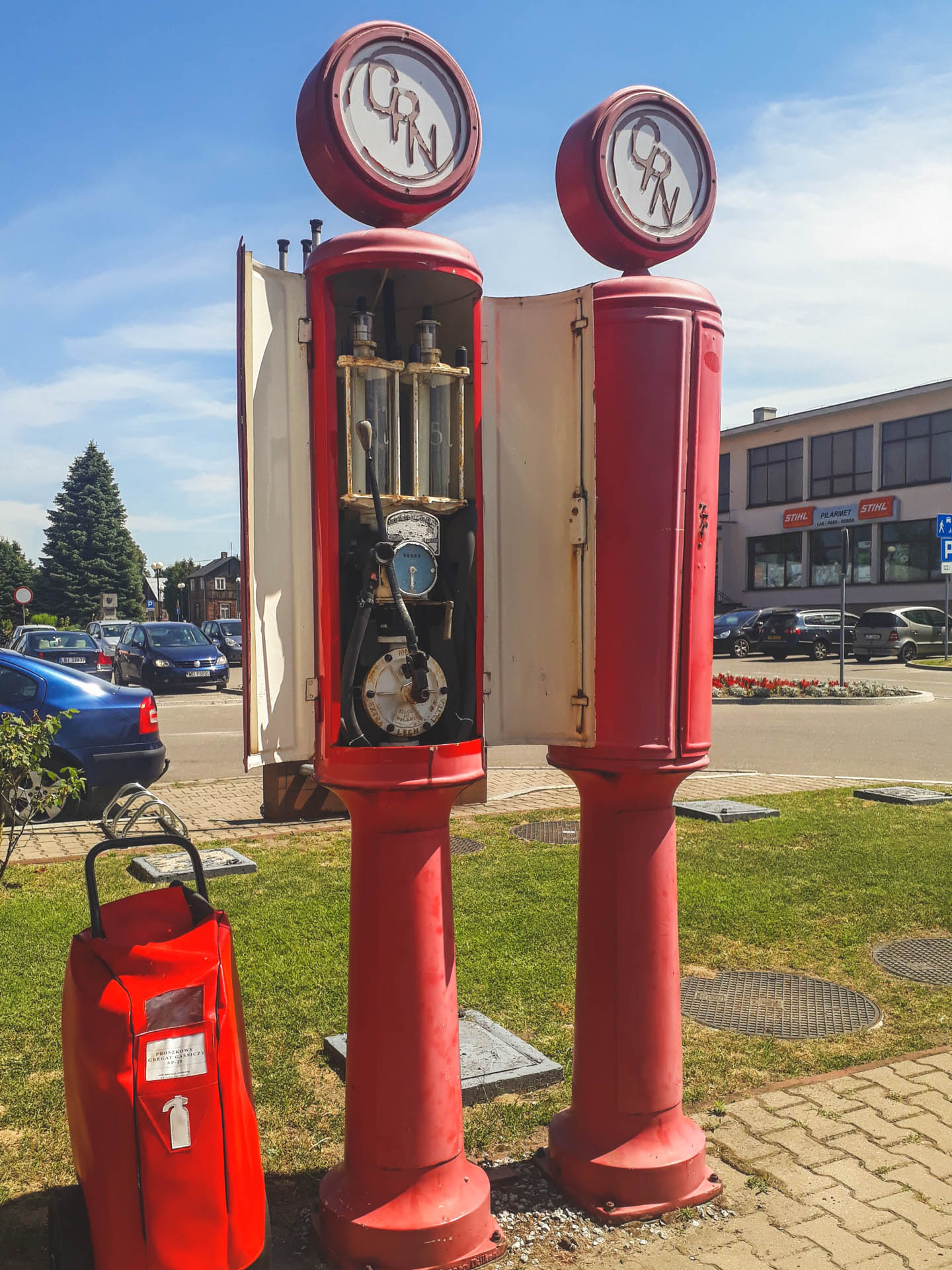 Obok malutkiego, zabytkowego już budynku i dwóch nowoczesnych dystrybutorów, stoją dwie strzeliste rury z zwieńczone okrągłymi okienkami ze starym logo CPN To zabytkowe dystrybutory firmy Temper Extrakt z 1928 roku. Są to jedne z najstarszych tego typu urządzeń w Polsce. Tym bardziej ważnych, że cały czas stojących w historycznym miejscu.